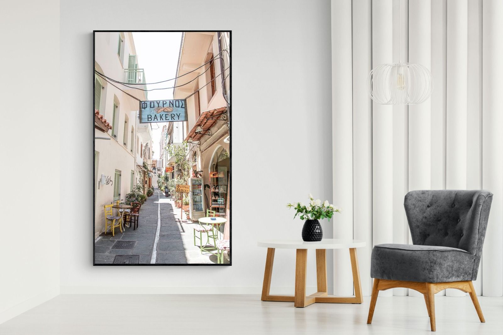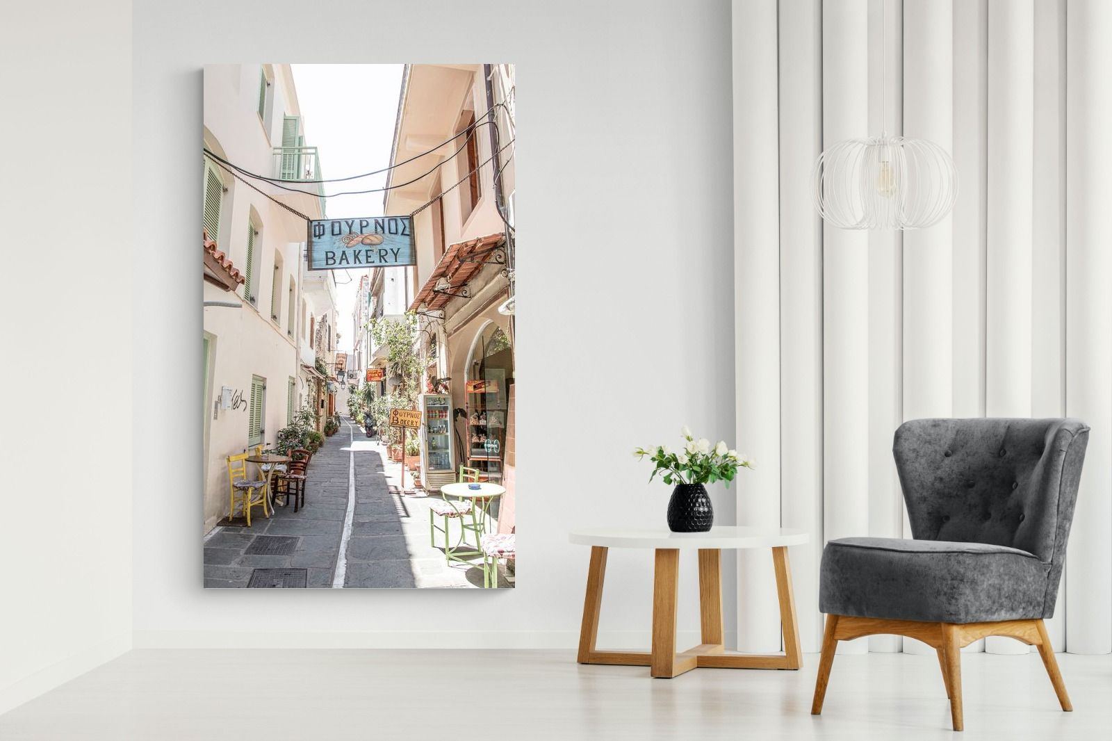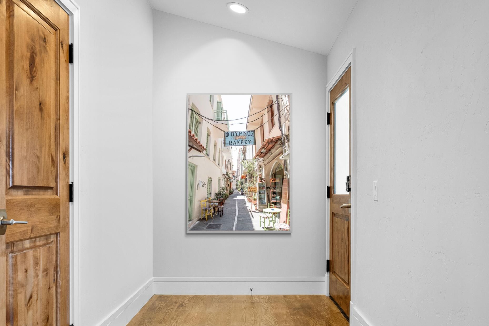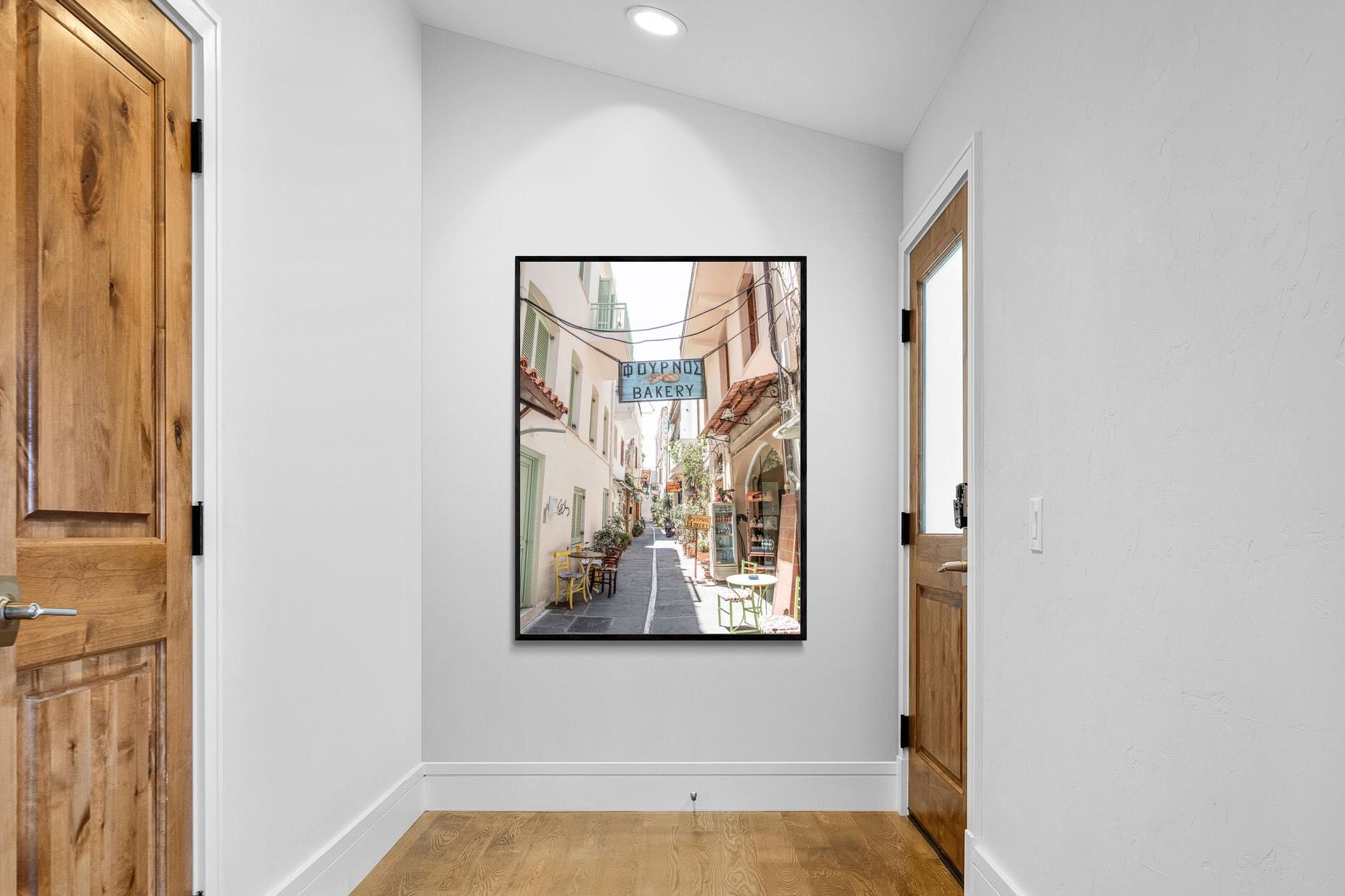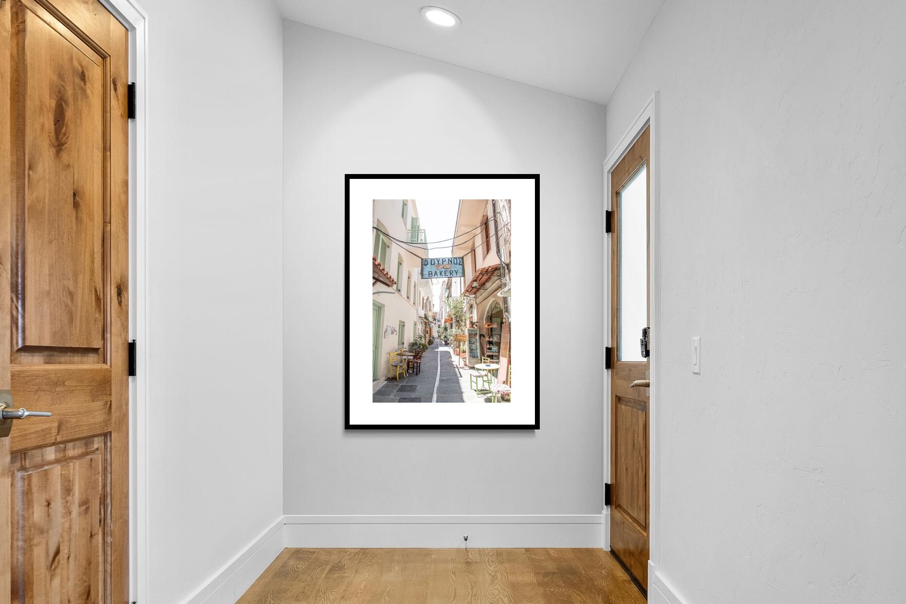 Greek Bakery Street Wall Art – Mediterranean Alleyway Photography Print
