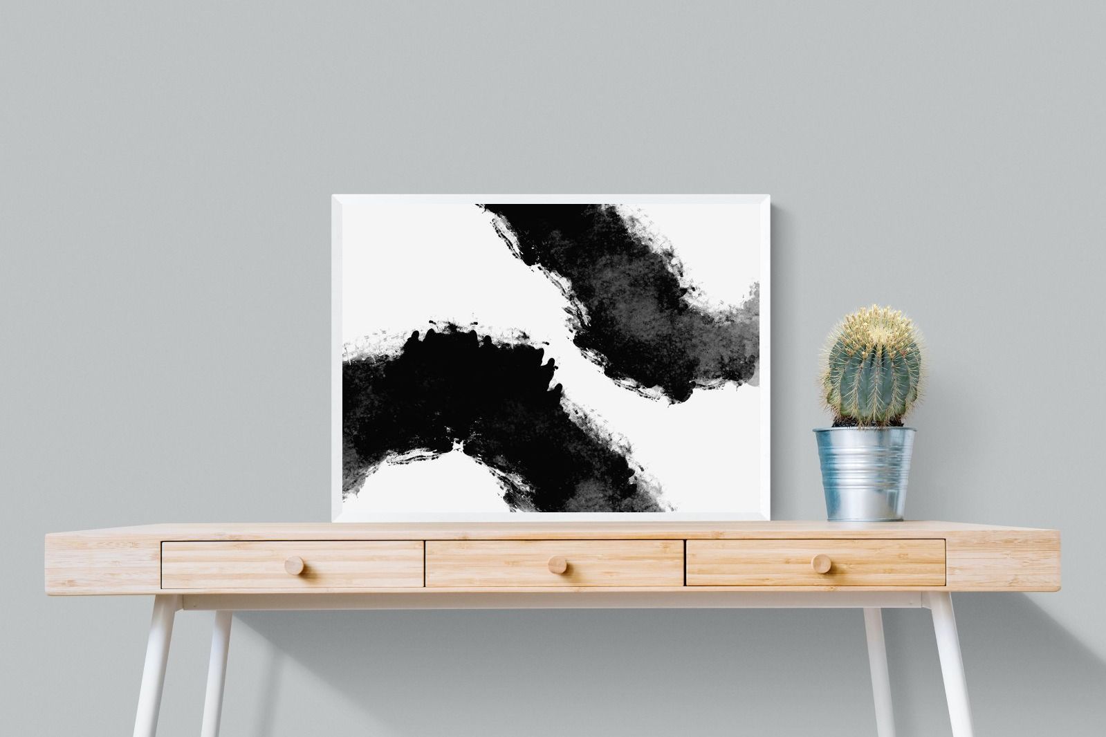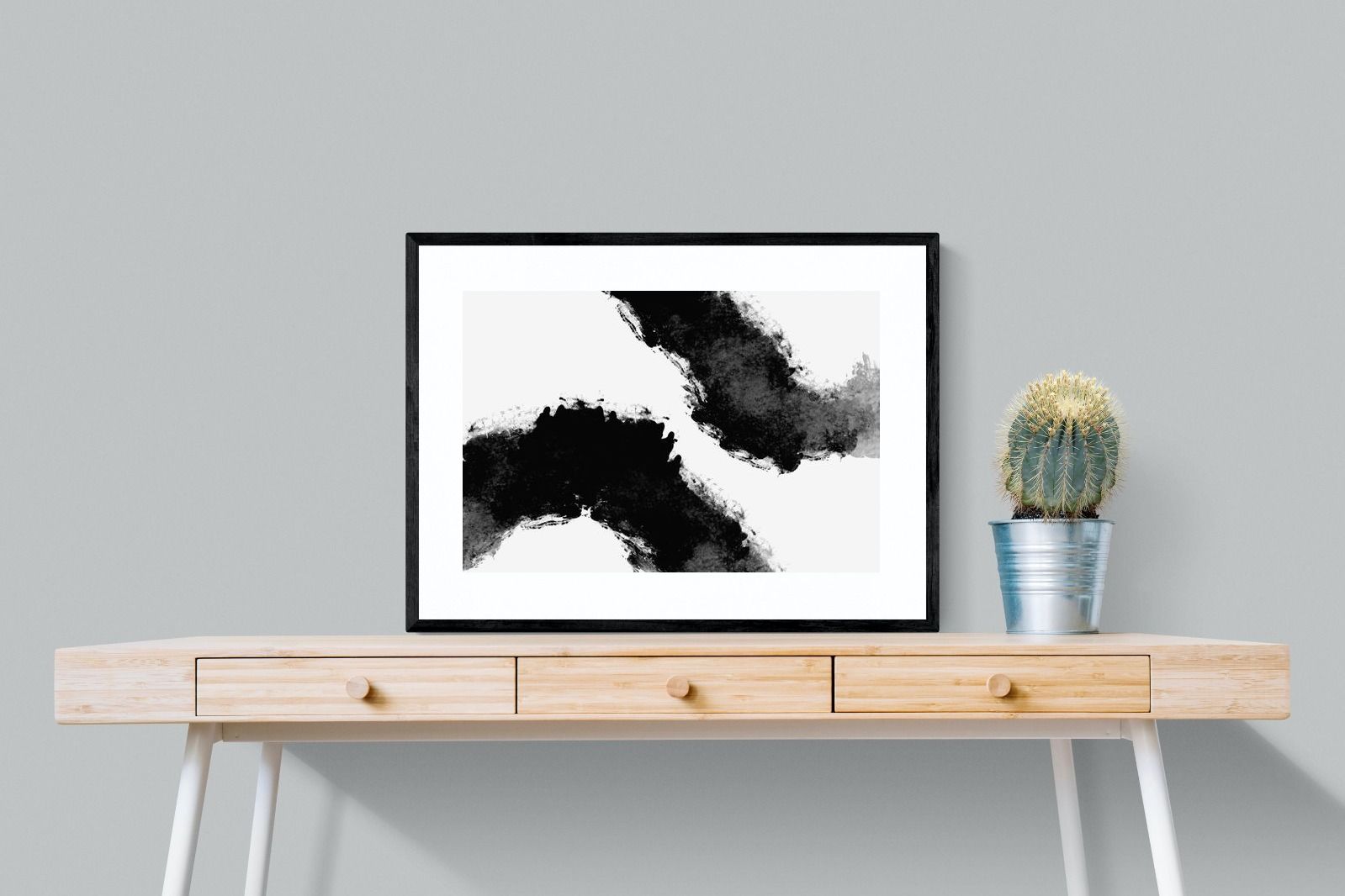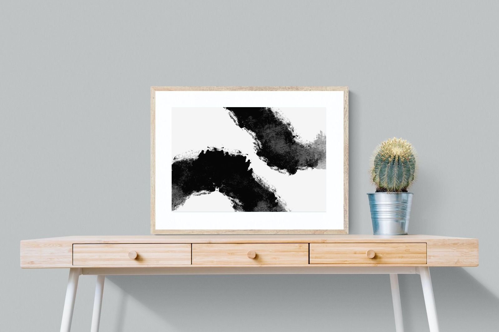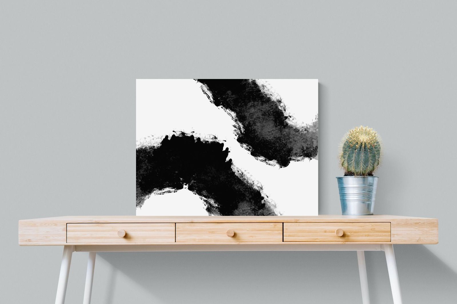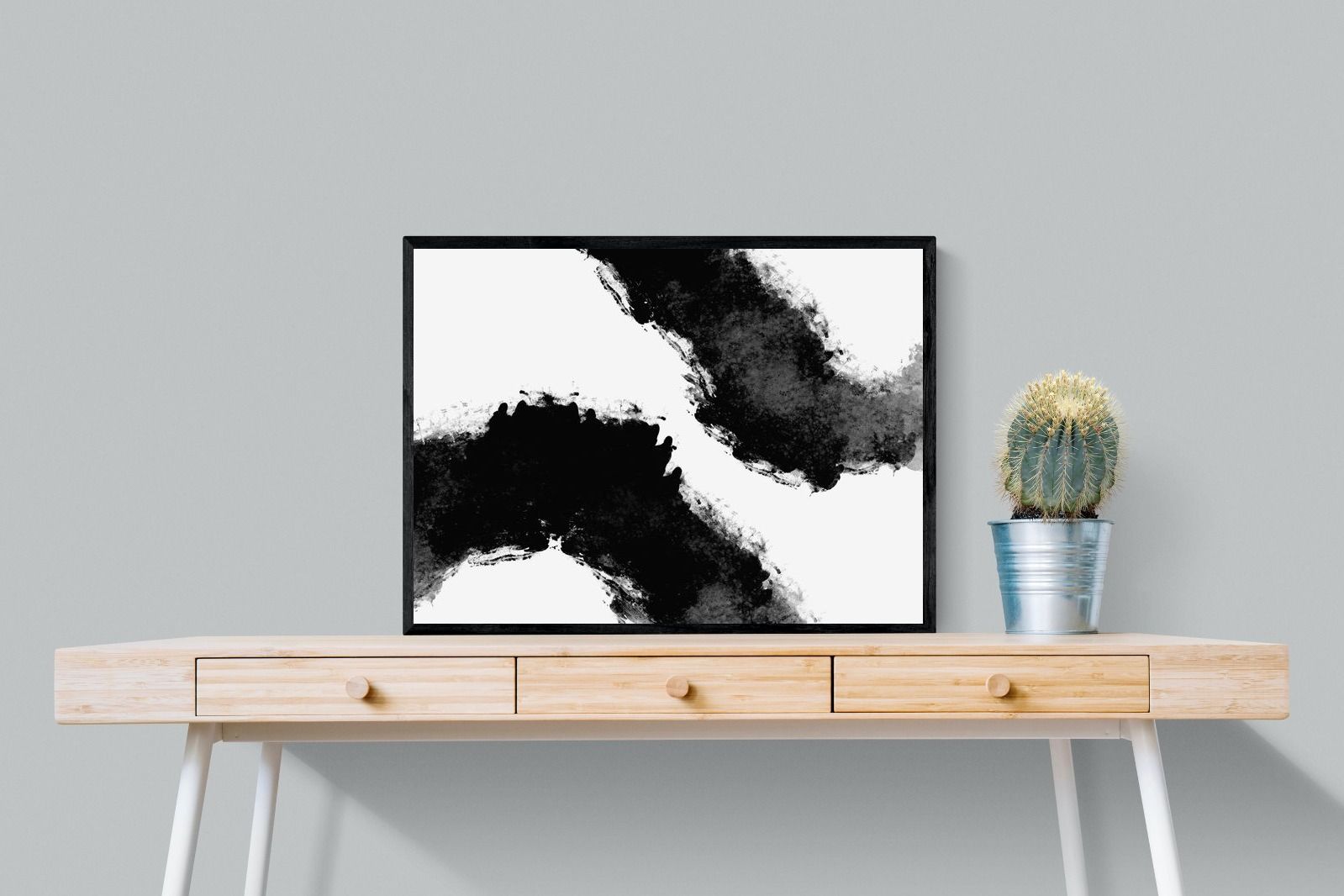 Inkfall is a bold monochrome abstract defined by dramatic black ink textures against a crisp white background. The raw contrast and organic edges give the piece a strong contemporary presence. Ideal for modern, industrial or minimalist interiors, it works well as a statement artwork in living rooms, offices or galleries where clean lines and impact matter.