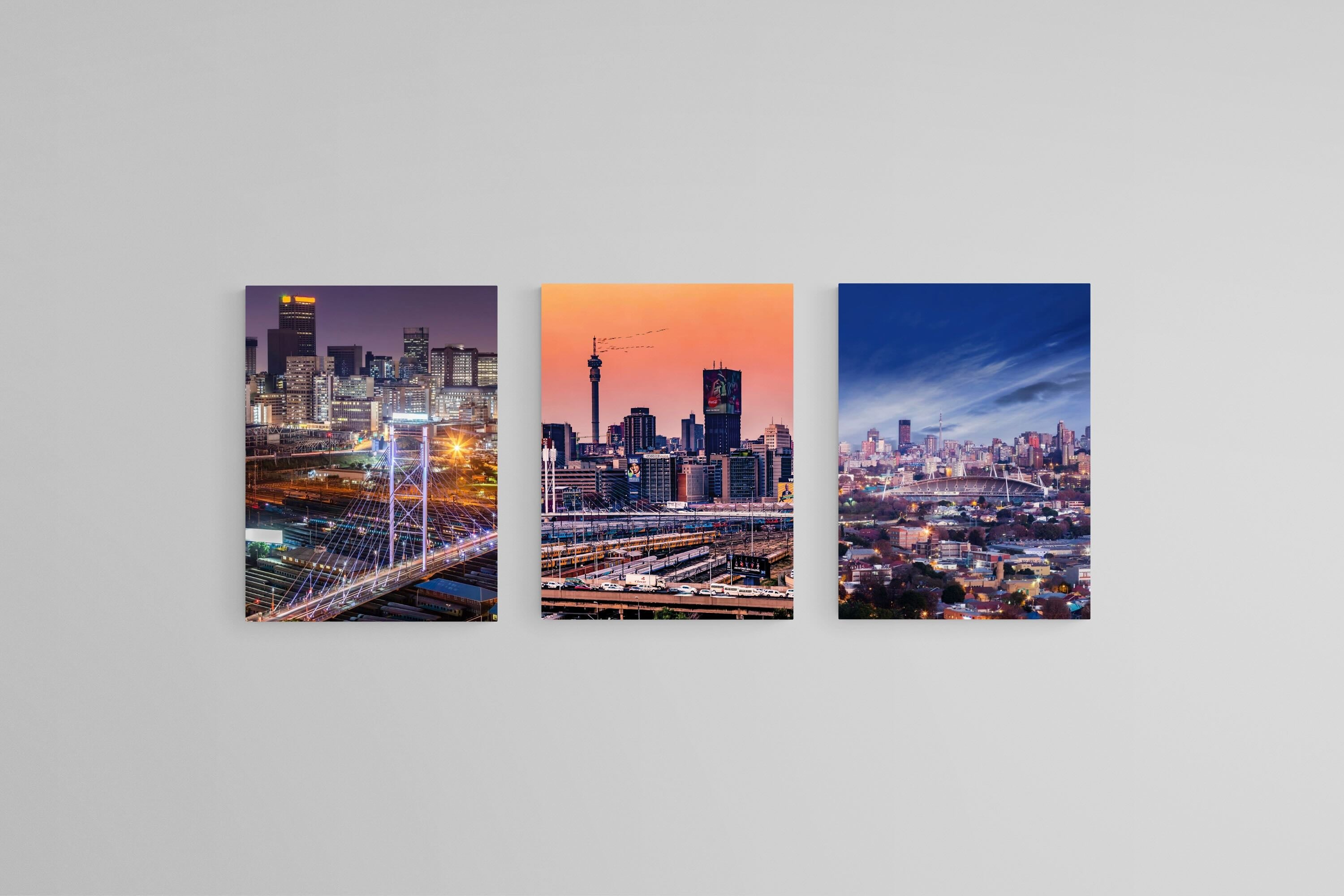 Joburg Set – Johannesburg Skyline Wall Art Triptych for Contemporary Interiors