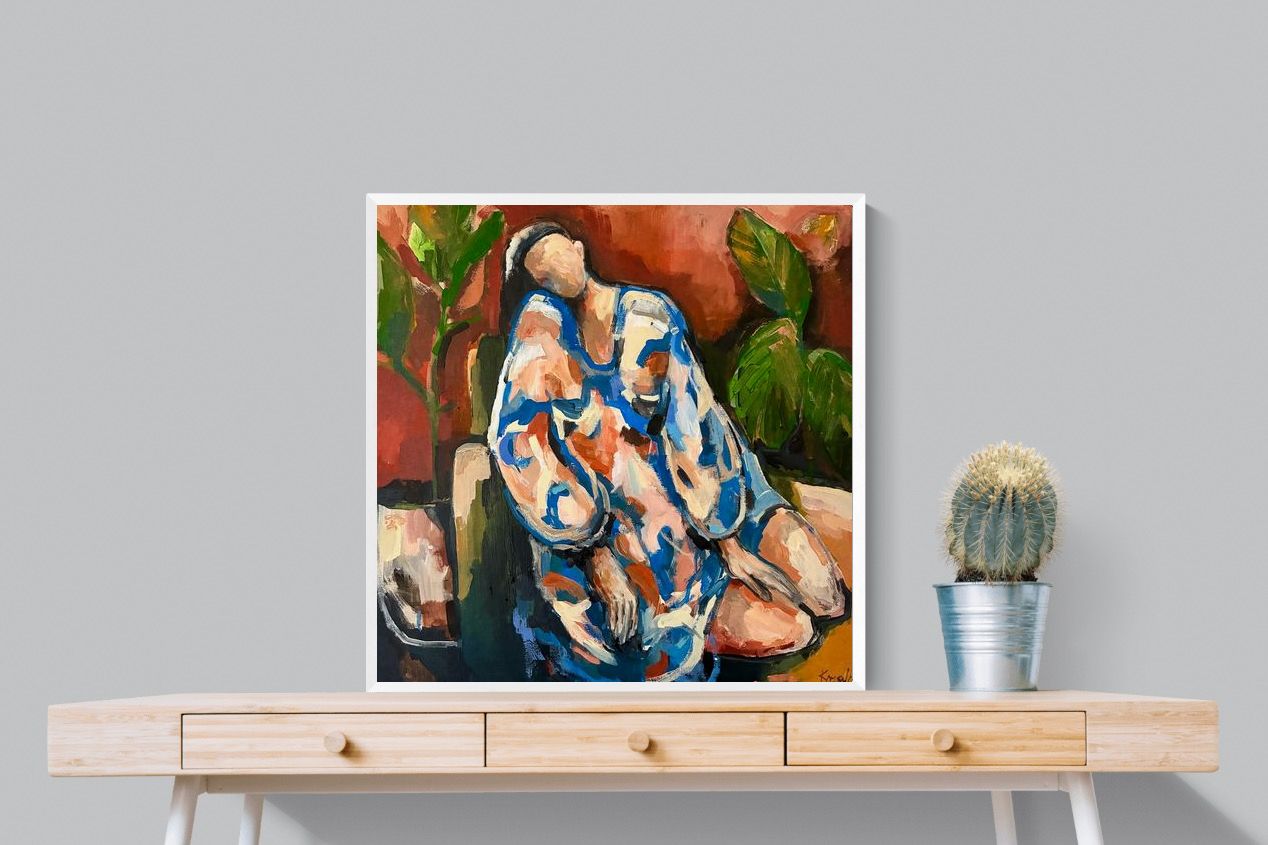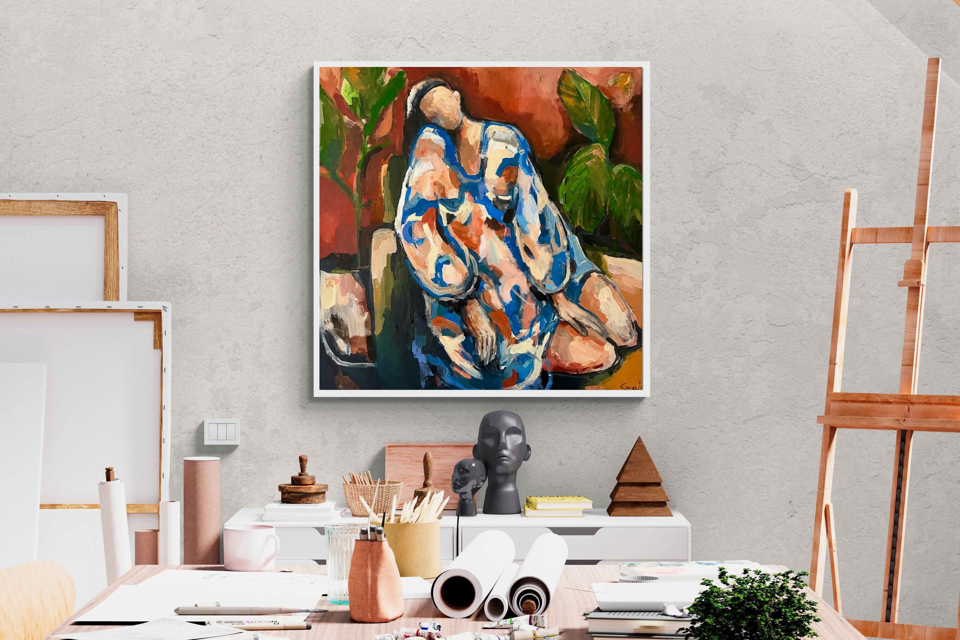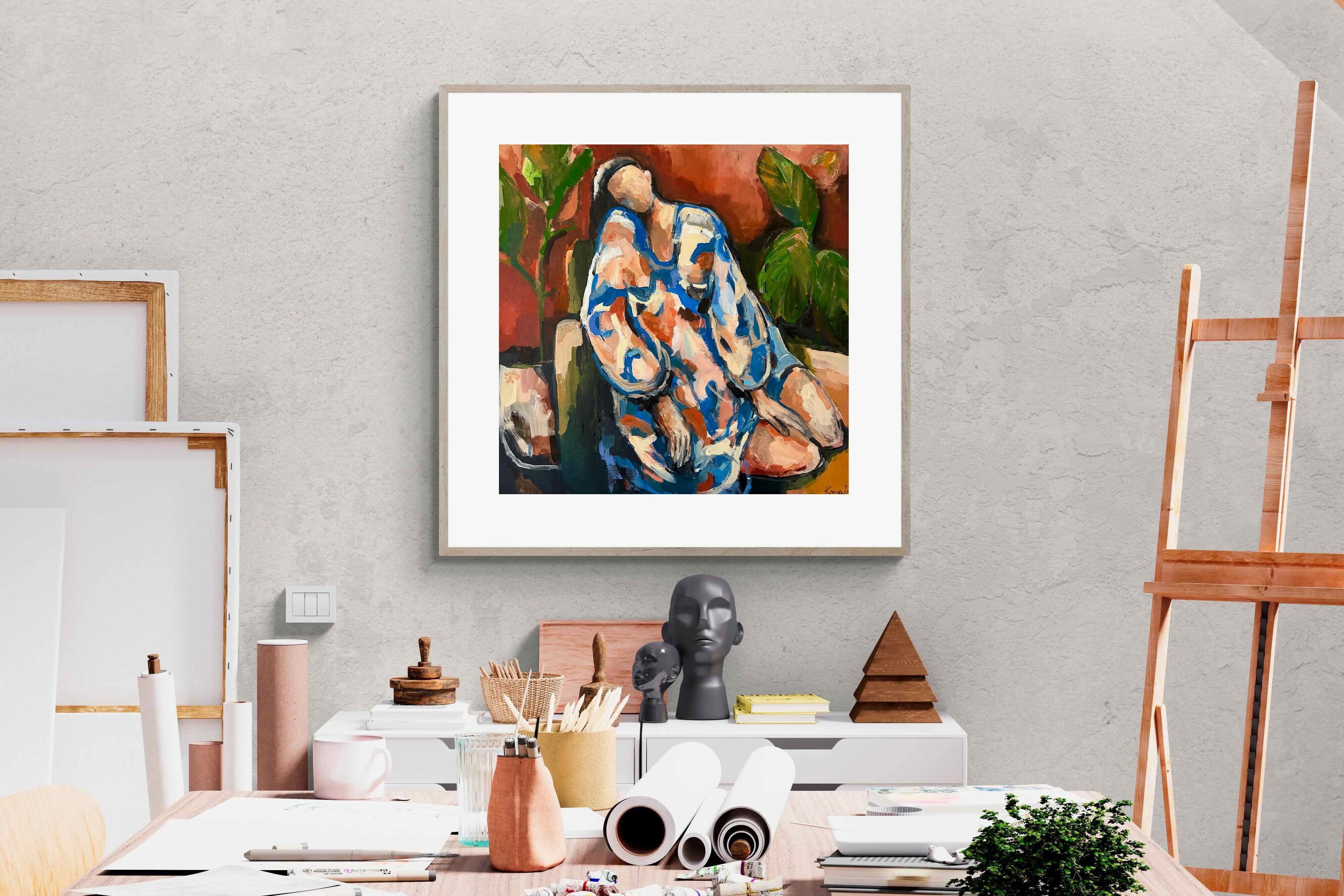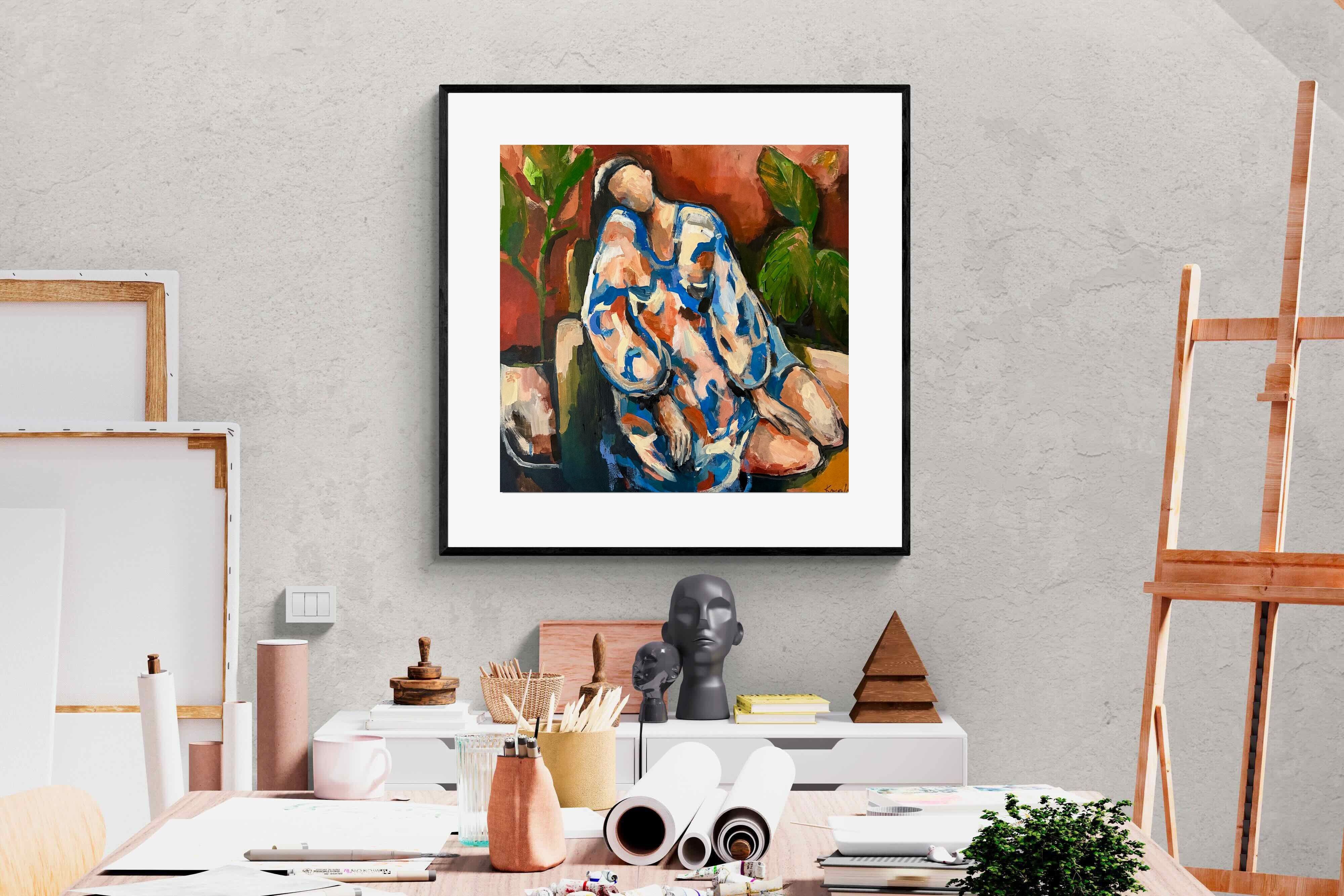 This contemporary figurative piece captures a moment of stillness through layered brushwork and expressive colour. The abstracted figure, set against warm earthy tones, conveys introspection and calm while maintaining artistic energy. Ideal for modern interiors, it works beautifully in lounges, bedrooms or creative spaces, adding depth and emotional nuance without overpowering the room’s aesthetic.