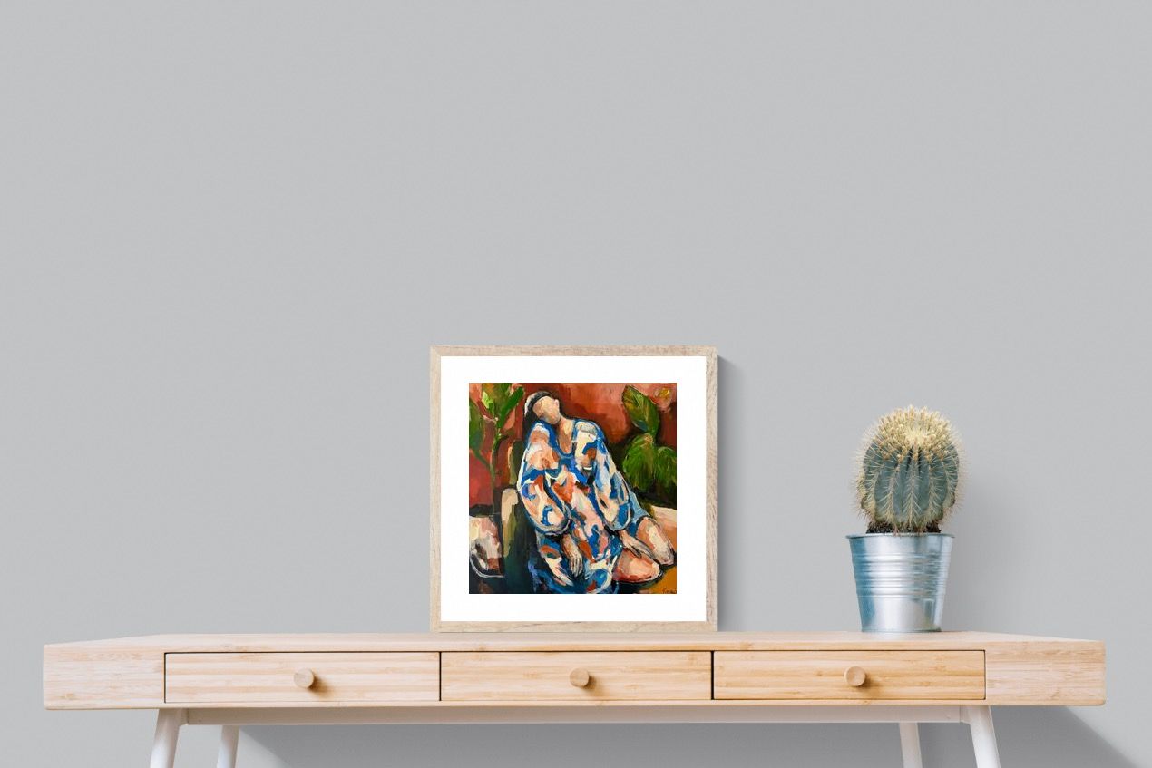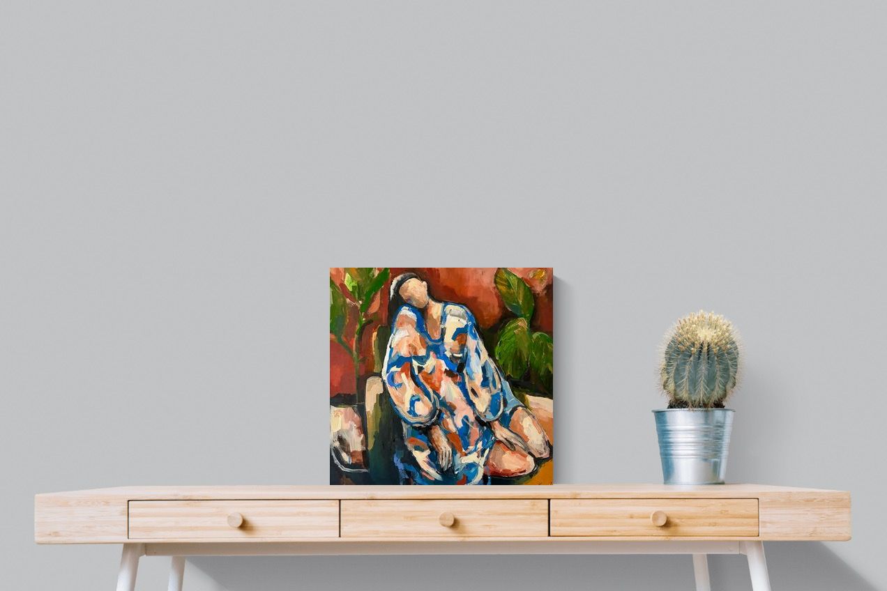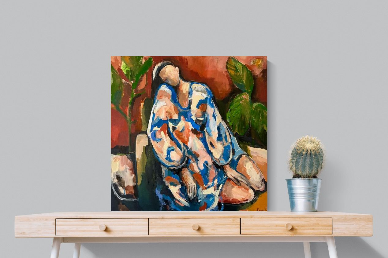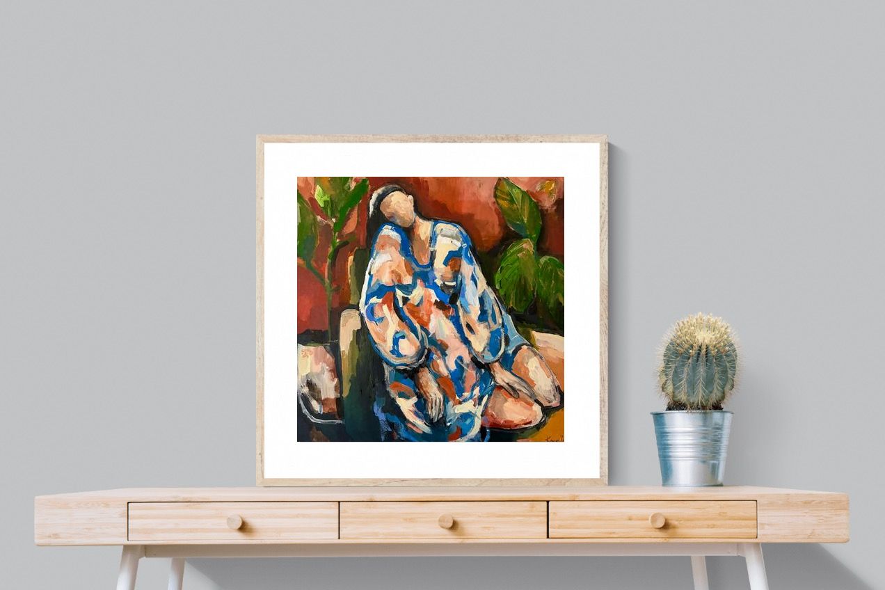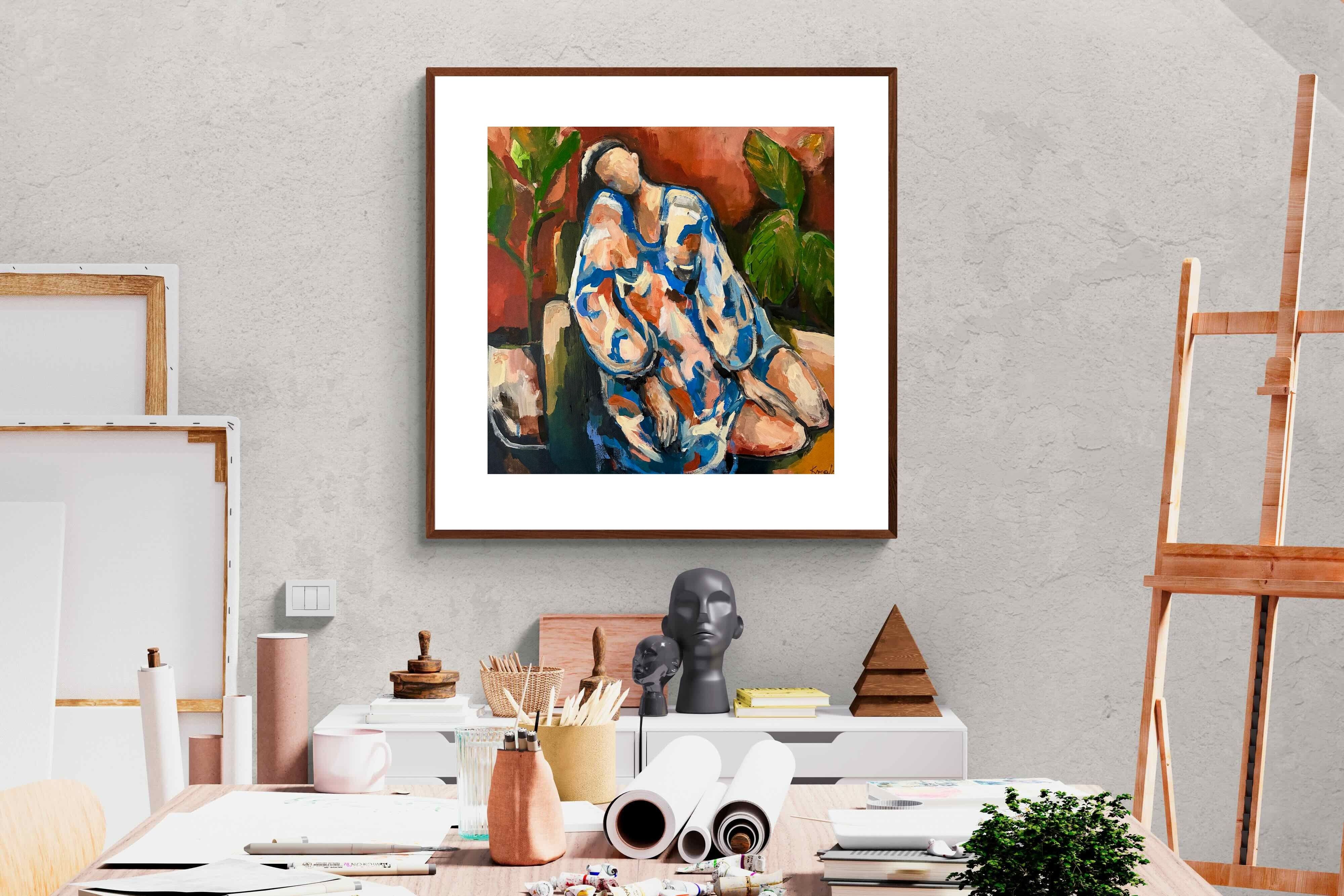 This contemporary figurative piece captures a moment of stillness through layered brushwork and expressive colour. The abstracted figure, set against warm earthy tones, conveys introspection and calm while maintaining artistic energy. Ideal for modern interiors, it works beautifully in lounges, bedrooms or creative spaces, adding depth and emotional nuance without overpowering the room’s aesthetic.