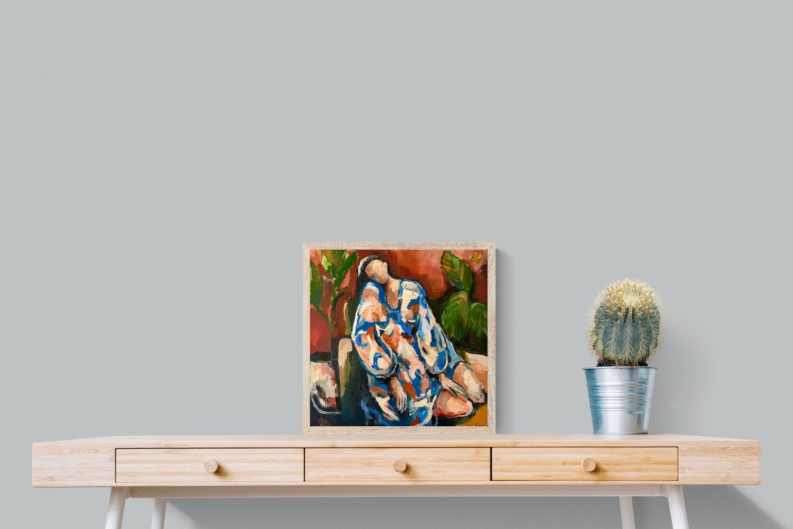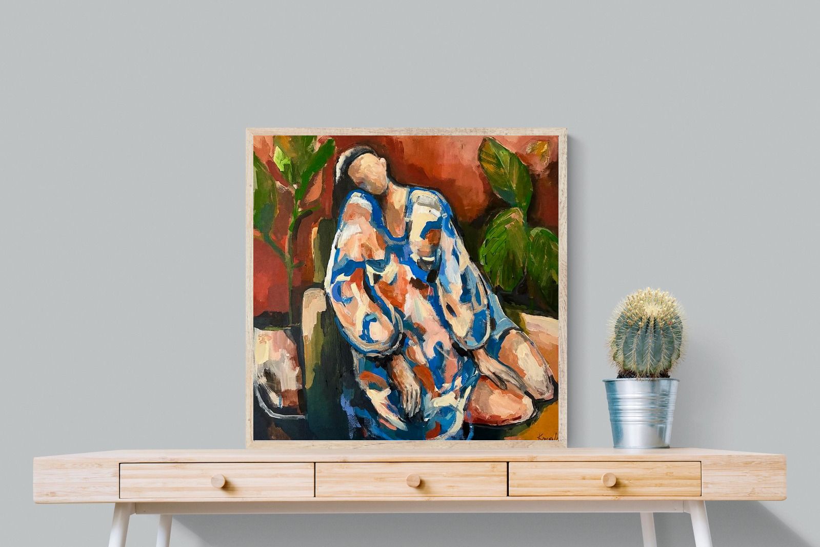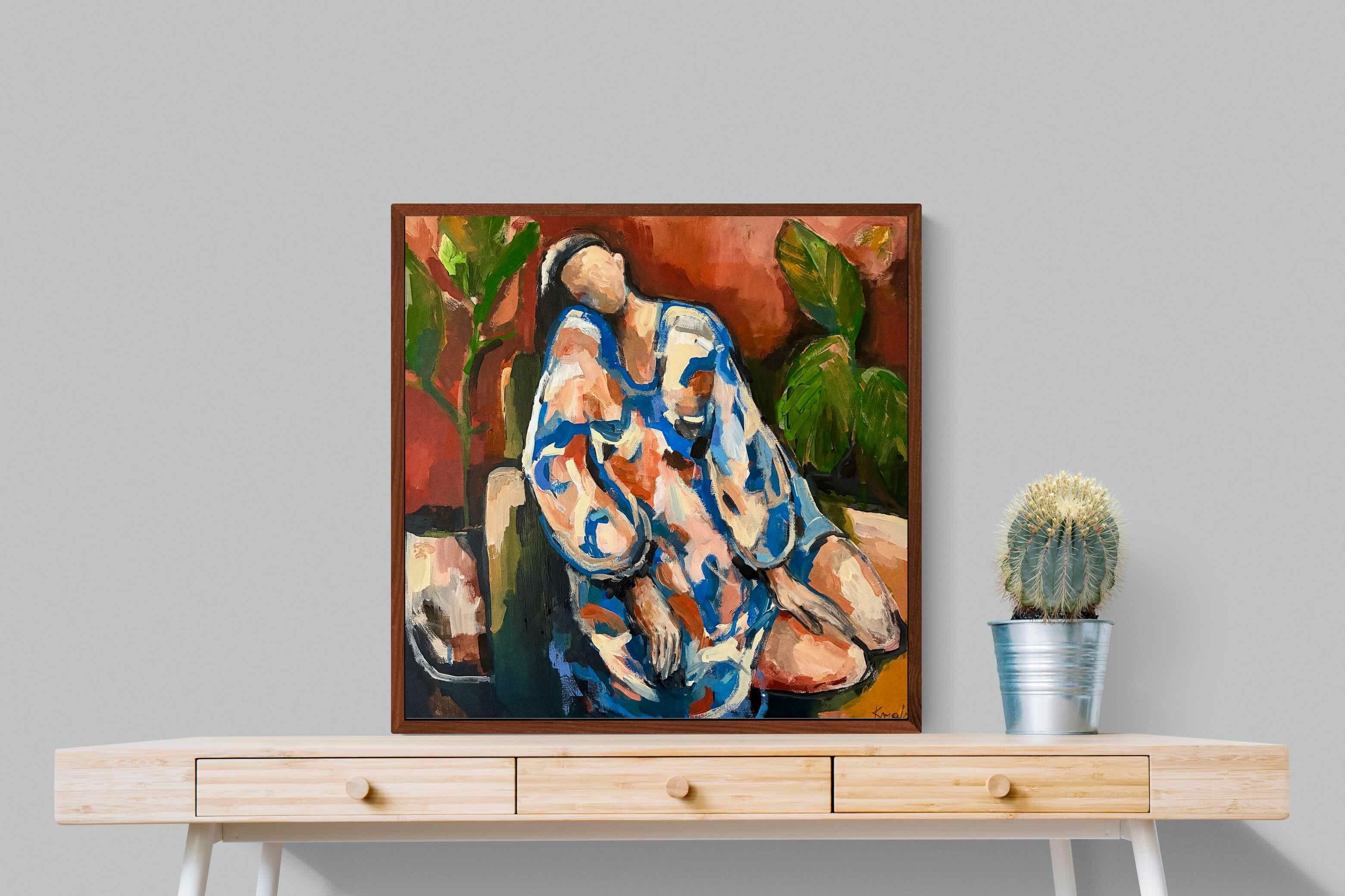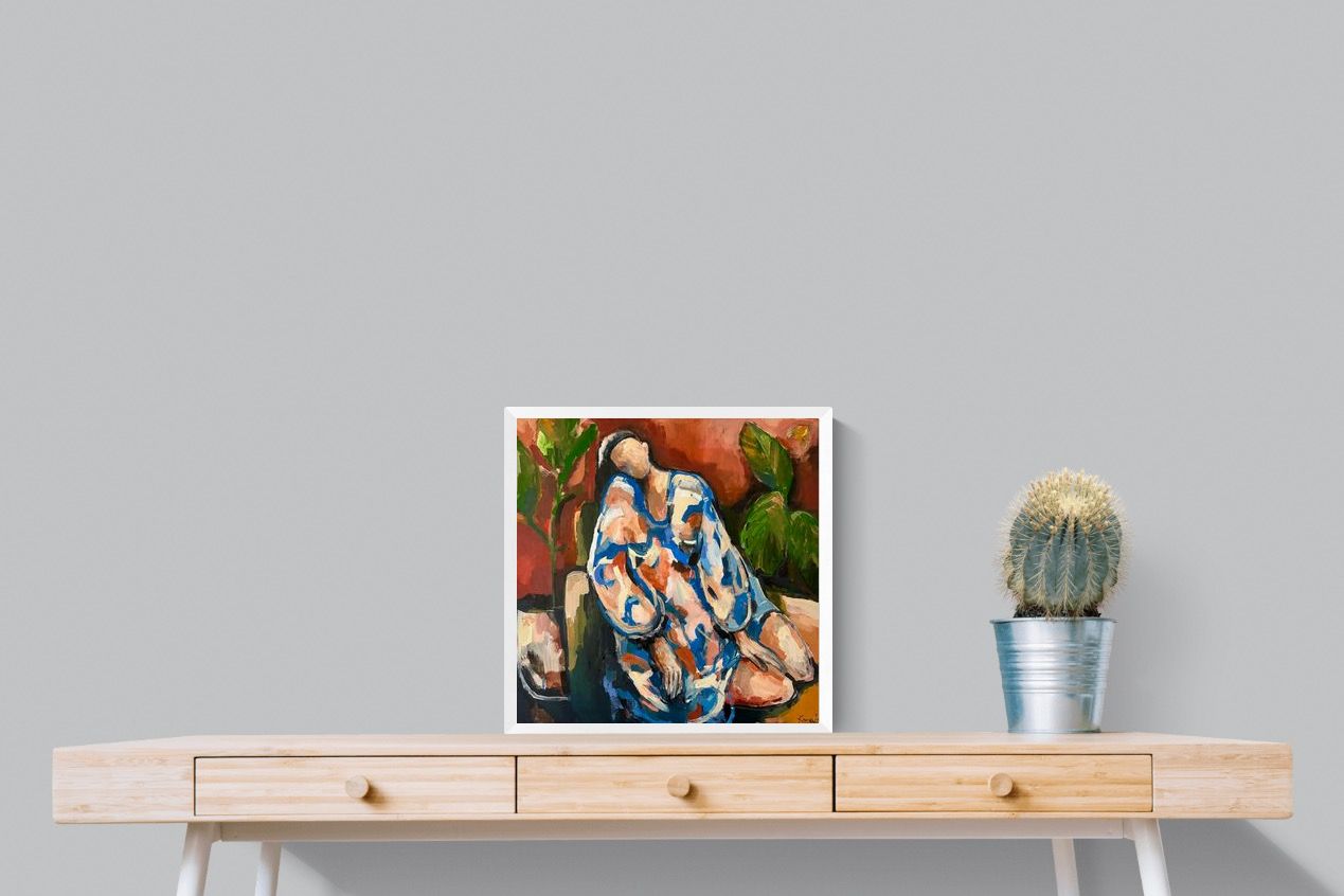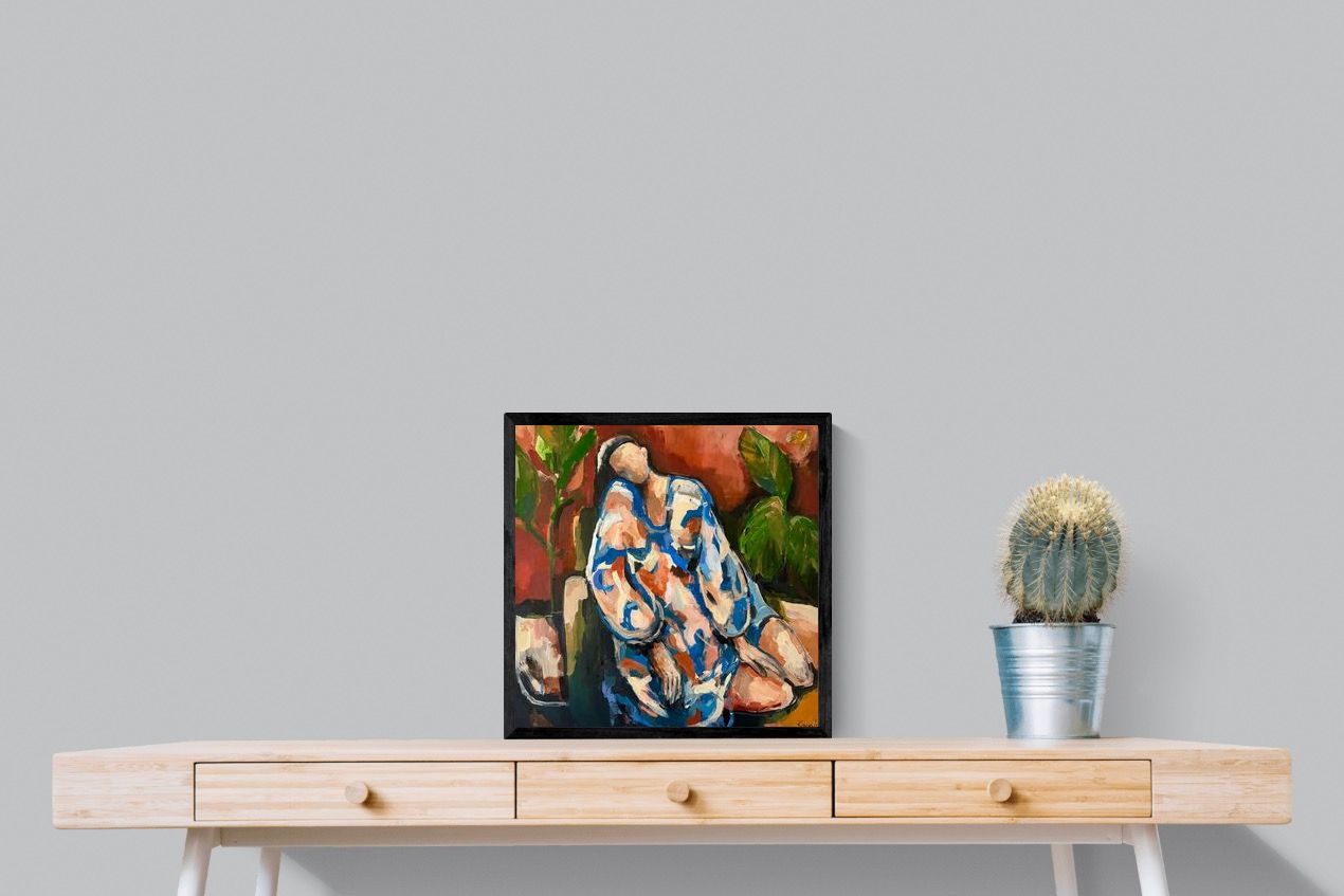This contemporary figurative piece captures a moment of stillness through layered brushwork and expressive colour. The abstracted figure, set against warm earthy tones, conveys introspection and calm while maintaining artistic energy. Ideal for modern interiors, it works beautifully in lounges, bedrooms or creative spaces, adding depth and emotional nuance without overpowering the room’s aesthetic.