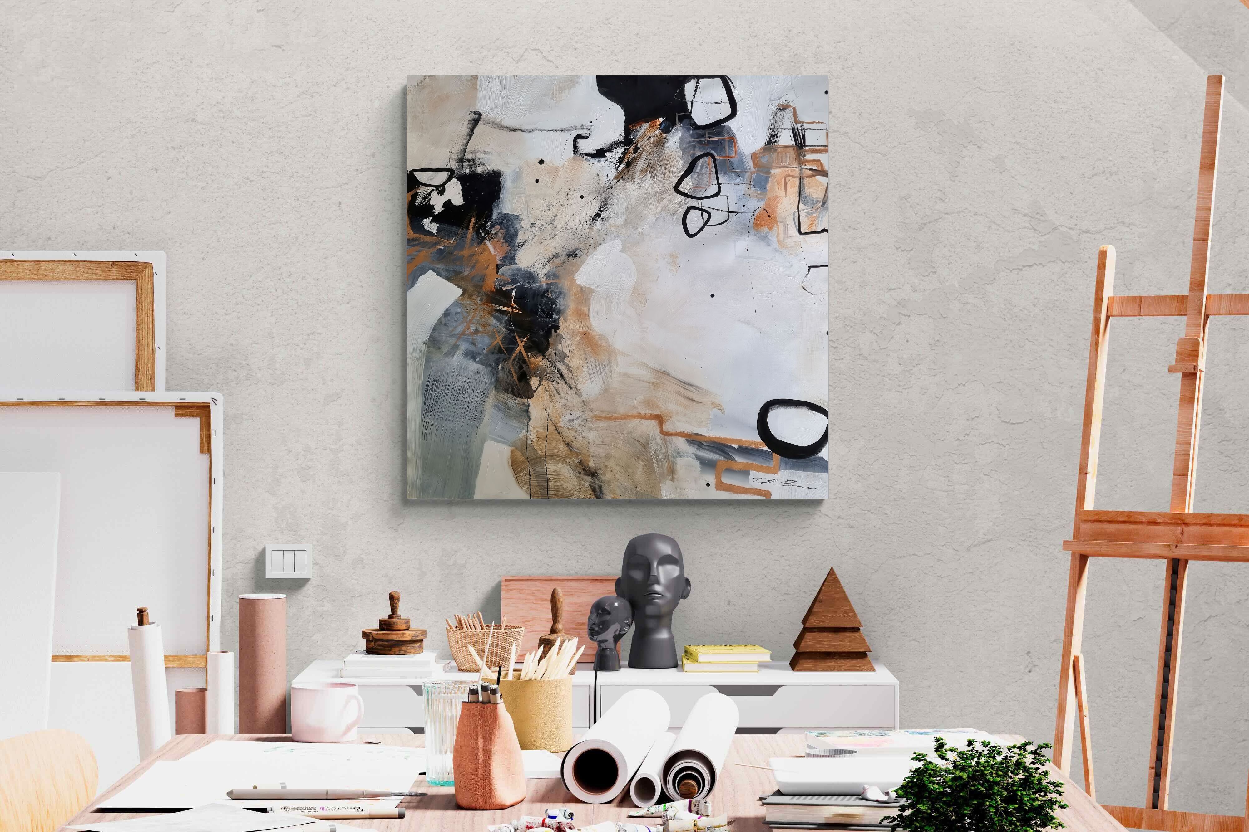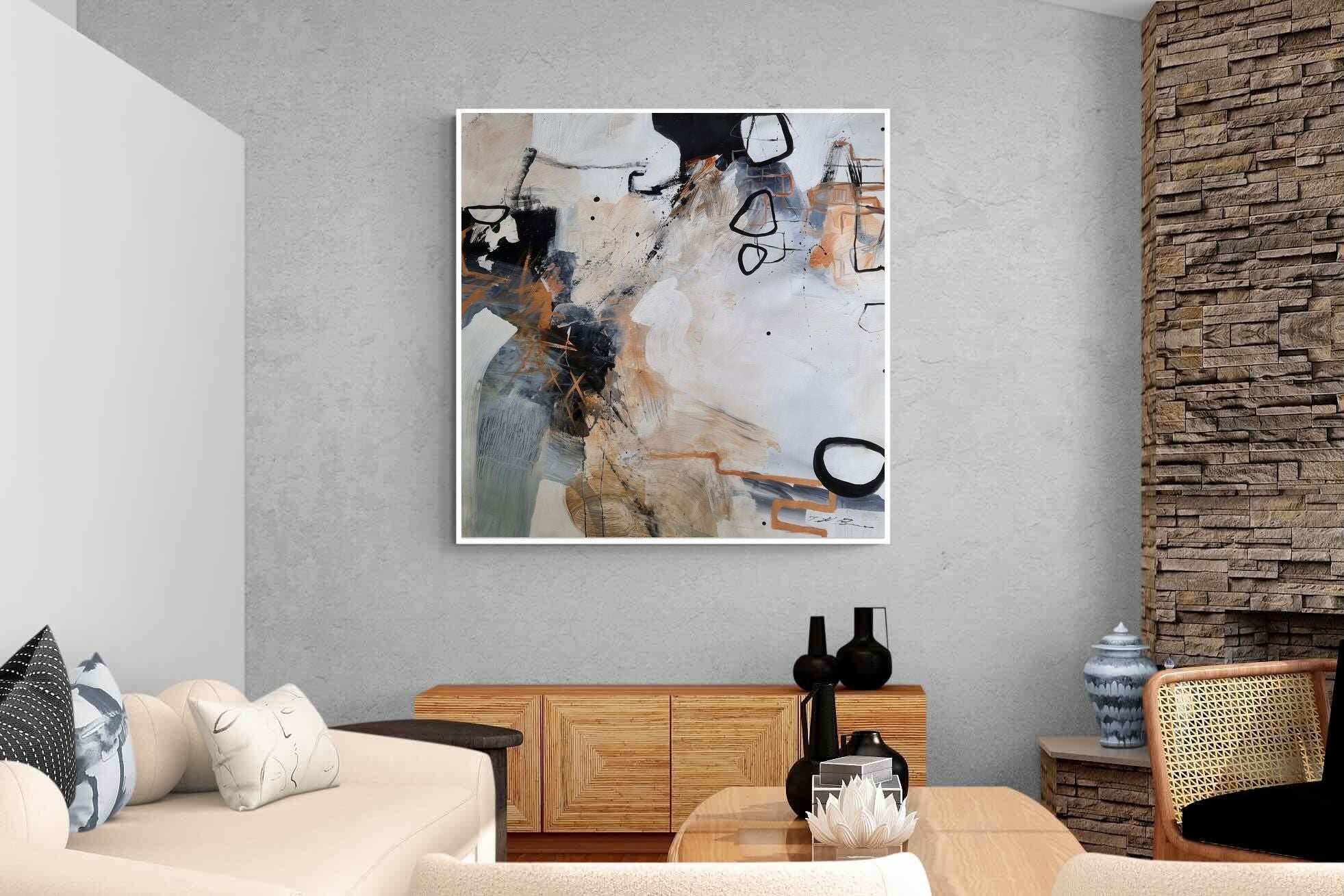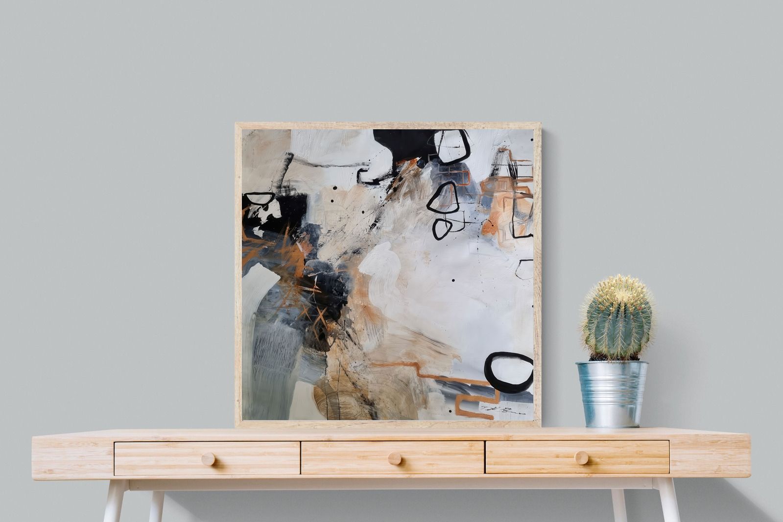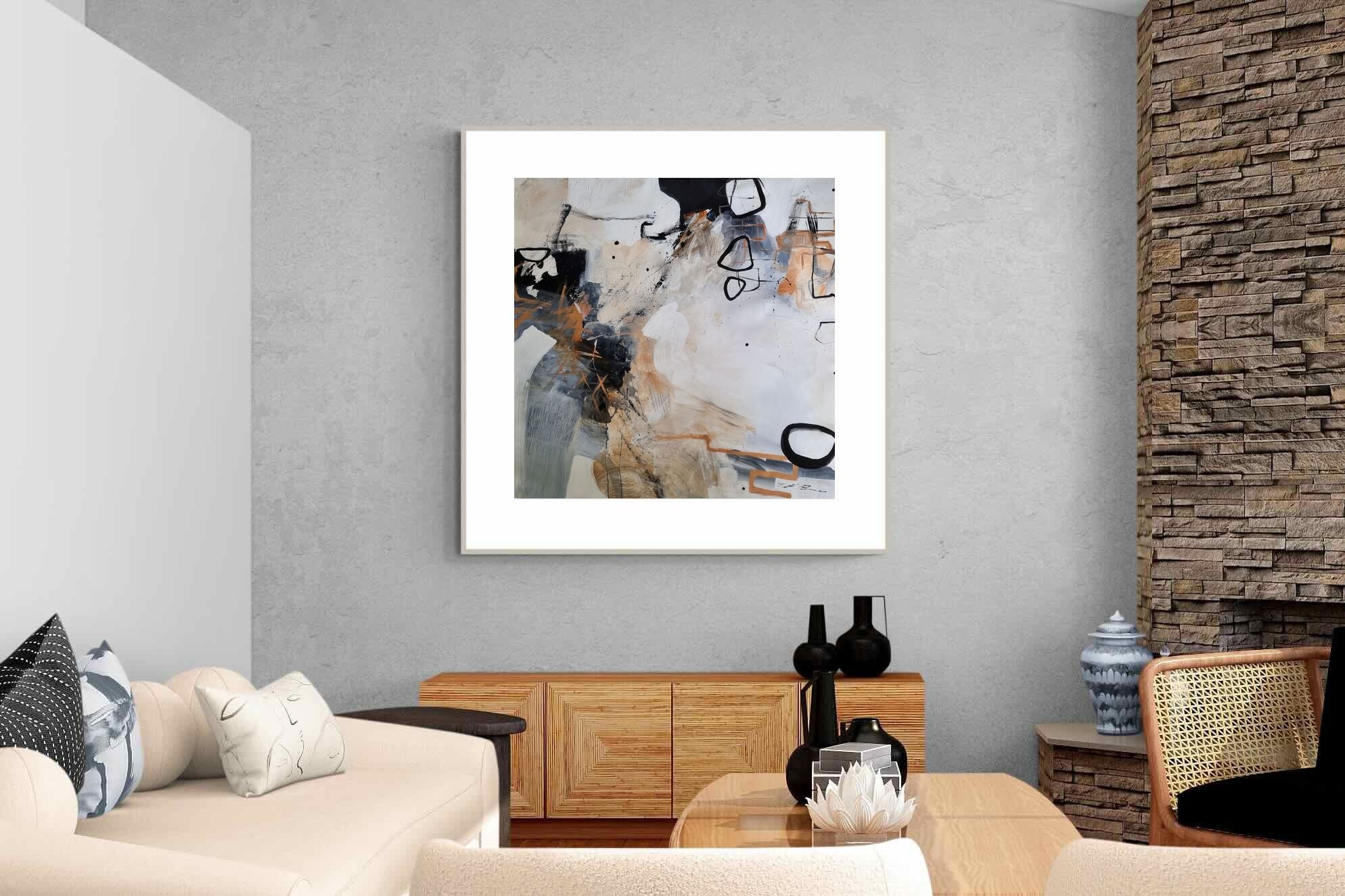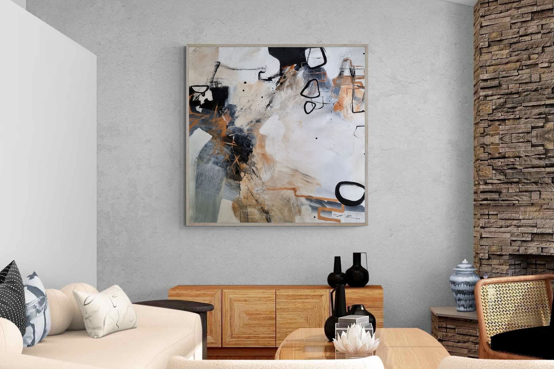 Quiet Geometry explores balance through soft neutrals, muted greys and confident black line work. The composition feels architectural yet organic, offering visual interest without heaviness. This artwork suits modern, minimalist and Scandinavian interiors, particularly open-plan living spaces or hallways where texture and form are preferred over bold colour statements.