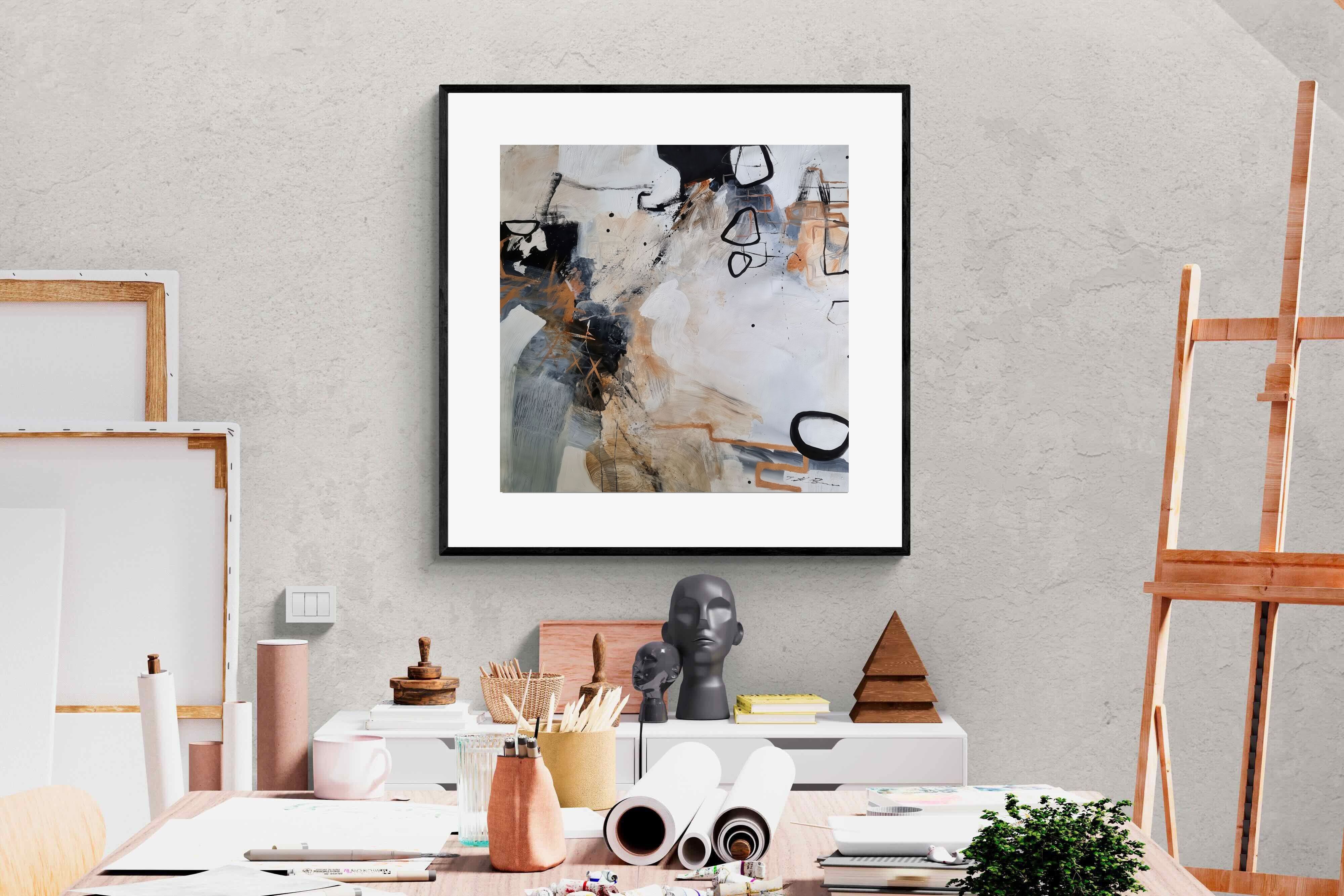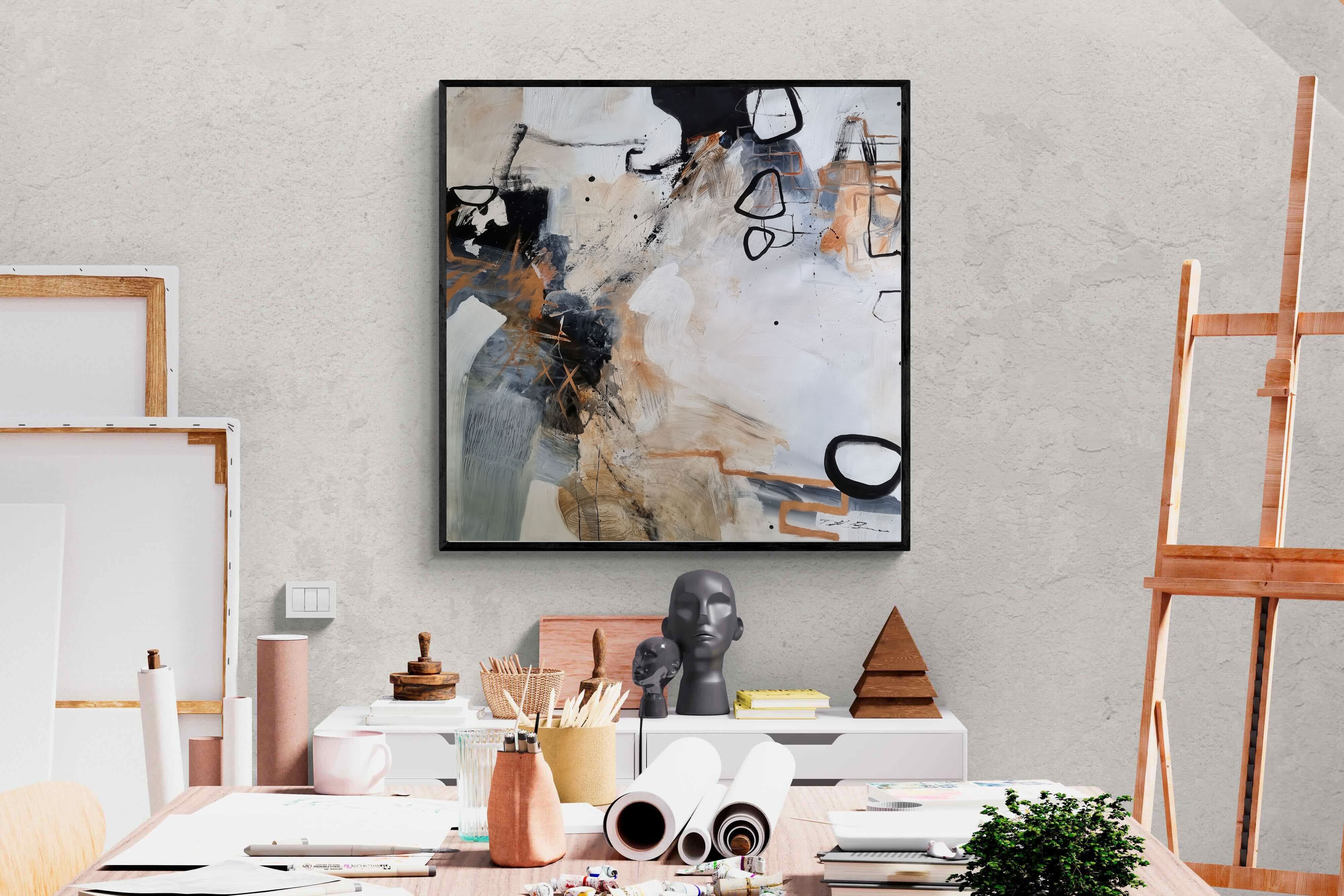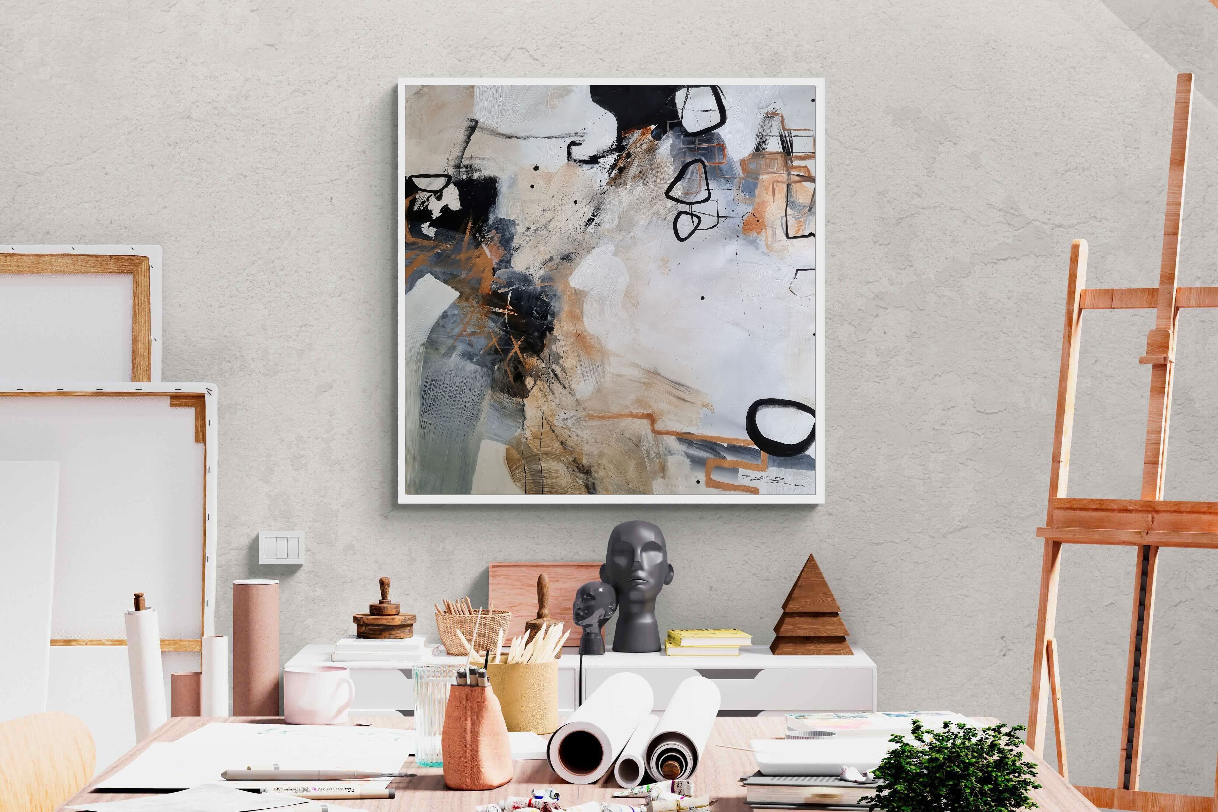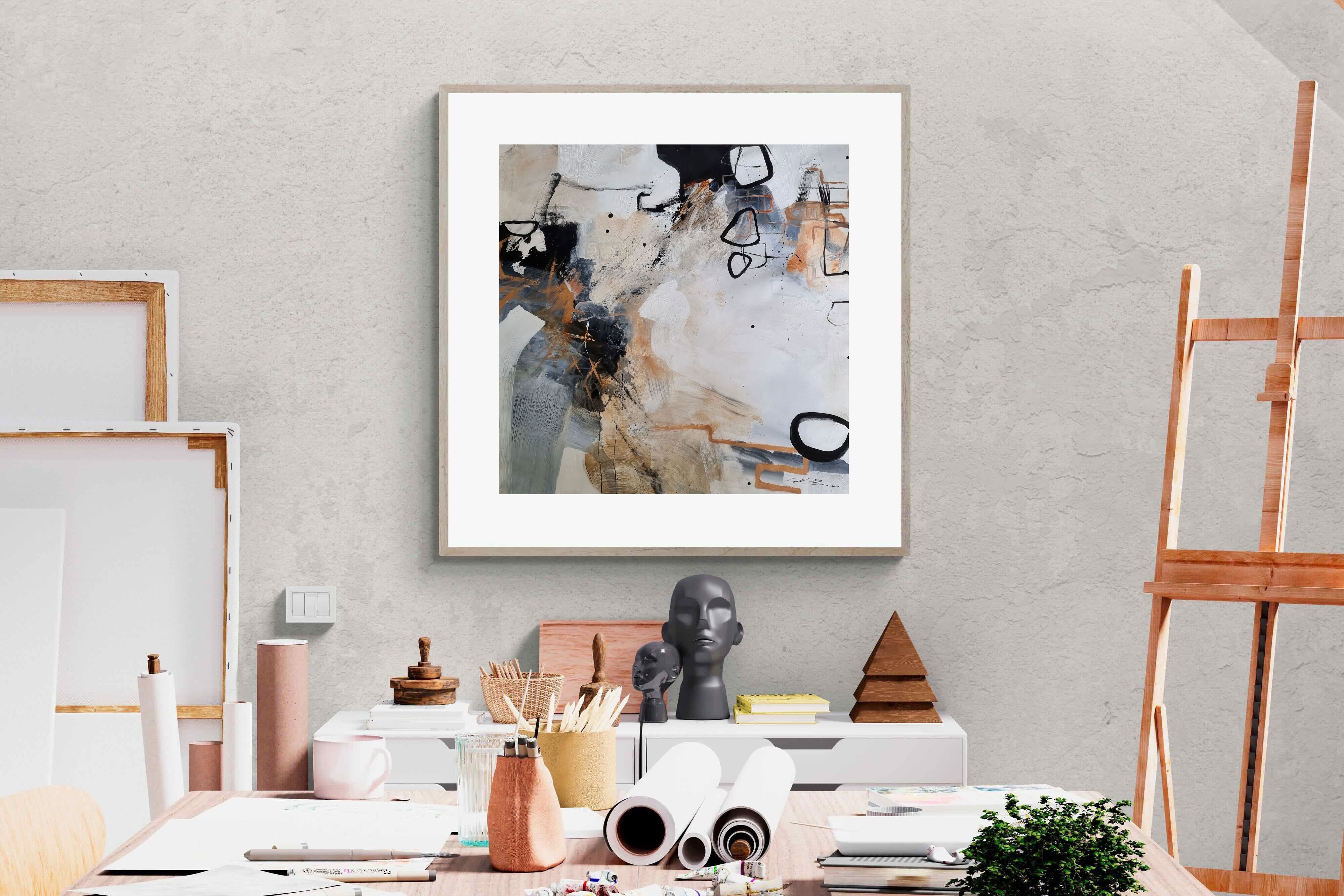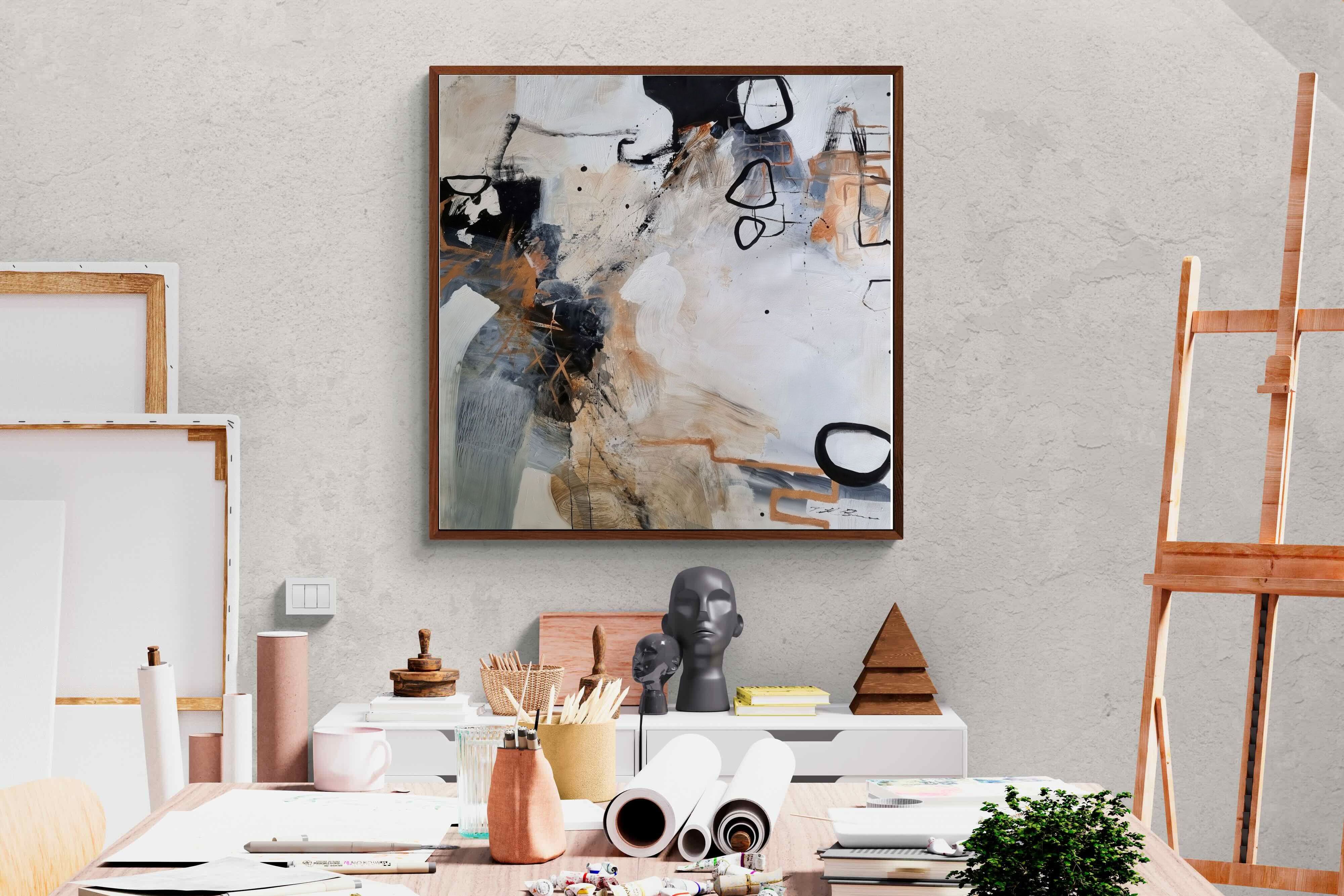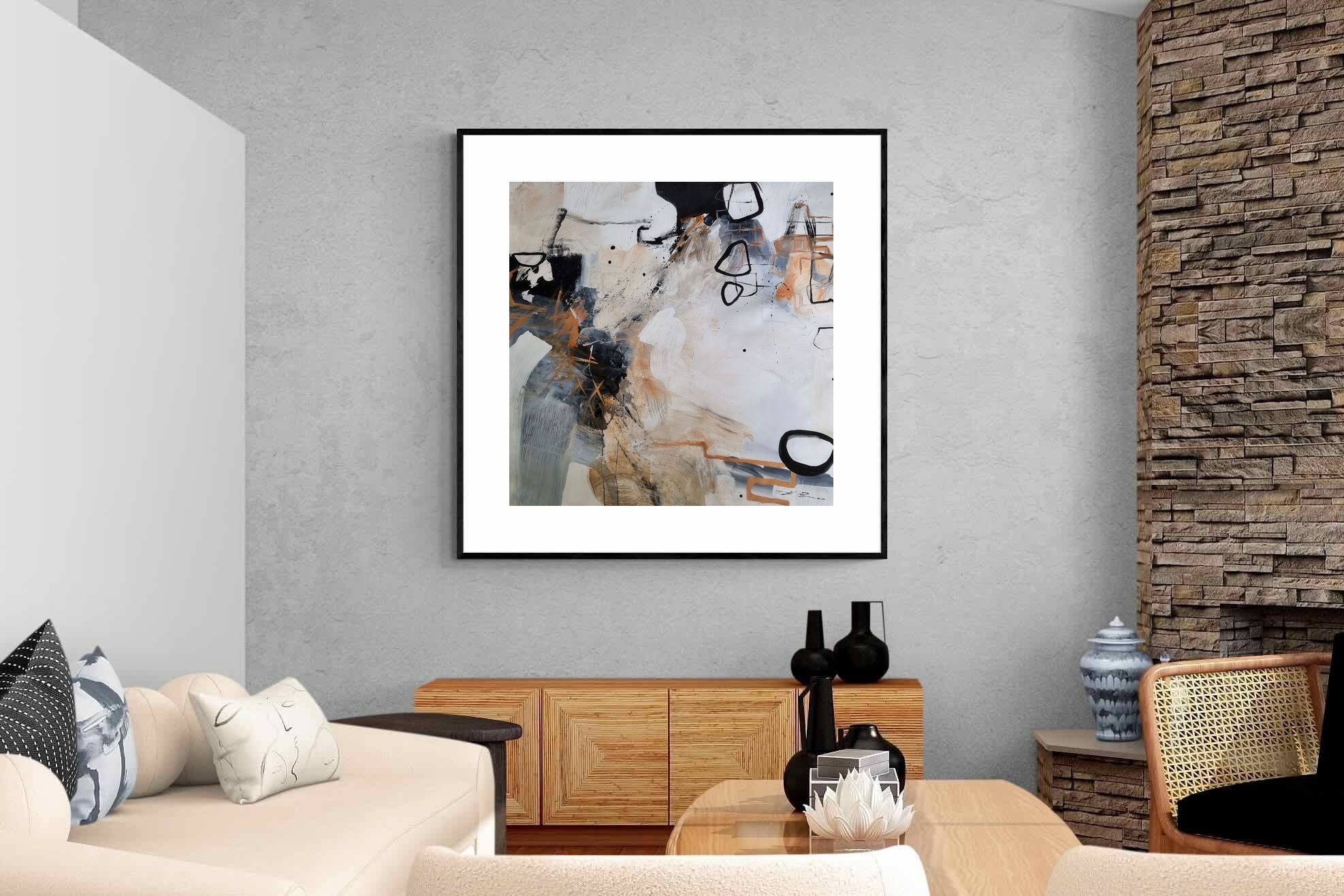 Quiet Geometry explores balance through soft neutrals, muted greys and confident black line work. The composition feels architectural yet organic, offering visual interest without heaviness. This artwork suits modern, minimalist and Scandinavian interiors, particularly open-plan living spaces or hallways where texture and form are preferred over bold colour statements.