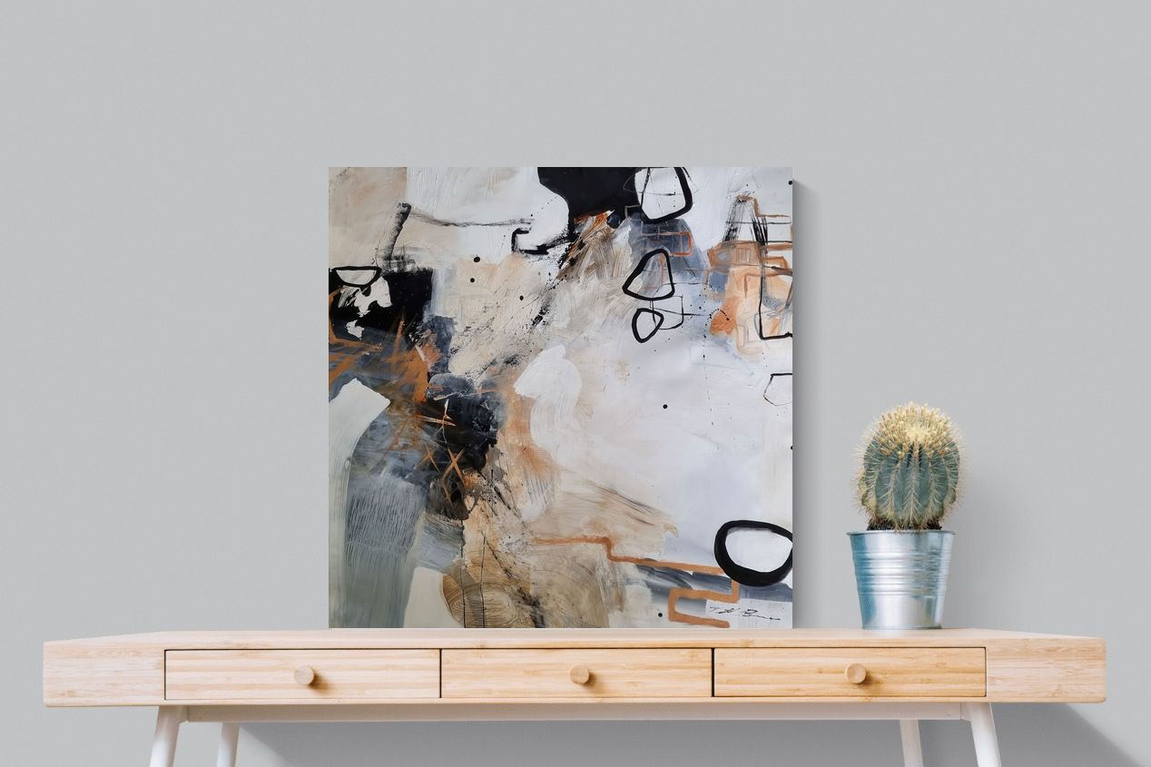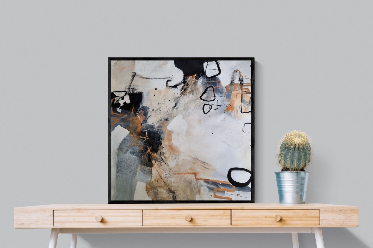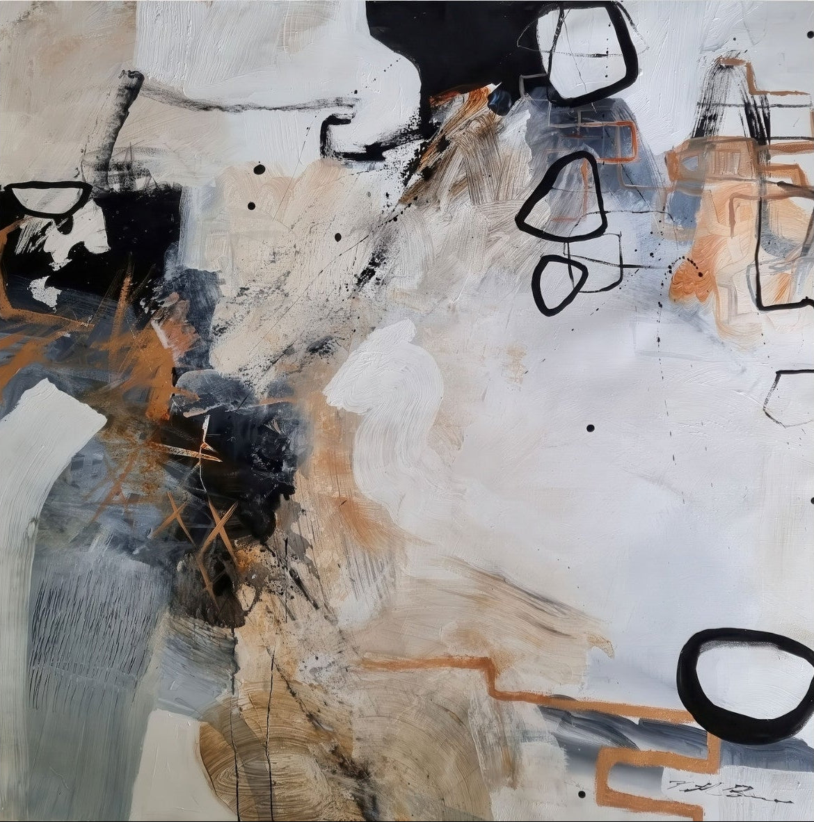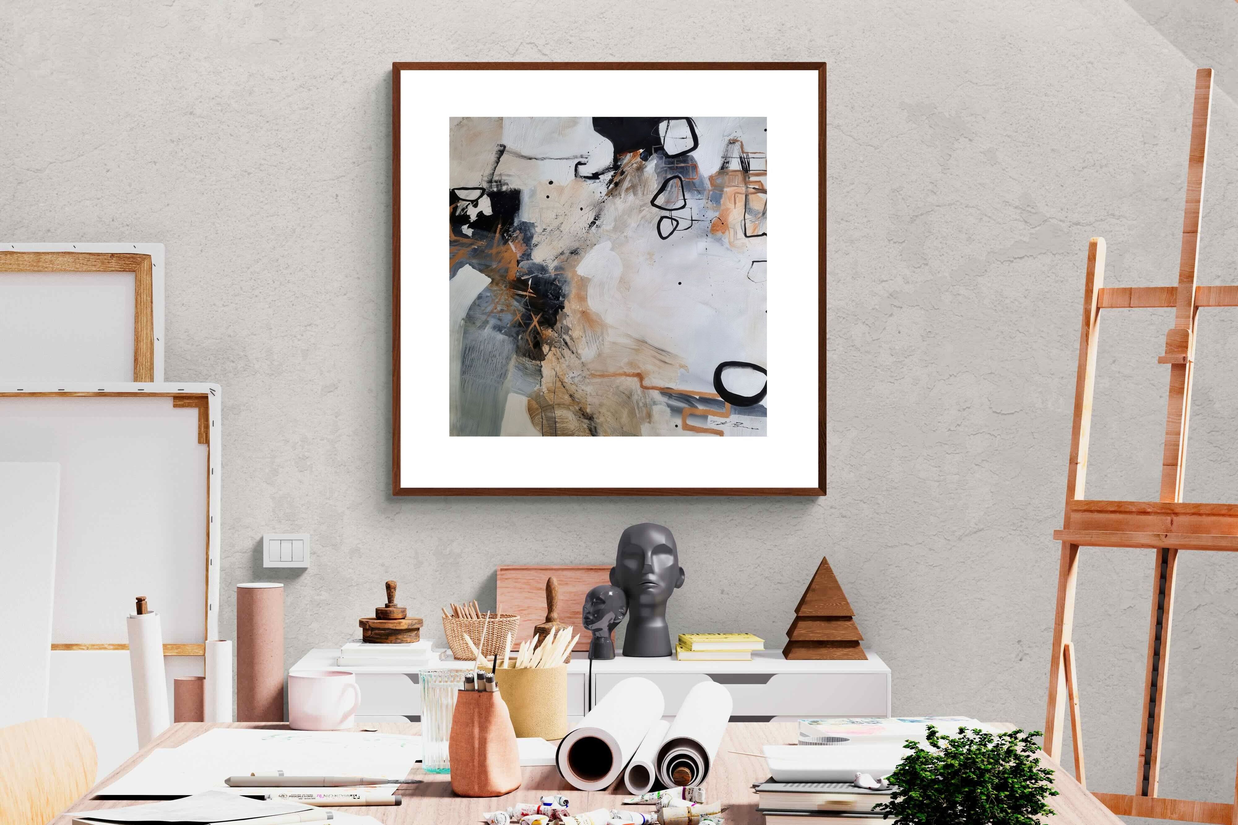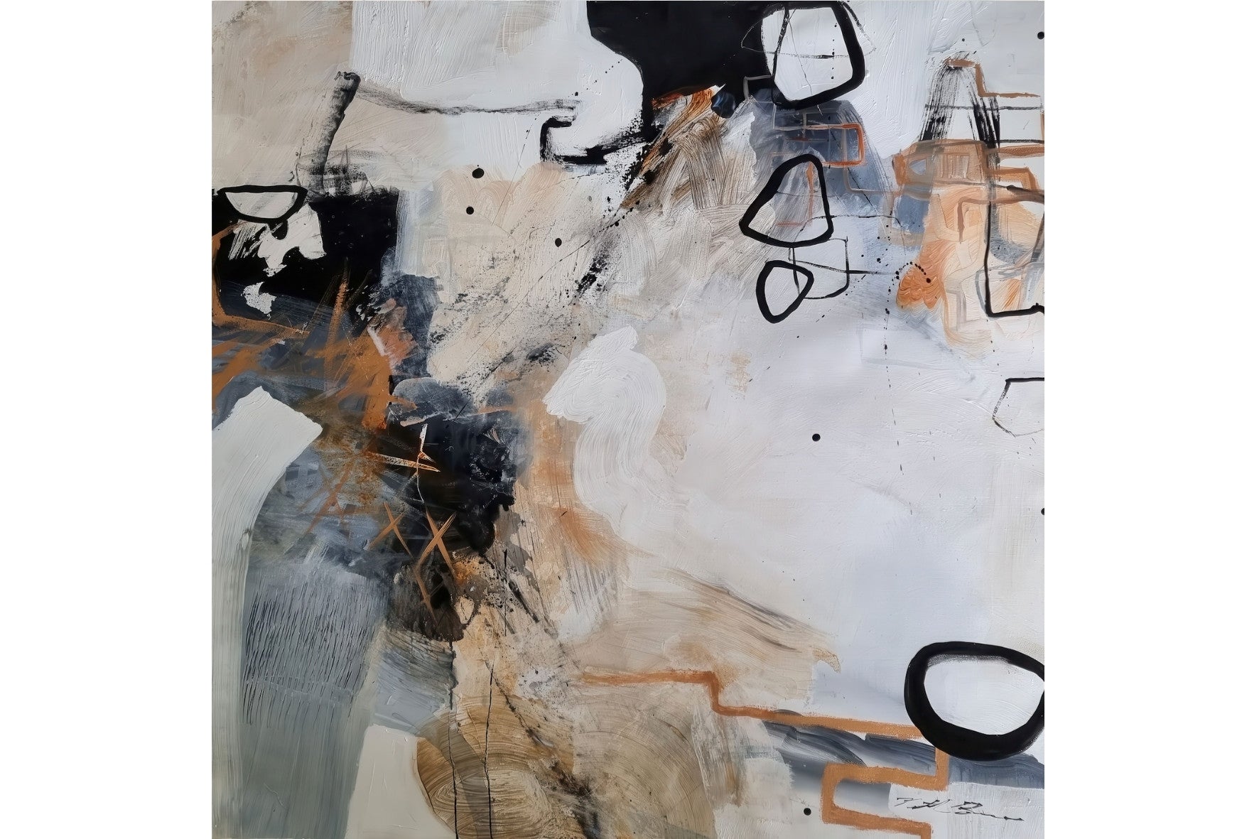 Quiet Geometry explores balance through soft neutrals, muted greys and confident black line work. The composition feels architectural yet organic, offering visual interest without heaviness. This artwork suits modern, minimalist and Scandinavian interiors, particularly open-plan living spaces or hallways where texture and form are preferred over bold colour statements.