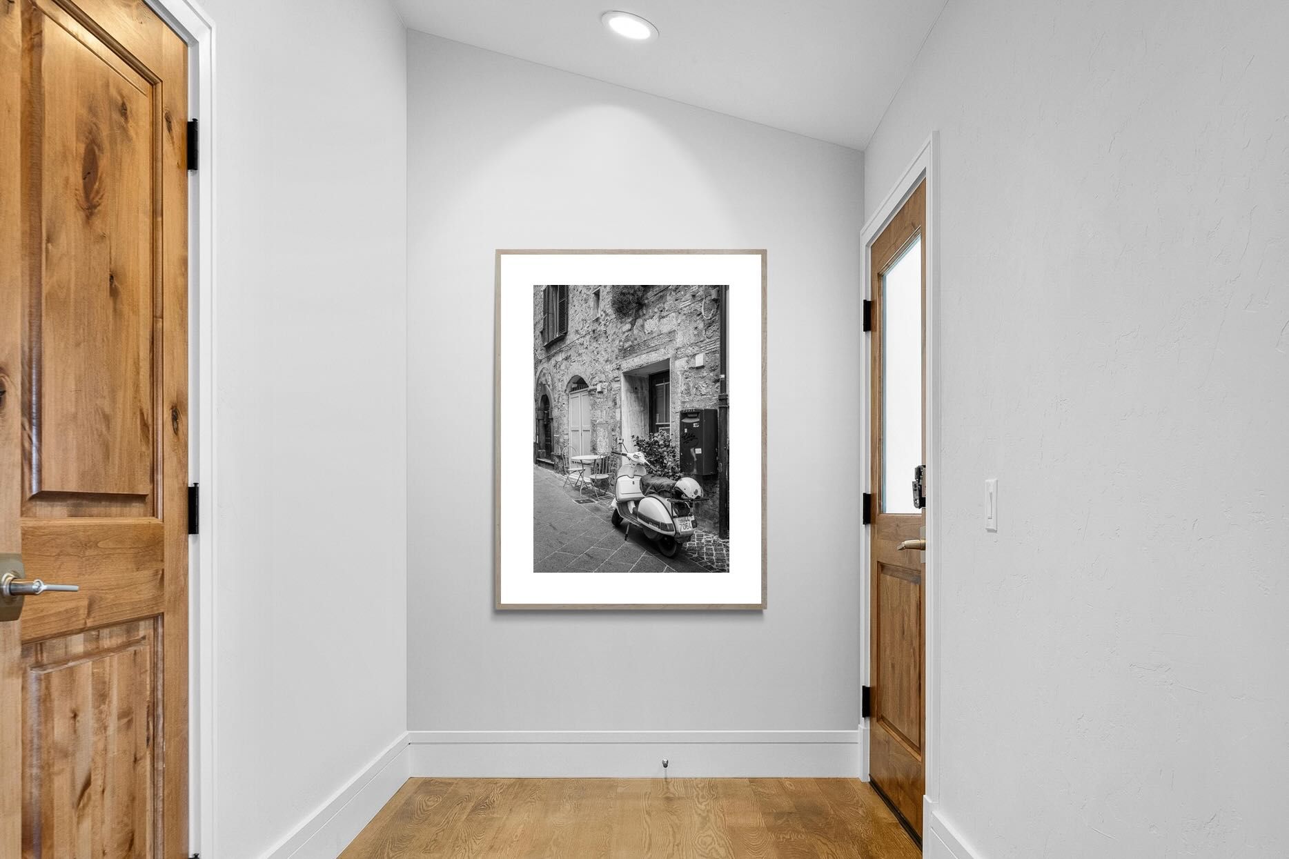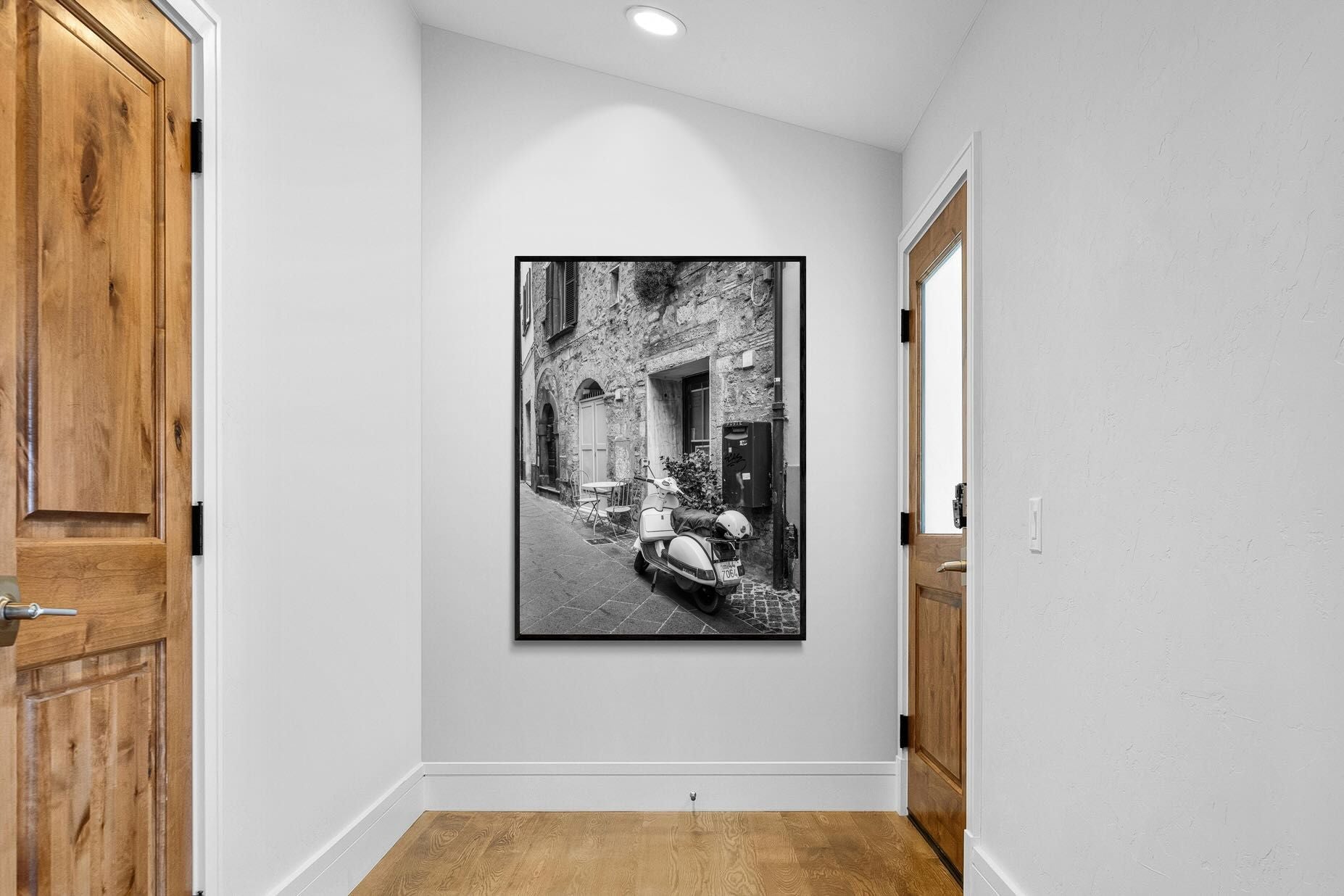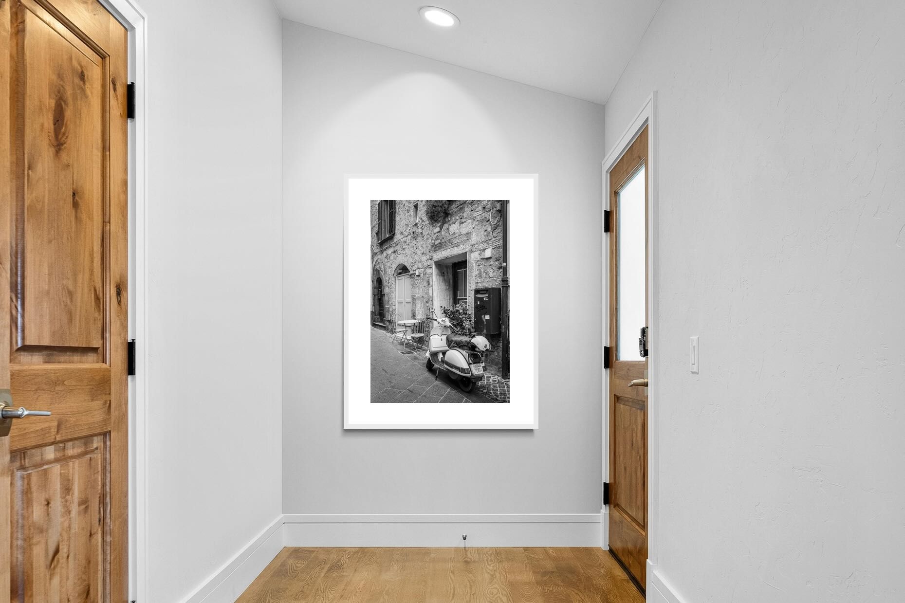 Italian Street Vespa Wall Art – Black-and-White European Travel Photography