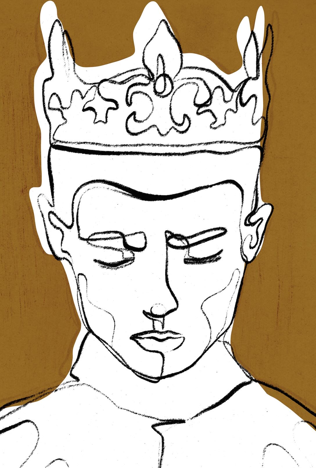 This striking portrait uses simple black linework and a rich mustard background to create a regal image with modern graphic appeal. The crown adds symbolism and confidence, while the pared-back style keeps the artwork clean and versatile. It would work beautifully in contemporary living spaces, studies, bedrooms or entrance halls, particularly in interiors that favour bold accents, modern design and artwork that brings quiet authority and visual clarity to the wall.