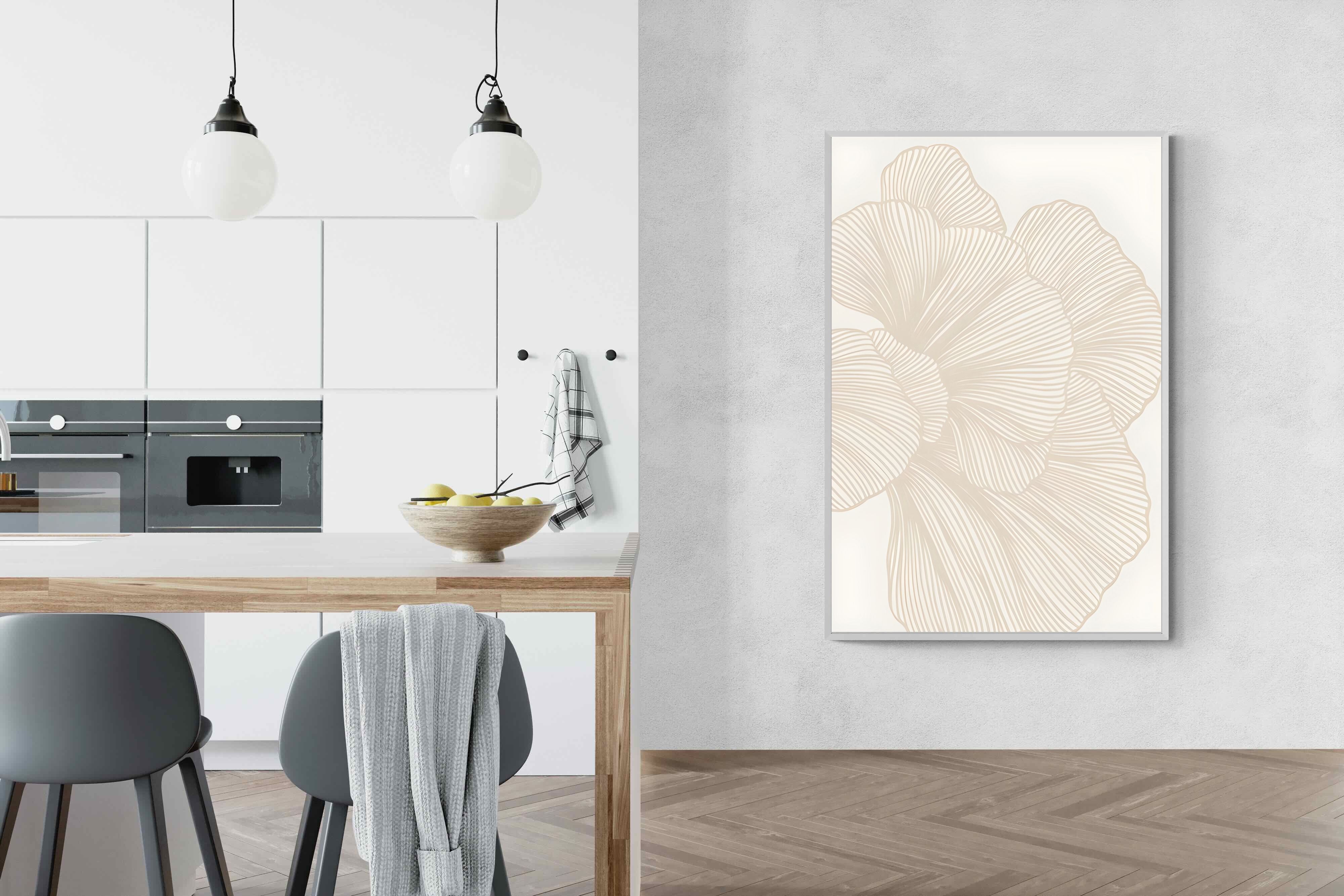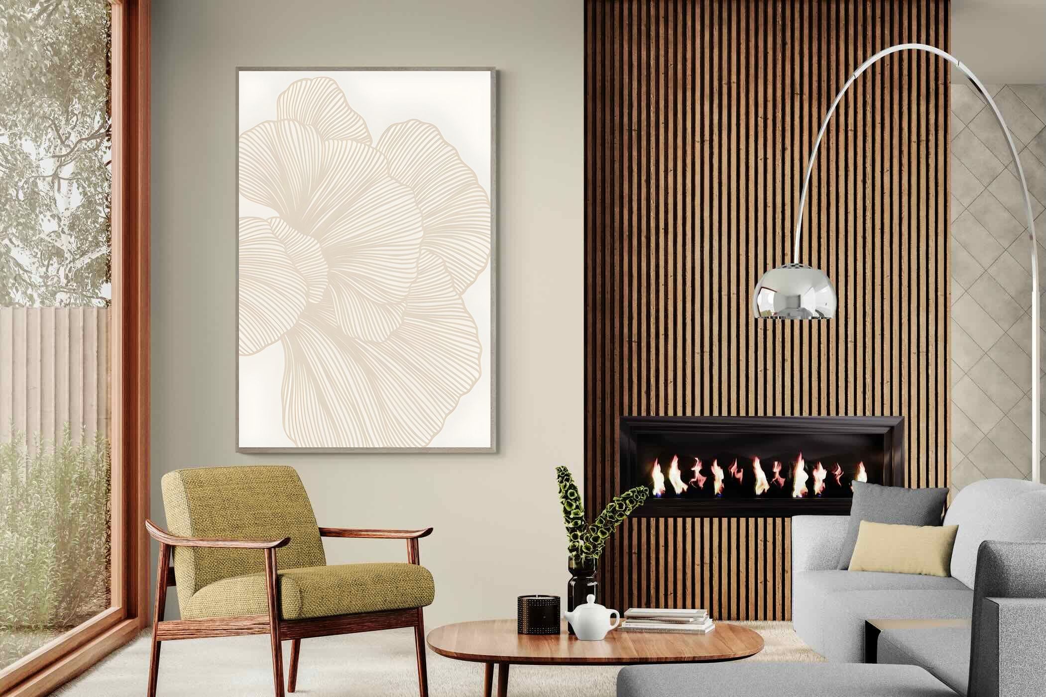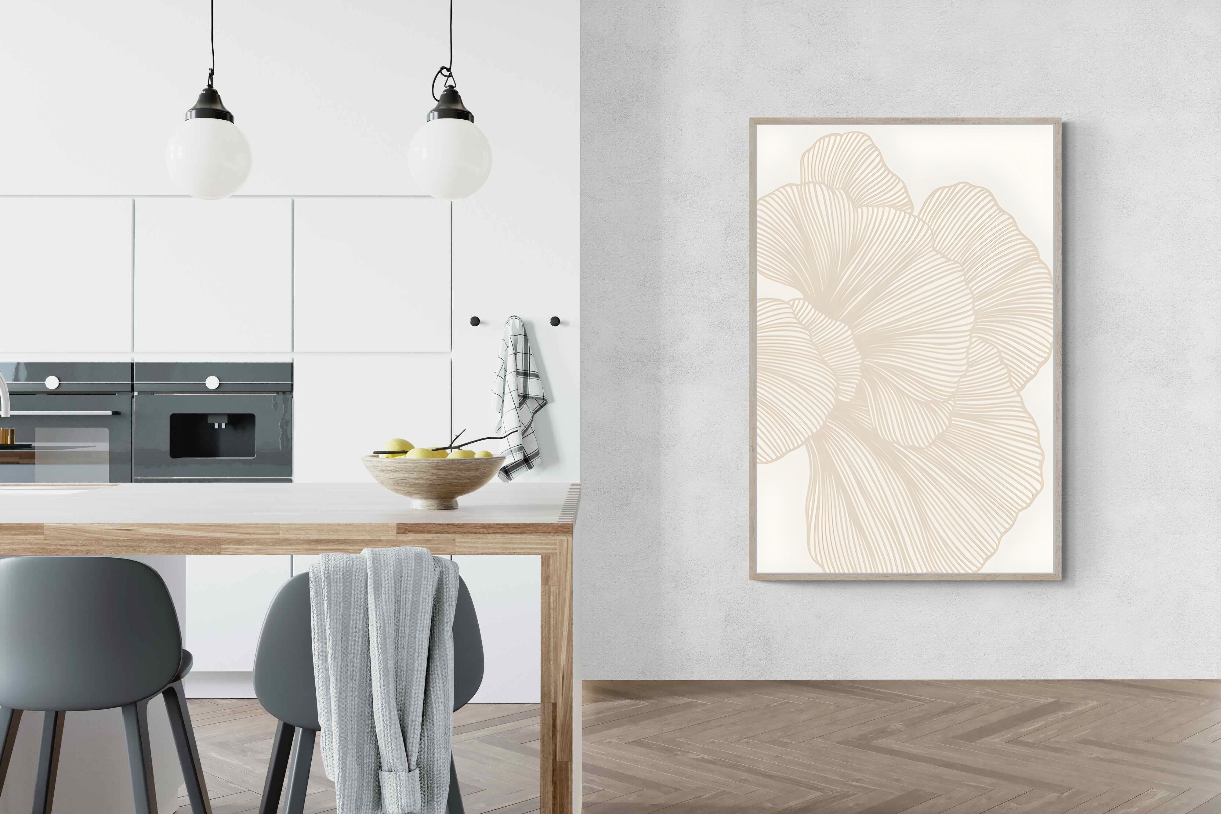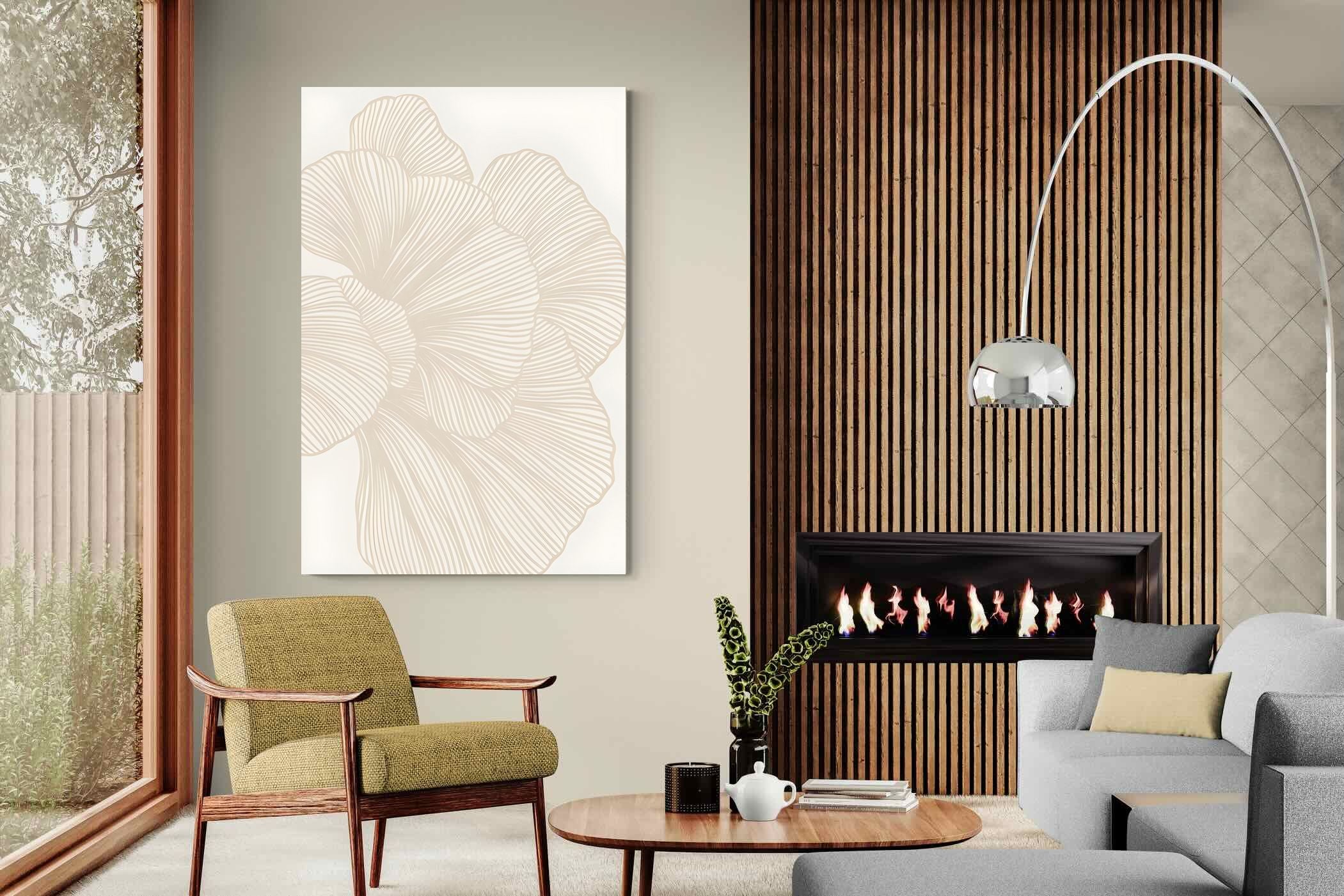 Soft Petals features layered, flowing line work forming an abstract floral shape in warm neutral tones. Subtle and elegant, this piece adds texture without visual noise. Ideal for minimalist, contemporary or Scandinavian interiors, it suits living rooms, bedrooms and dining spaces where calm cohesion is key. Its neutral palette integrates effortlessly with modern furniture, natural textiles and softly layered interiors seeking understated sophistication.