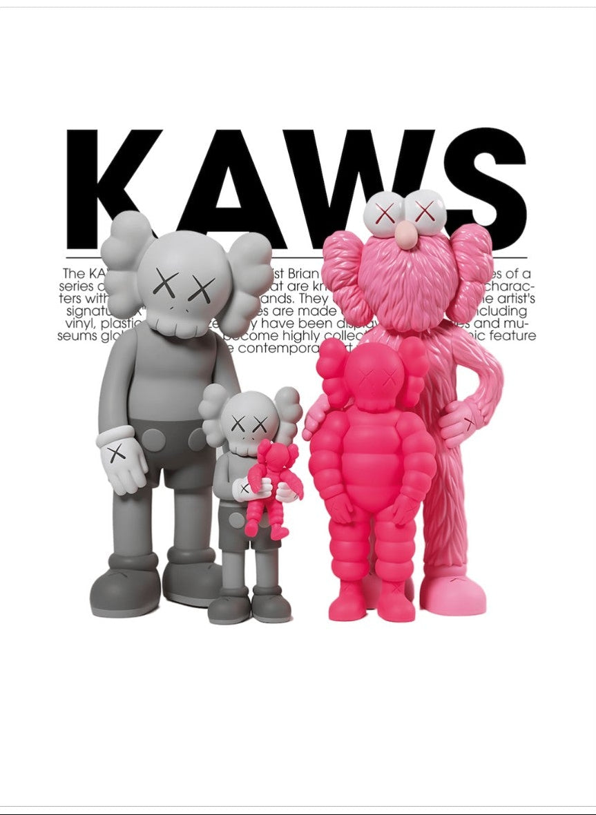 If you're aiming for a bold statement, consider our wallpaper option. Cover an entire wall, tailored to your wall's dimensions, by clicking on the wallpaper button on this page. Regardless of your choice, the "KAWS Family" is guaranteed to add a touch of contemporary design to any room.