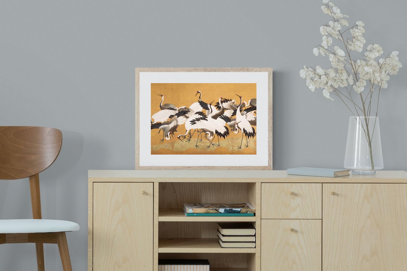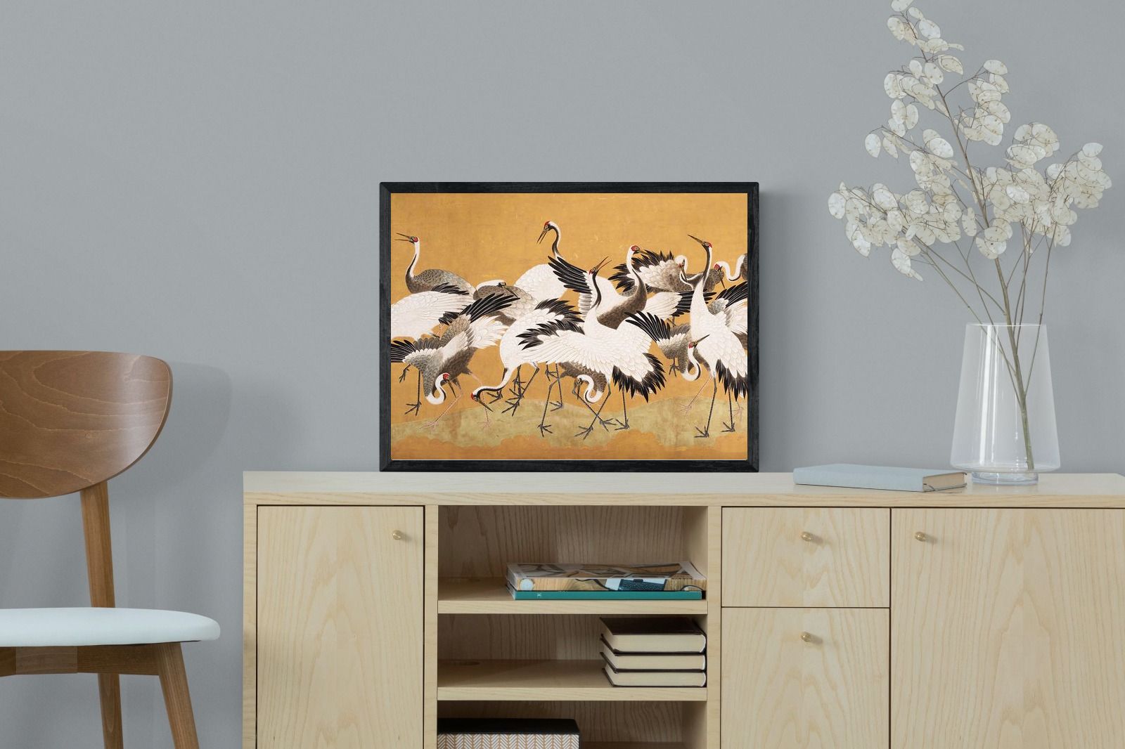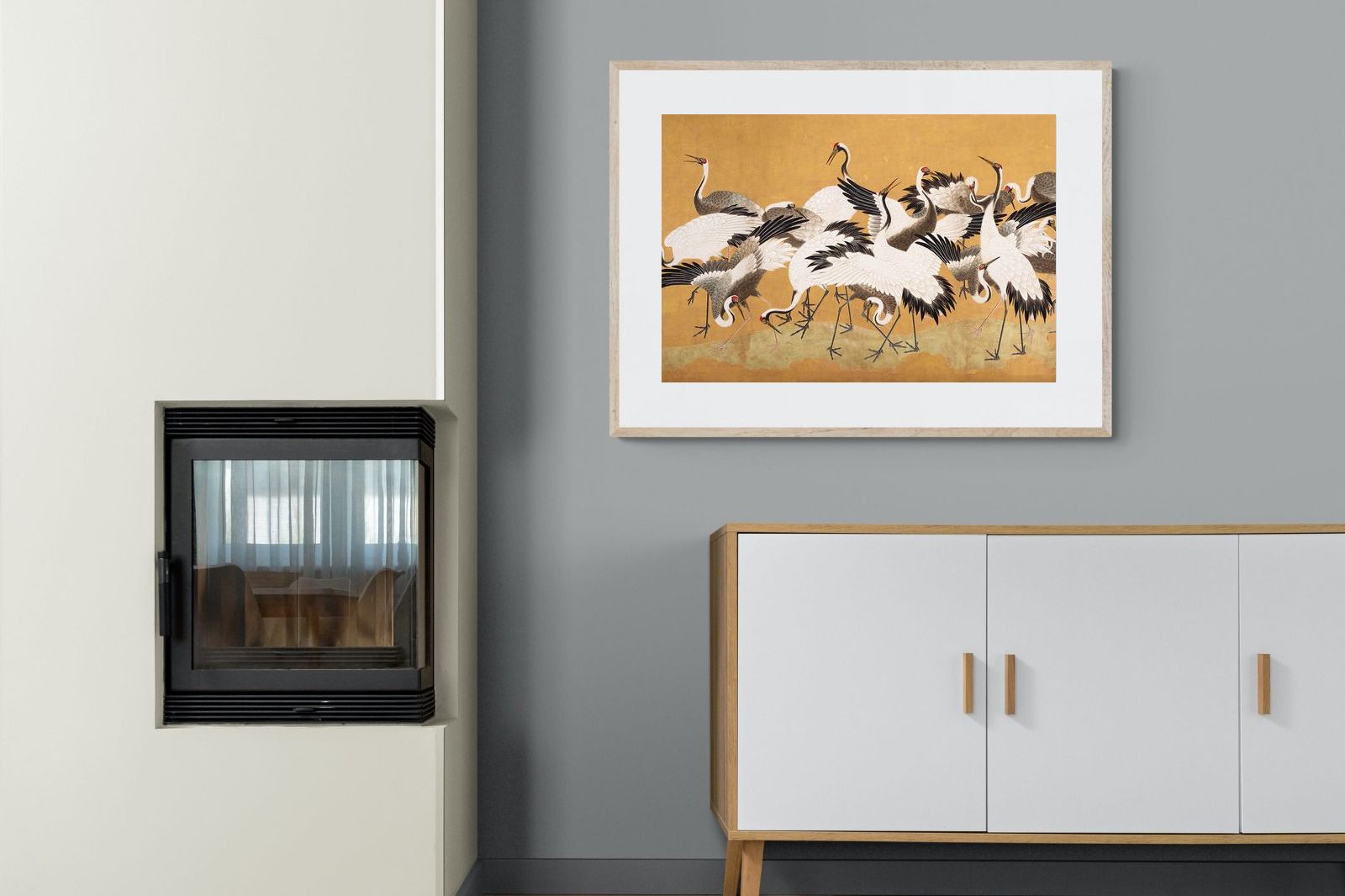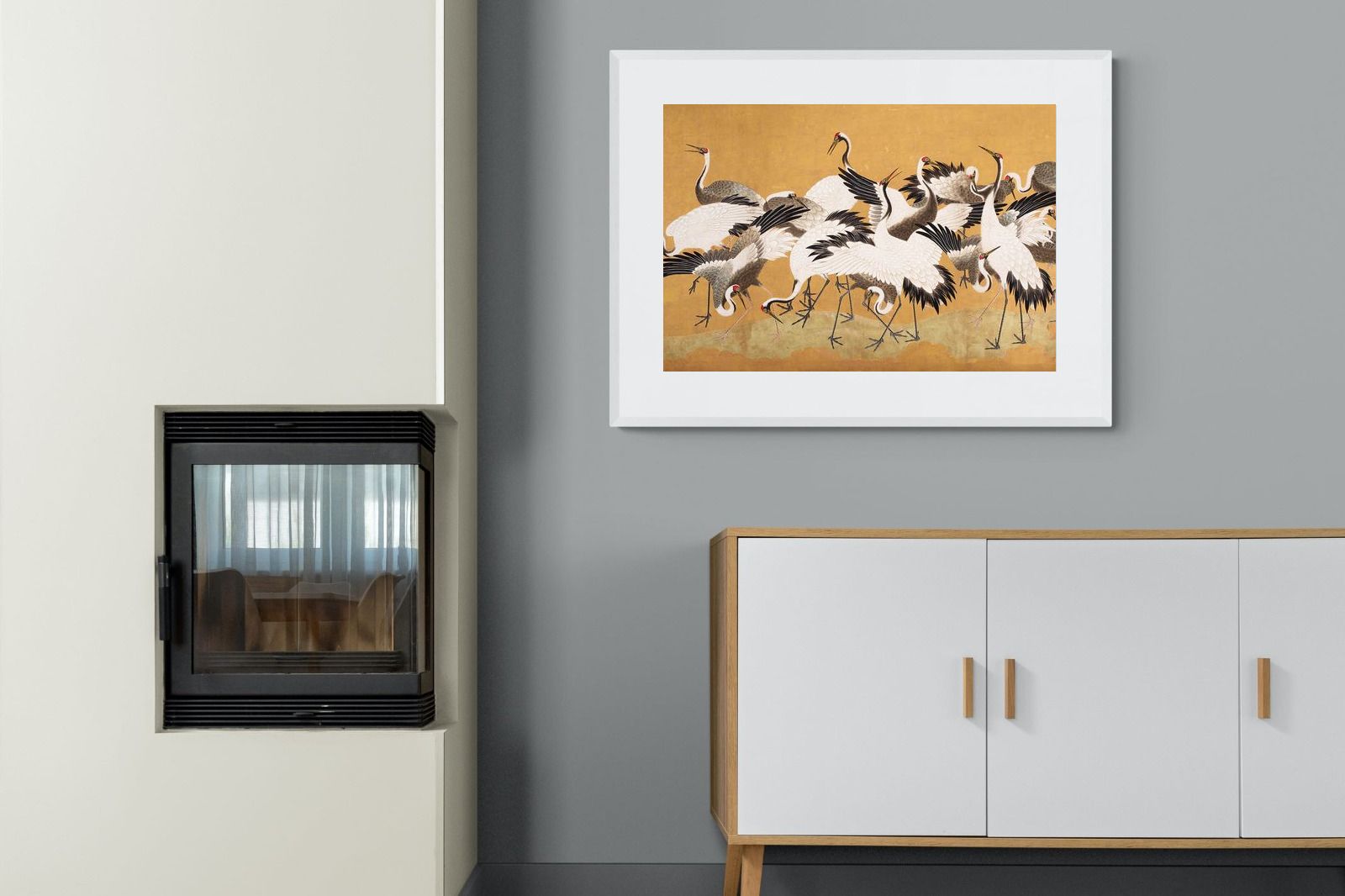 Striking Japanese cranes illustration, from the Madam-Blanc Collection of Dutch Design Studio Sir Edward.