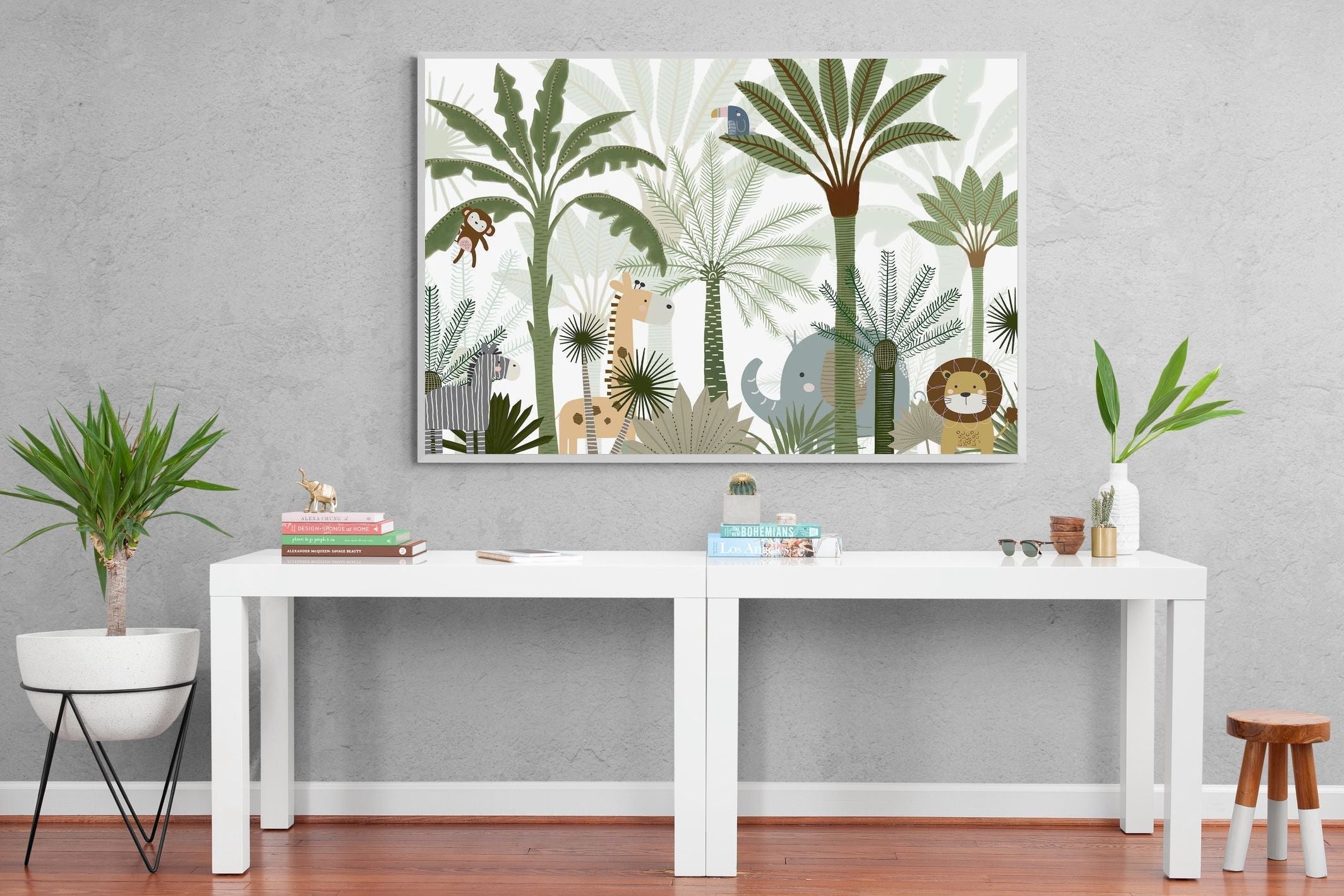 Infuse your child's room with the enchanting allure of "Jungle Joy" from the Oliver Robins Collection and ignite their sense of wonder and adventure. Order your wall art or wallpaper from Pixalot today and experience the unmatched quality, customer satisfaction, and artistry that comes with every purchase.