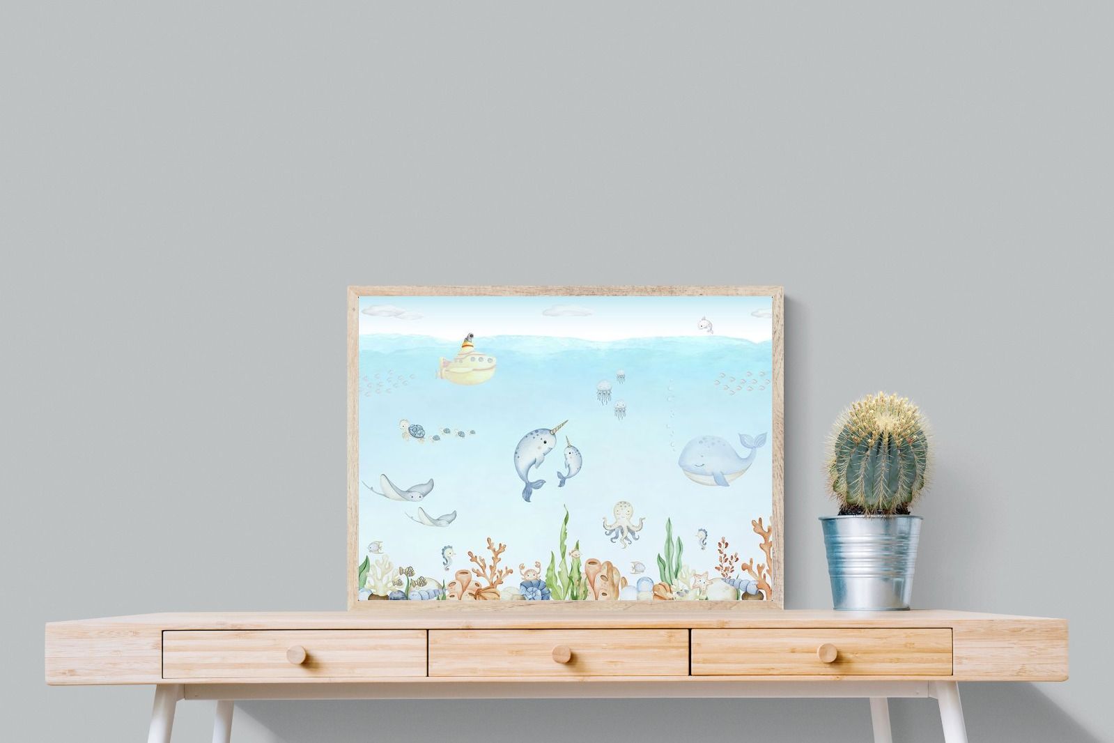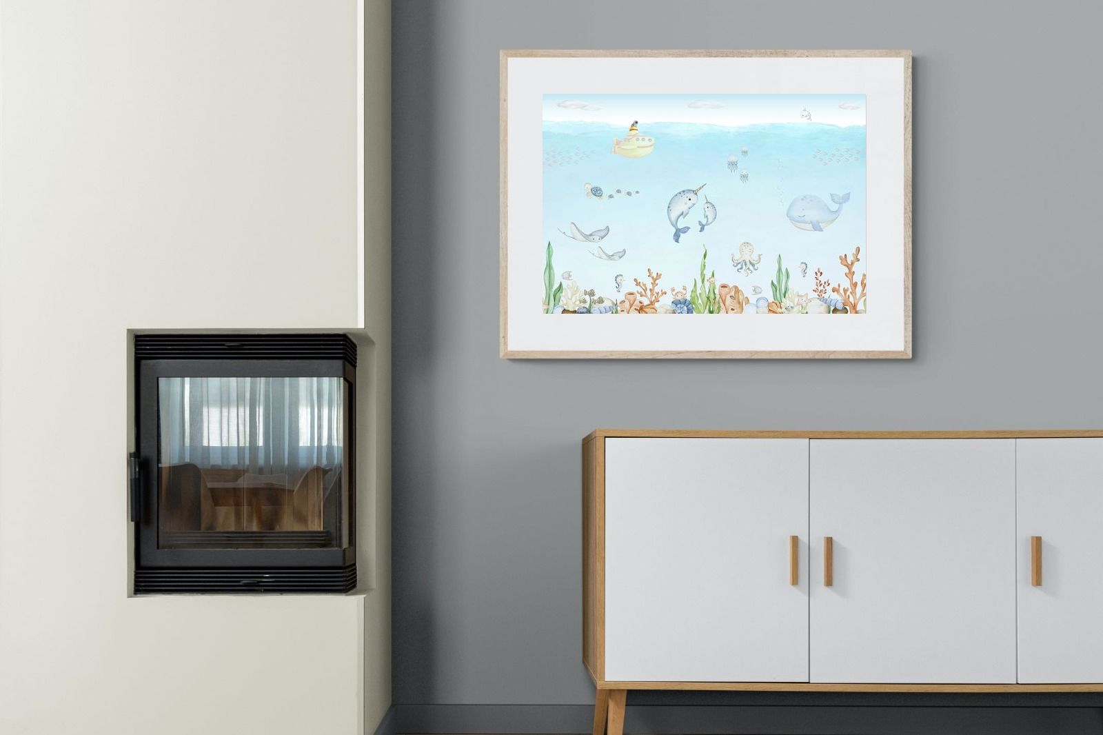 Introducing the delightful "Ocean Joy" artwork from the Oliver Robins Collection by the renowned Dutch design studio, Sir Edward. This charming watercolour features a wonderful underwater scene with turtles, seahorses, and other marine cuties, creating a captivating image. With Pixalot, you can enjoy "Ocean Joy" as wall art on canvas or framed behind glass, or as wallpaper, delivered to and installed by our certified professionals, ensuring complete customer satisfaction.
