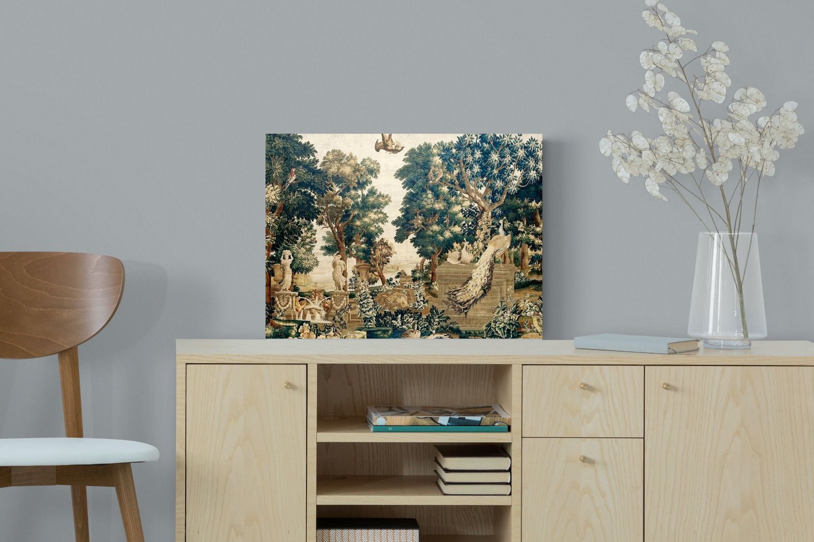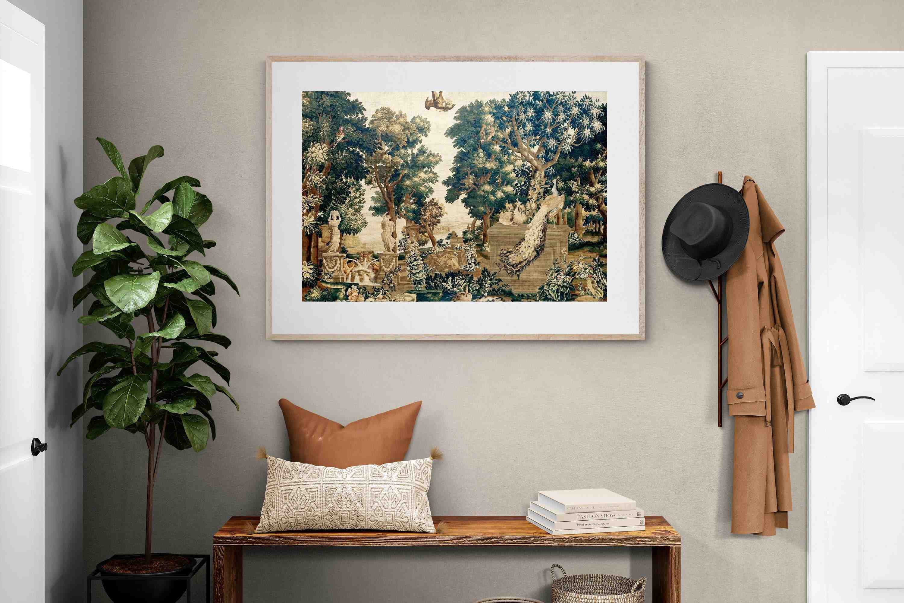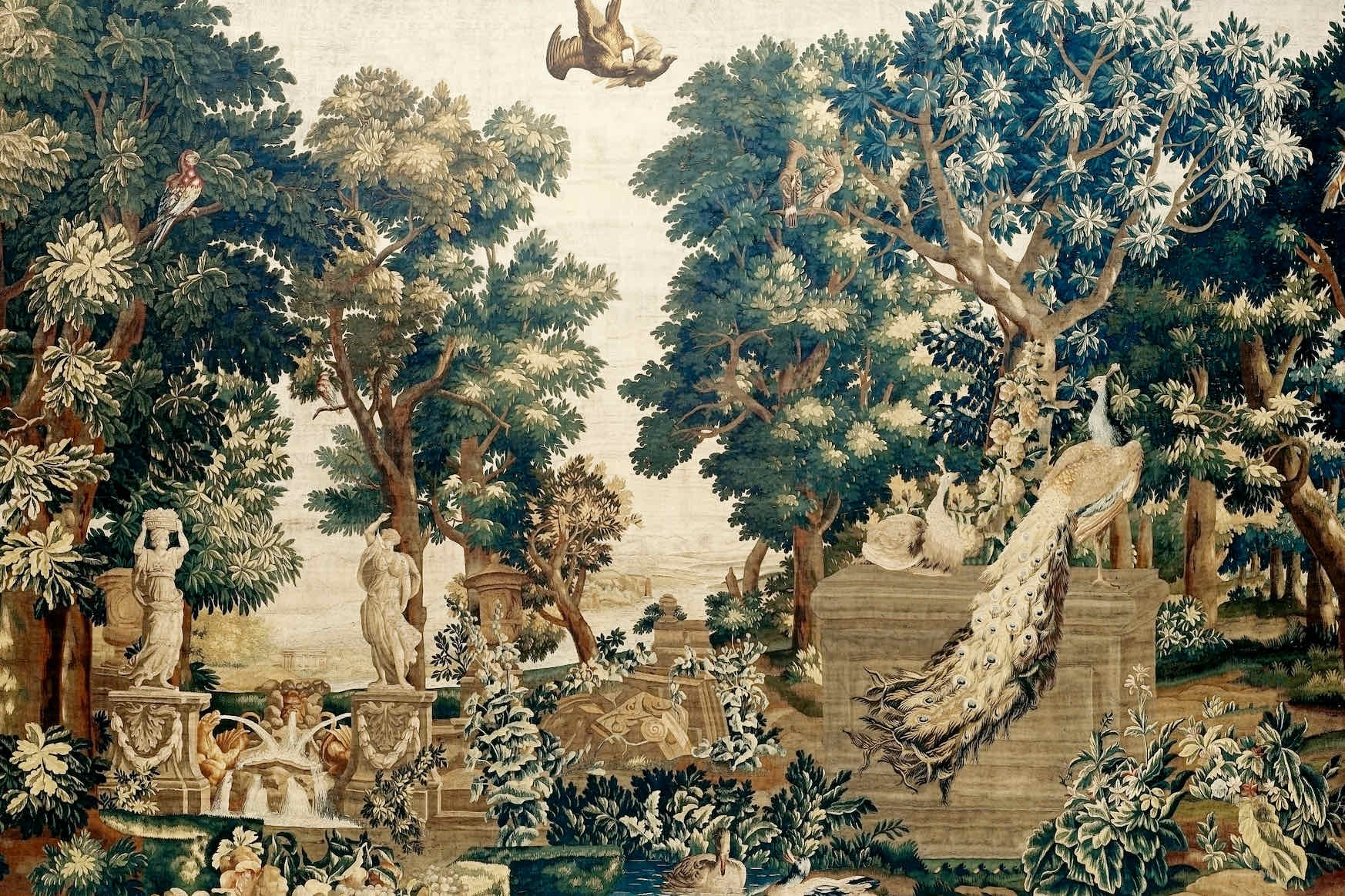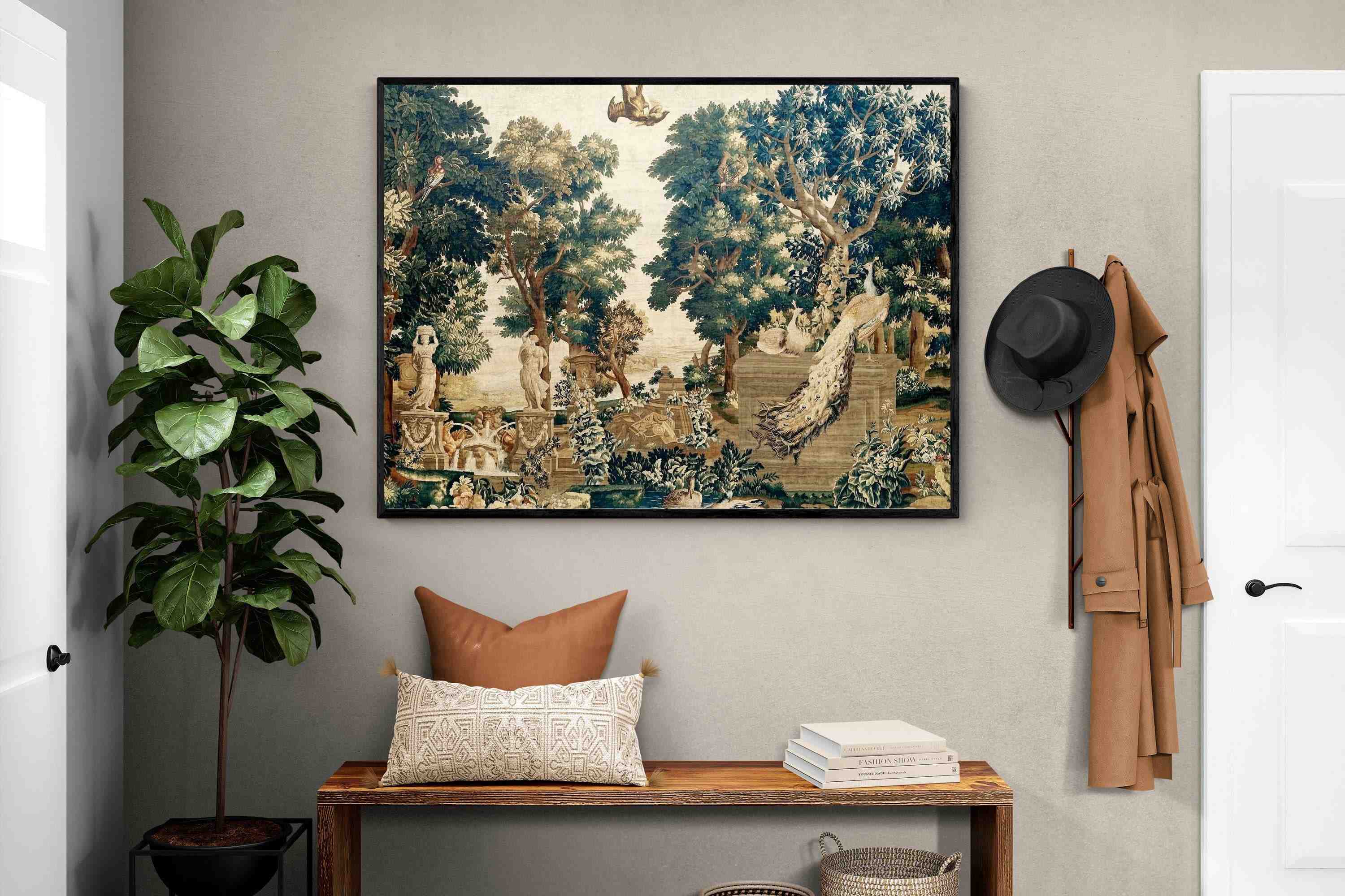 Vintage Peacock Scene Wall Art & Wallpaper