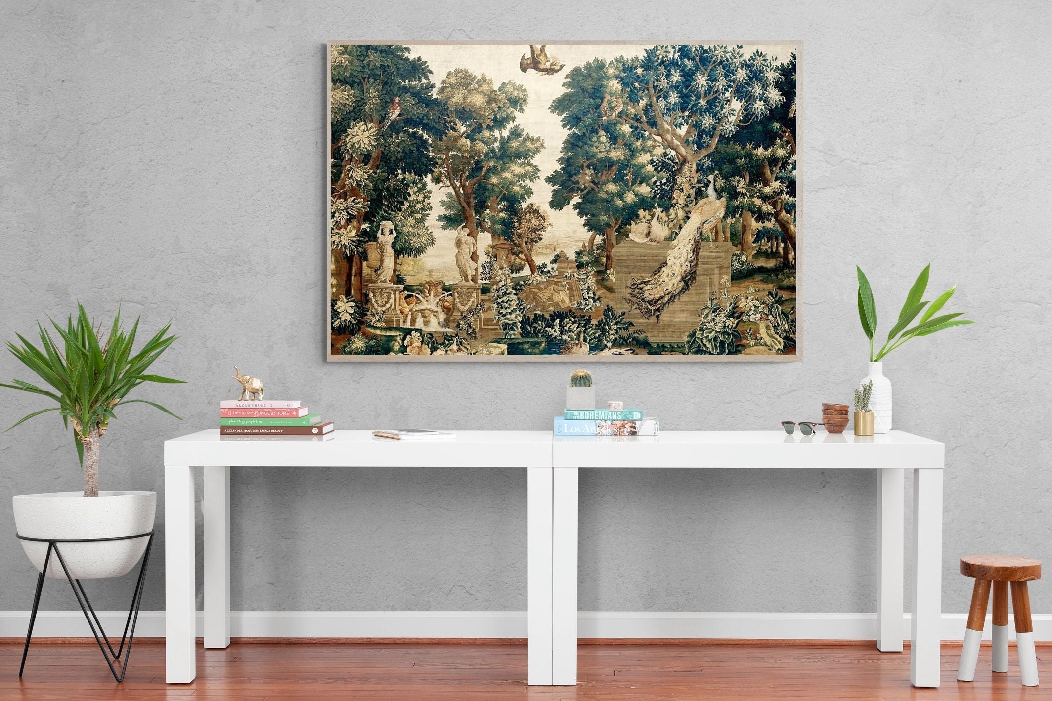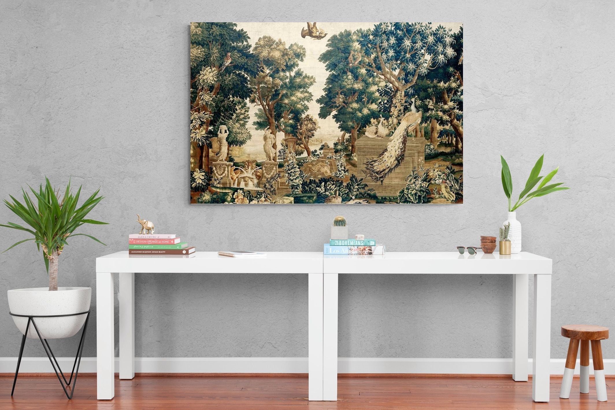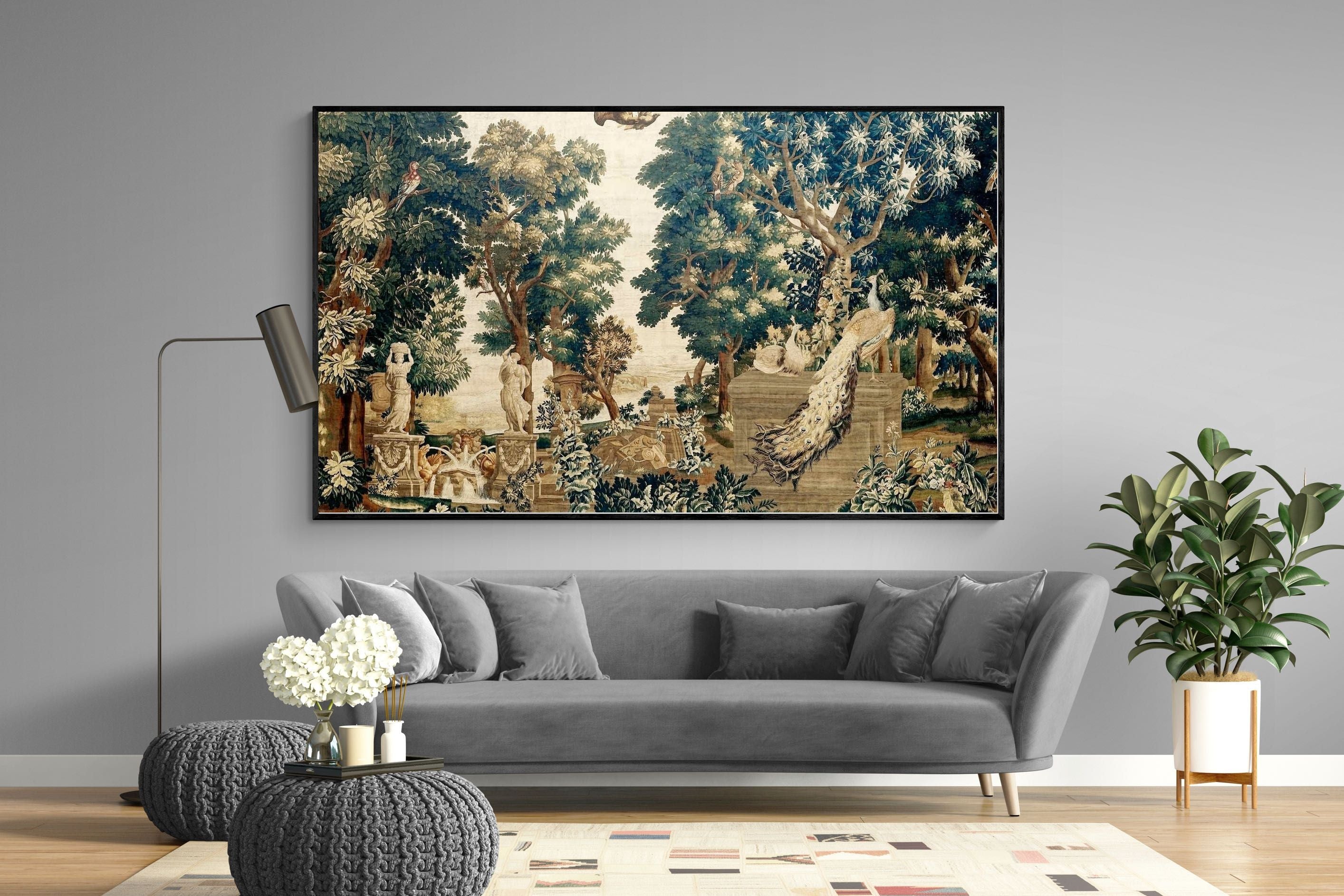 Vintage Peacock Scene Wall Art & Wallpaper