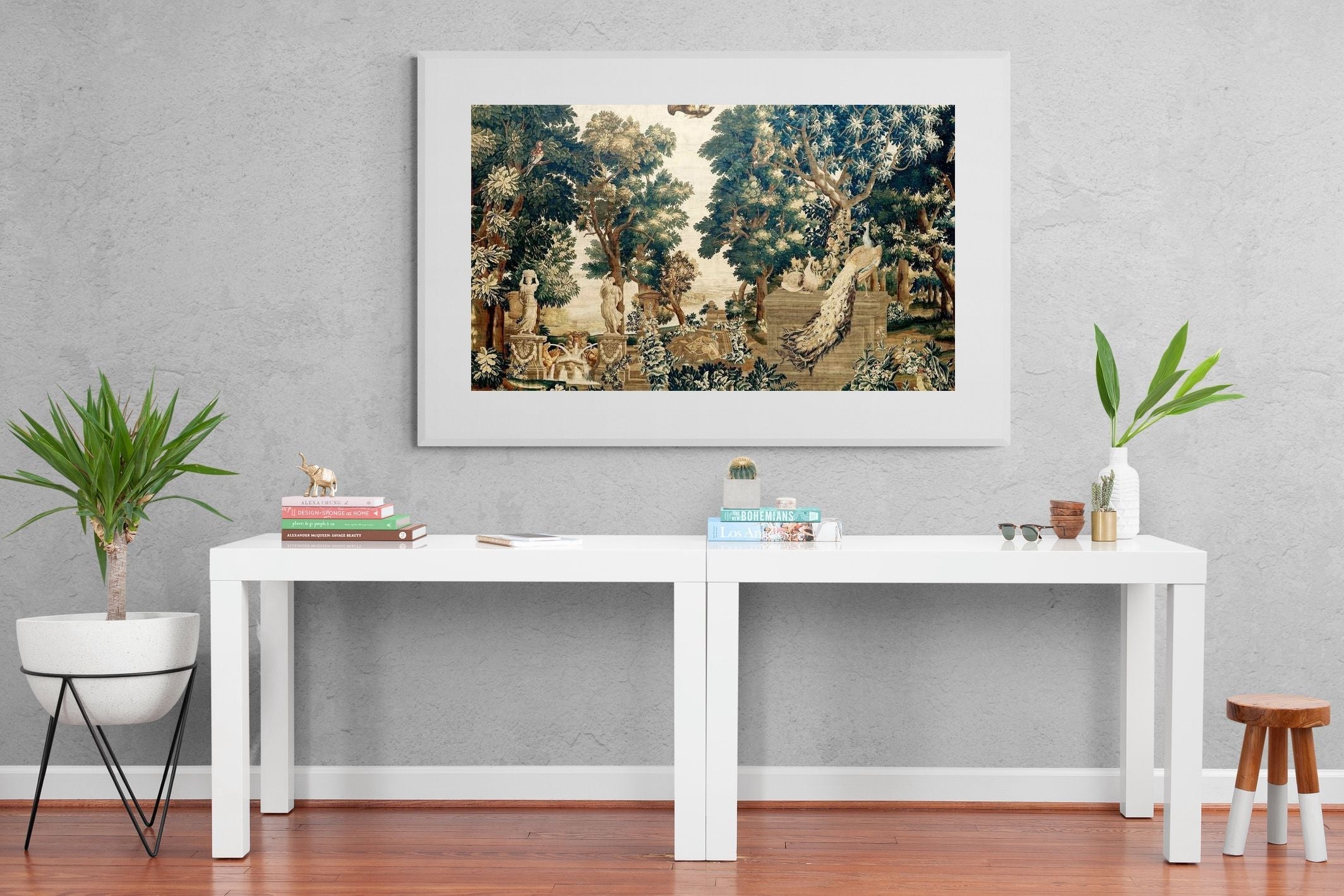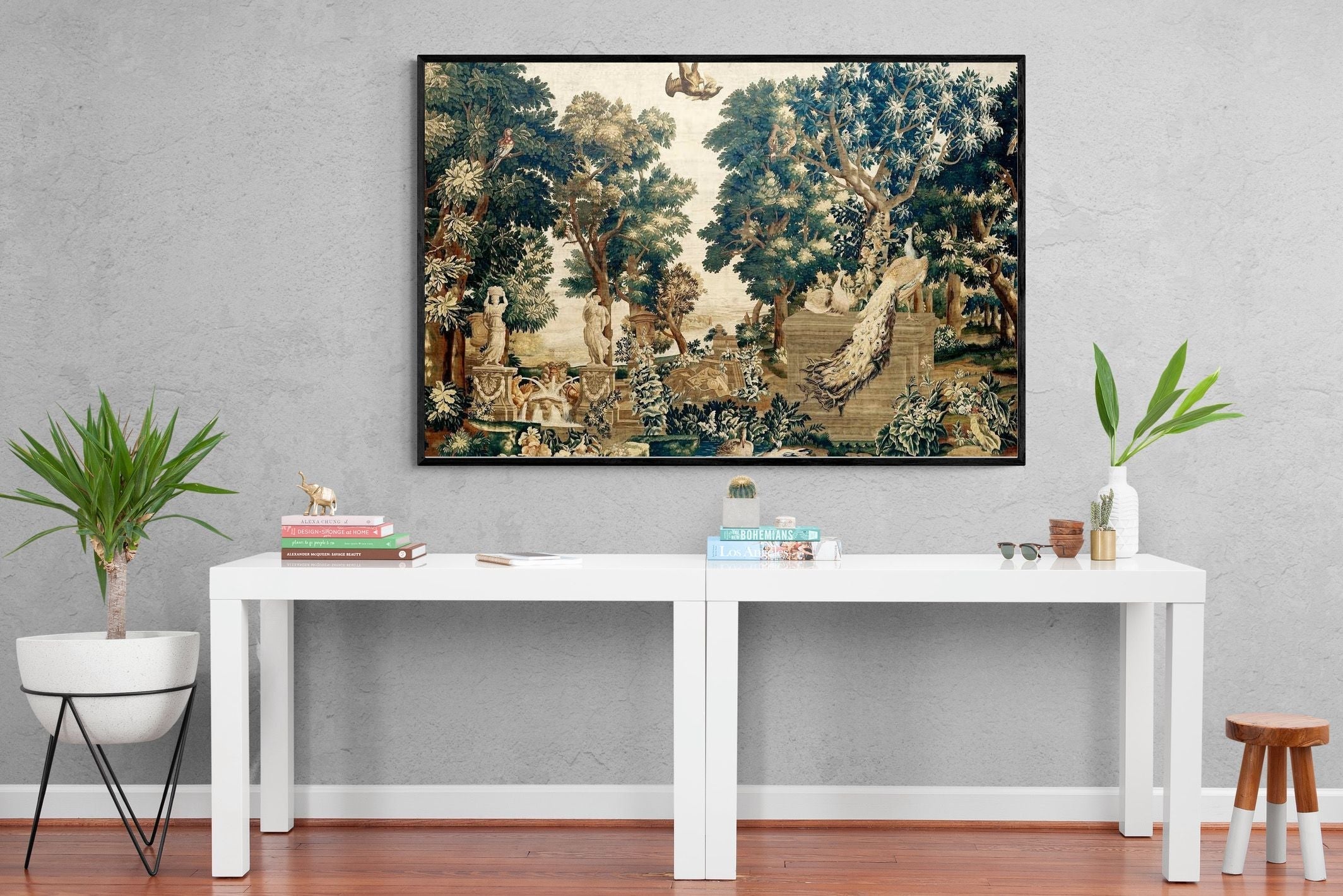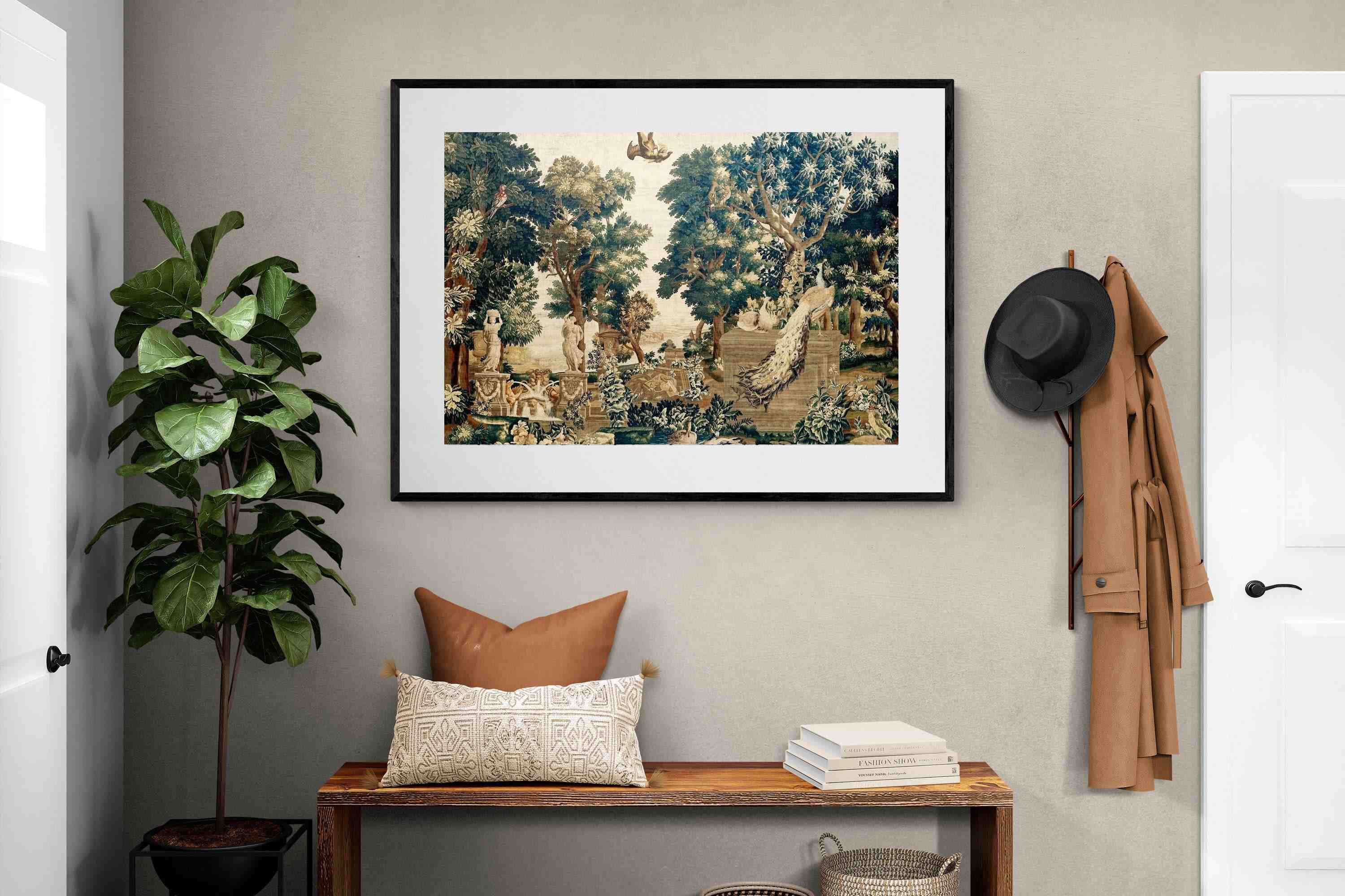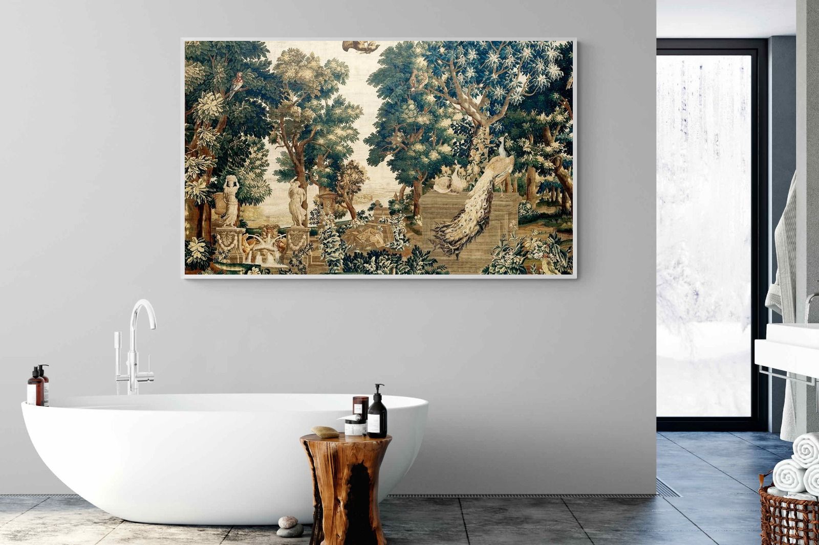 Vintage Peacock Scene Wall Art & Wallpaper