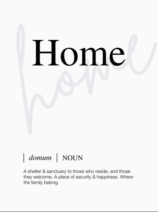 "Home | Domum | A shelter & sanctuary to those who reside, and those they welcome. A place of security & happiness. Where the family belong."