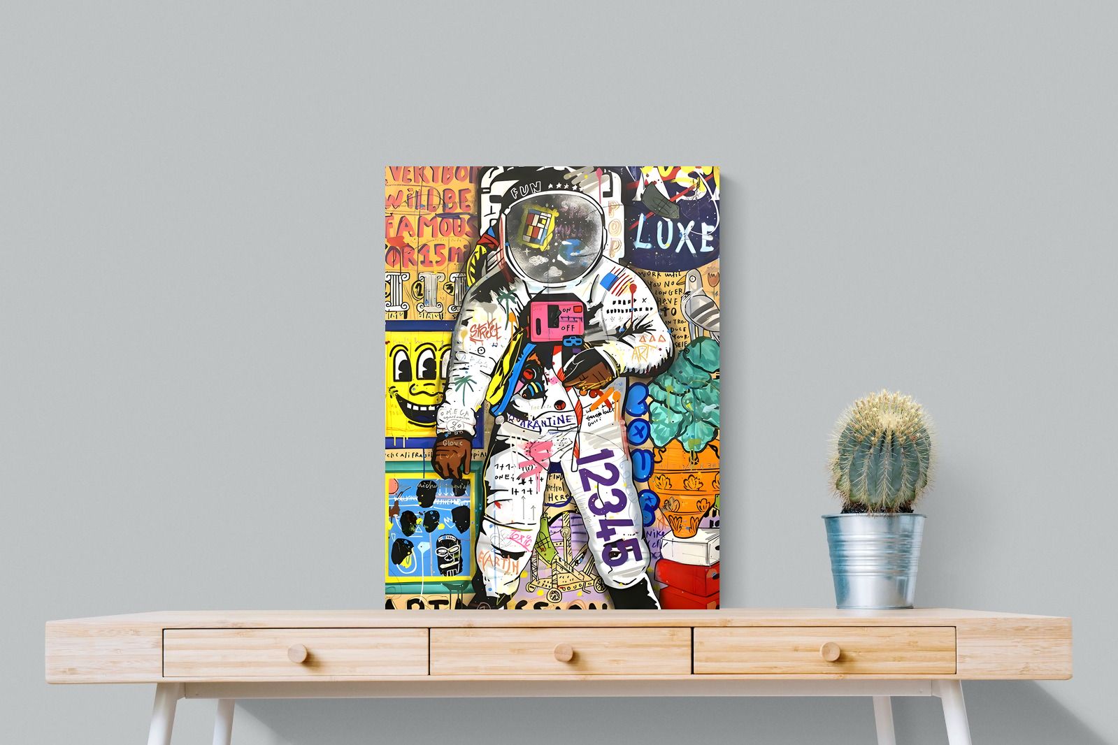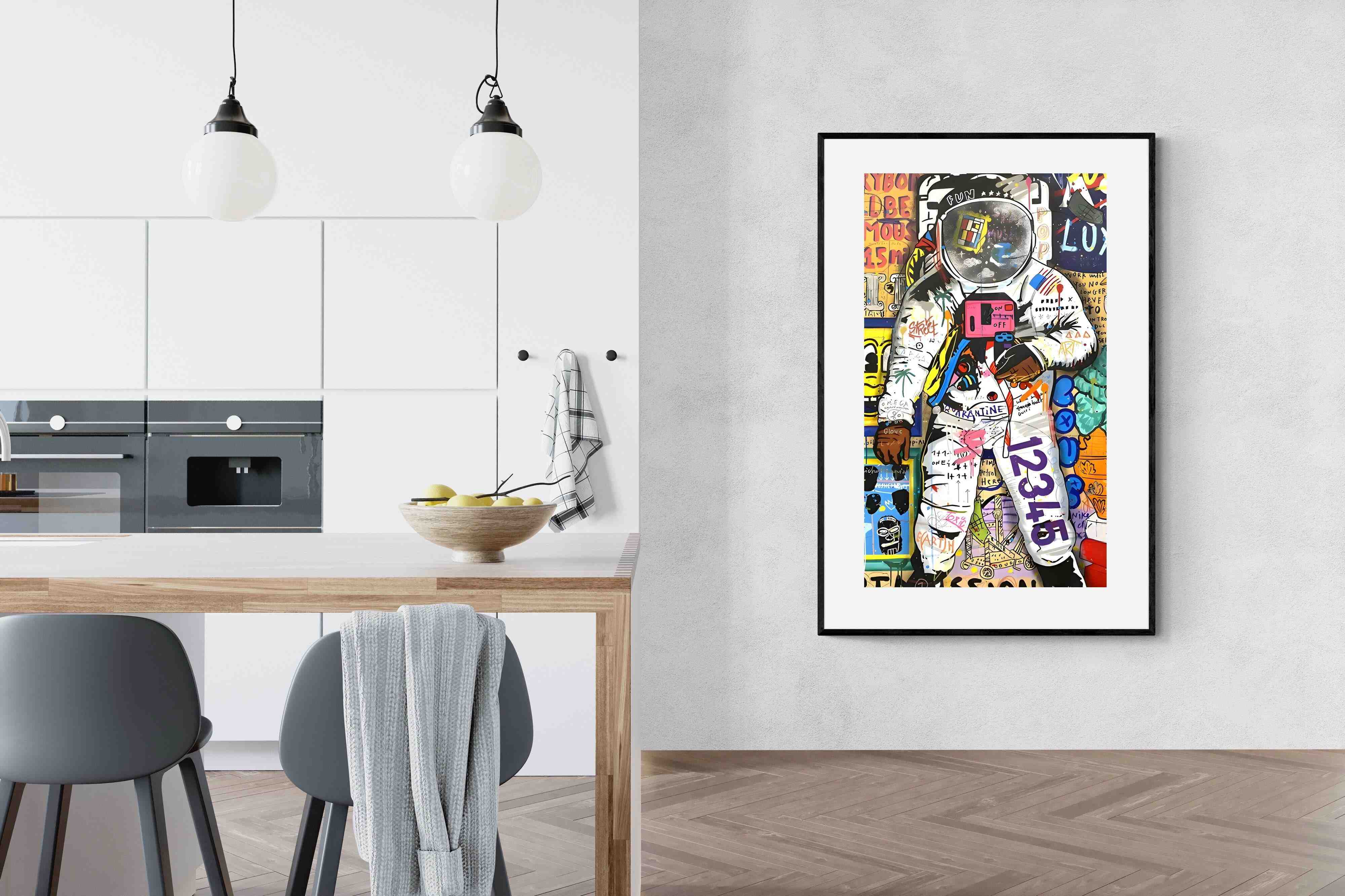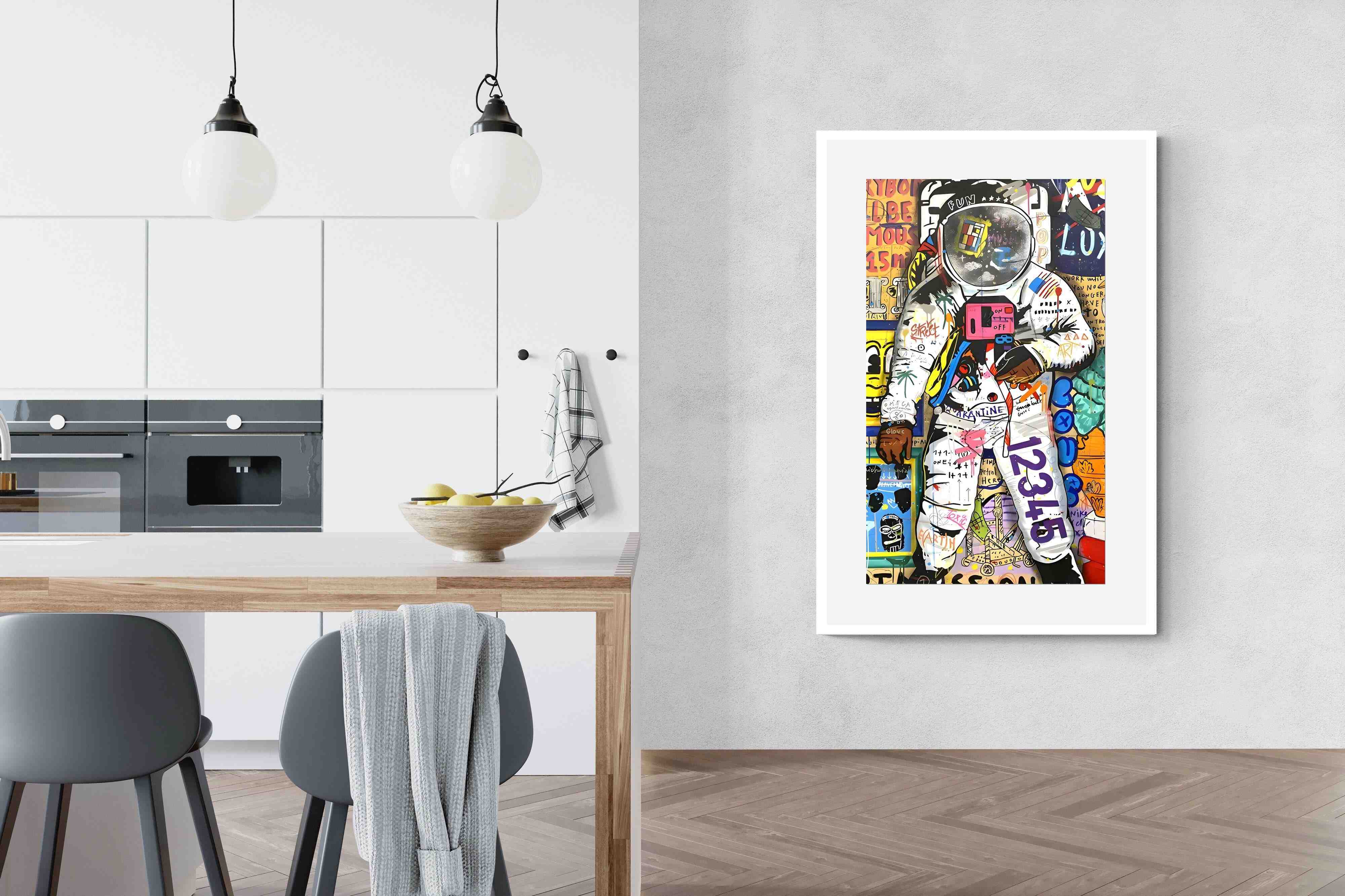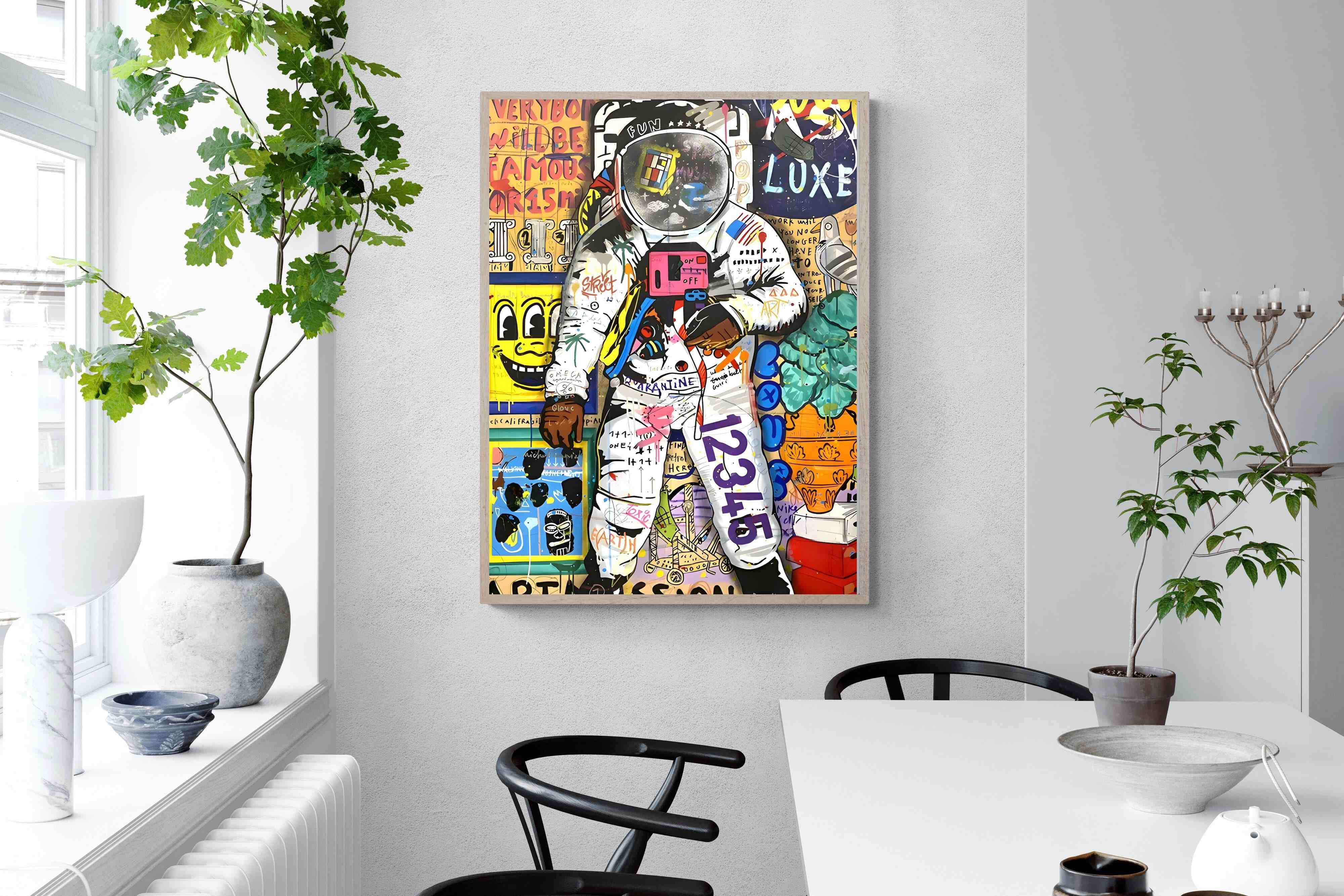 Dive into a riotous explosion of colour and creativity with the "Graffiti Astronaut" masterpiece. This vibrant artwork is a mesmerising fusion of pop culture references, vivid hues, and street art panache, inviting viewers into a whimsical world of artistic brilliance and playful nostalgia.
