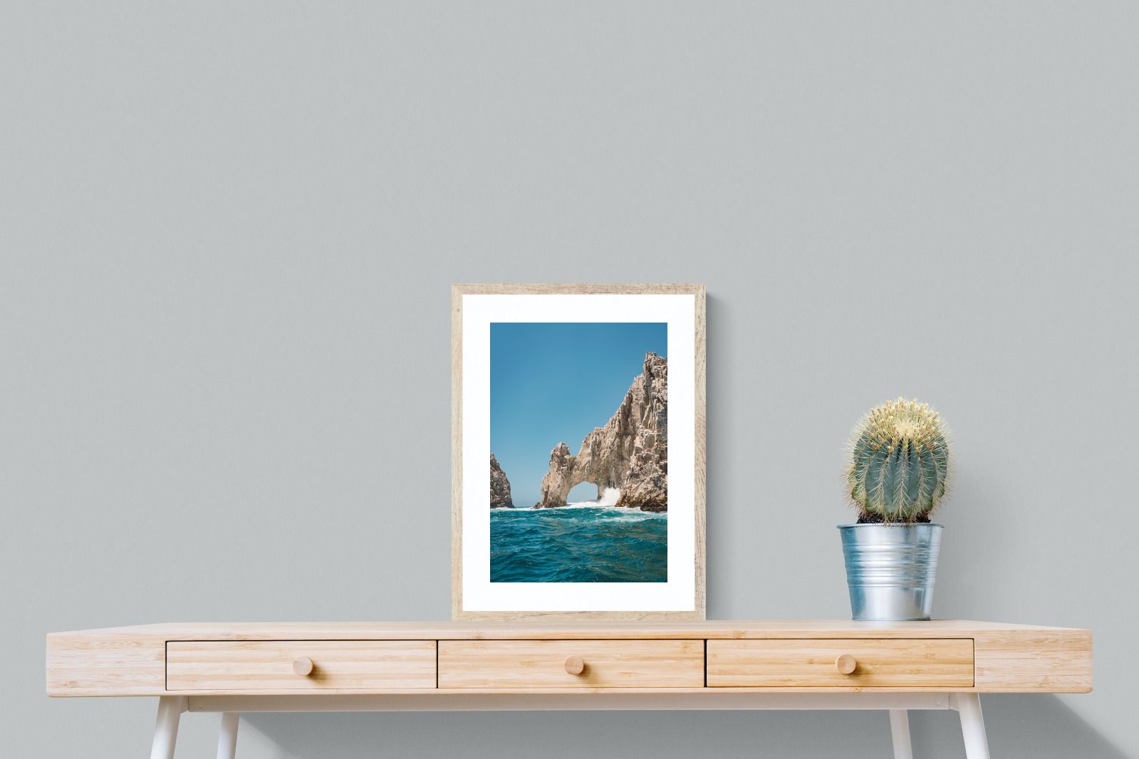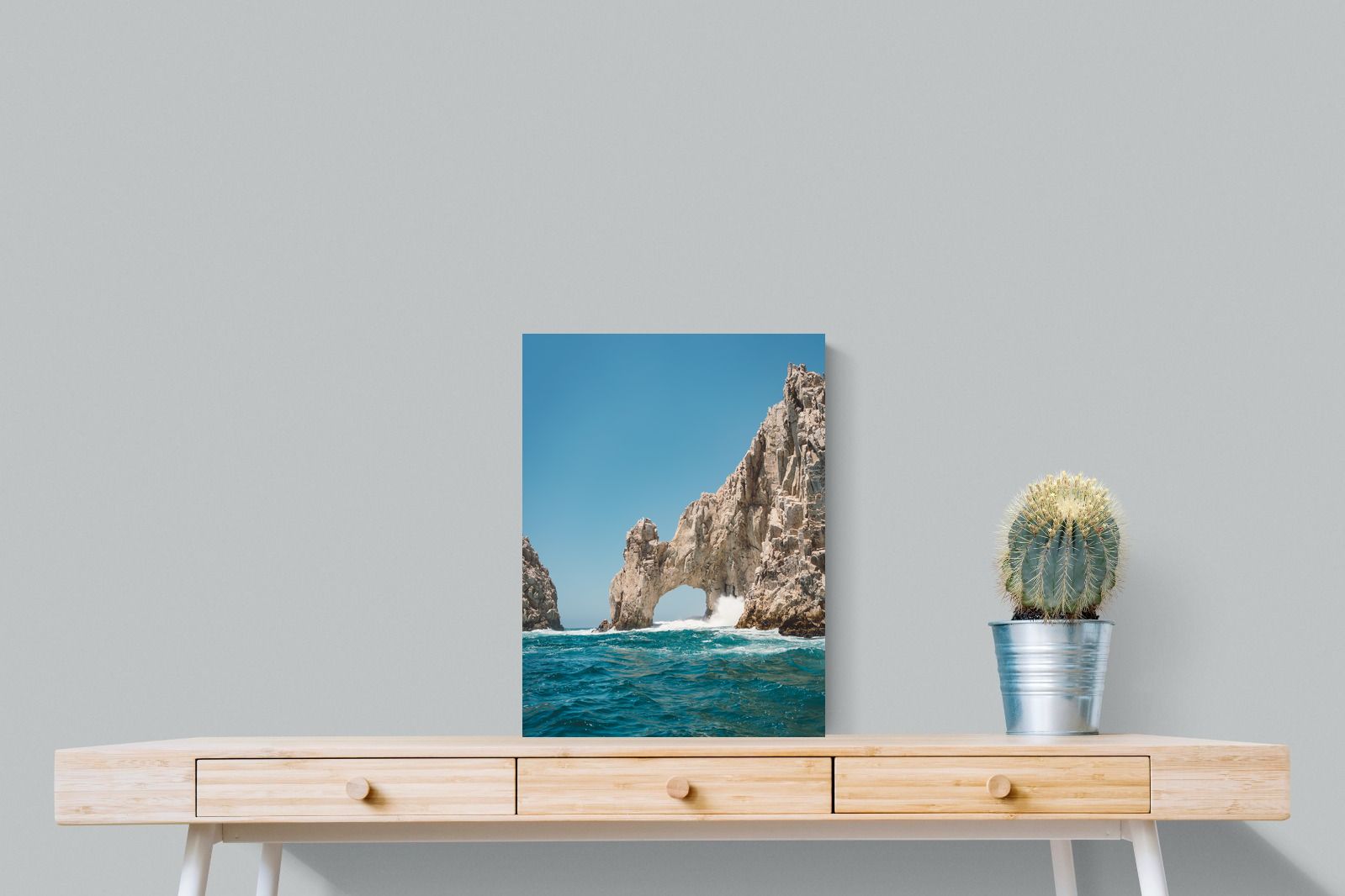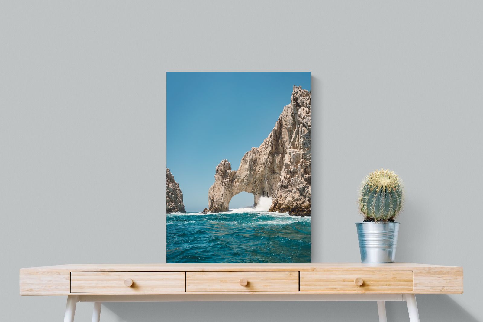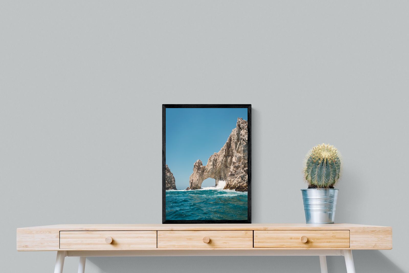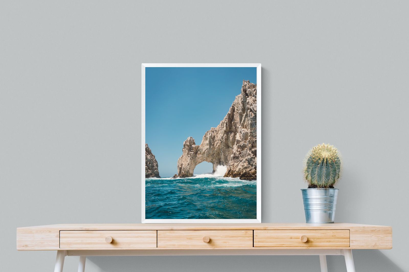 "Marine Gateway" captures the majestic Arch of Cabo San Lucas, where the rock formation carved by the sea stands as nature's monument. The clear blue waters, lively waves, and stark rock face against a clear sky offer a window to the natural world's enduring beauty. It would make an excellent wall art choice for a home, bringing a sense of adventure, tranquility, and the timeless beauty of the sea into any living space.