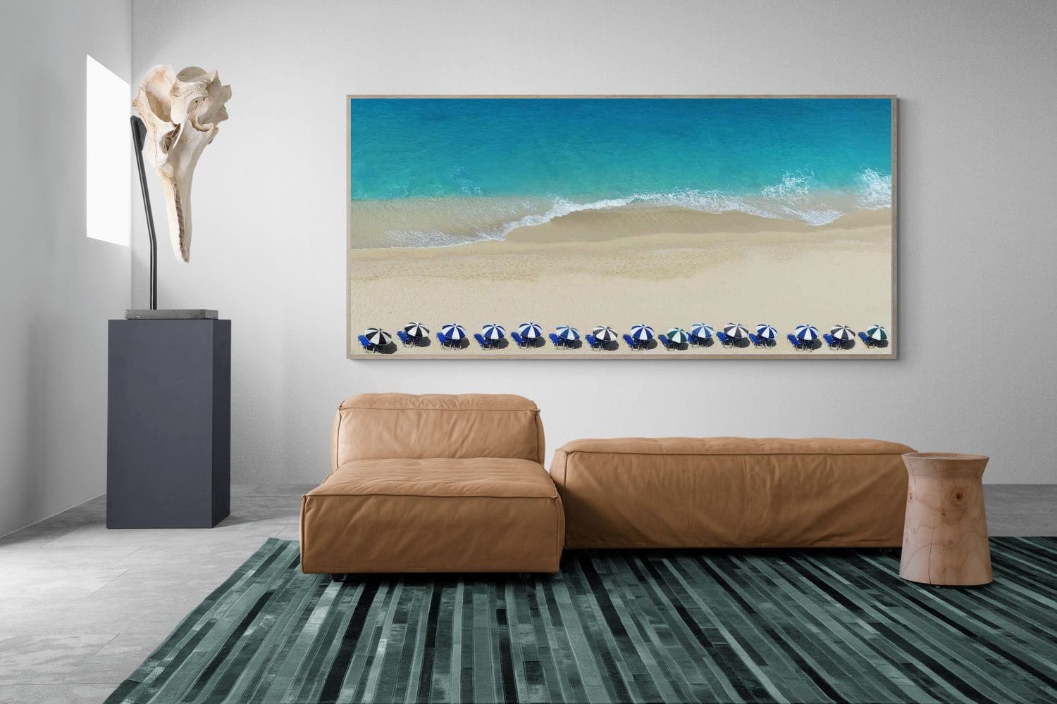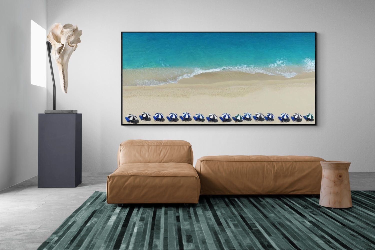 A line of parasols on a Greek Beach, shot by drone by Ina Dabi
