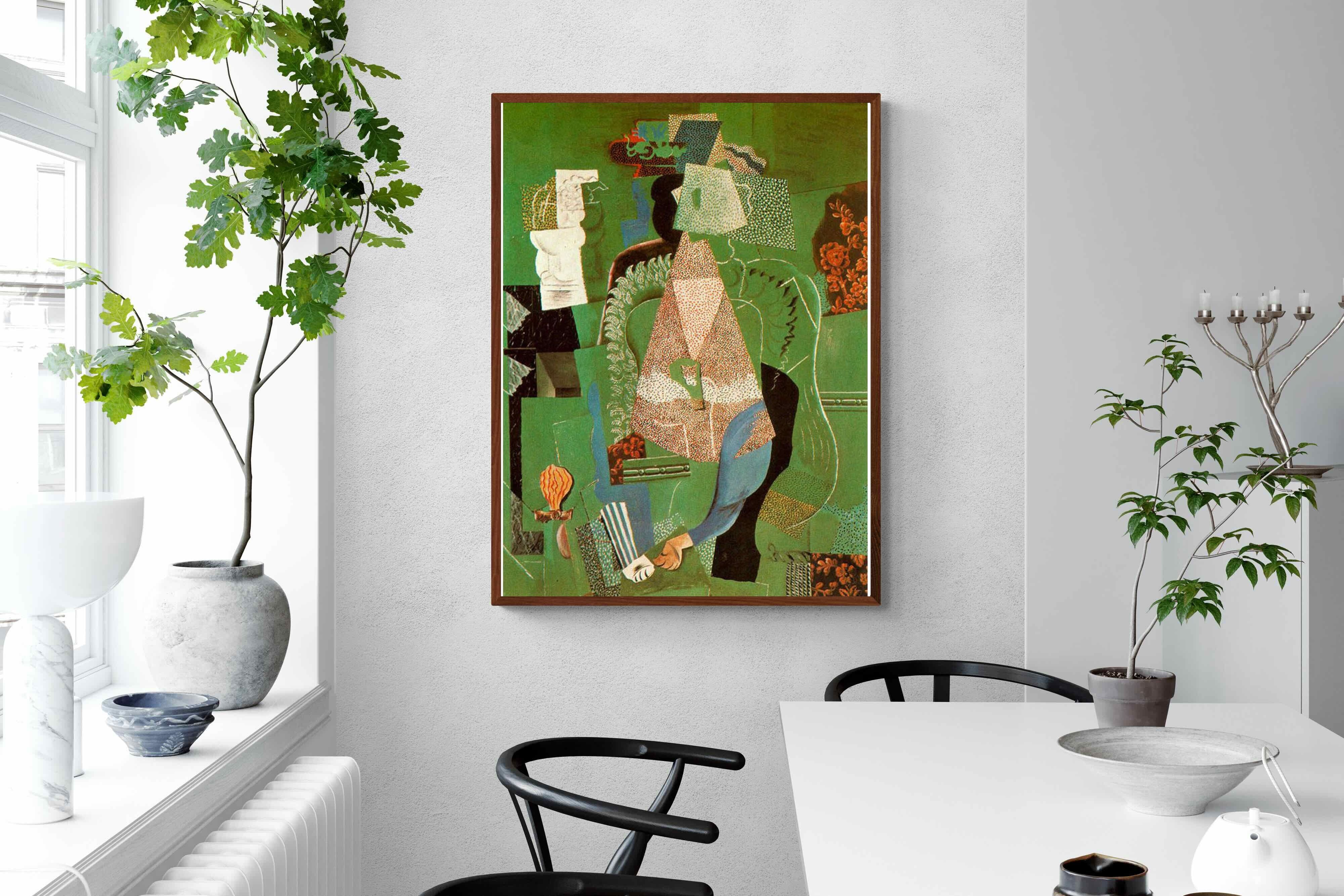 This captivating cubism 1914 work by Pablo Picasso showcases the distinctive language of Cubism, layering fragmented forms and textured patterns into a richly detailed composition. Dominated by earthy greens and subtle contrasts, the piece invites deeper observation with every glance. Ideal for contemporary or eclectic interiors, it brings artistic heritage and intellectual depth to living rooms, offices, or curated gallery-style spaces.