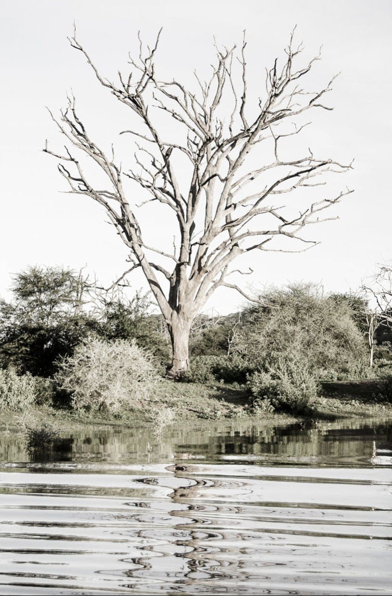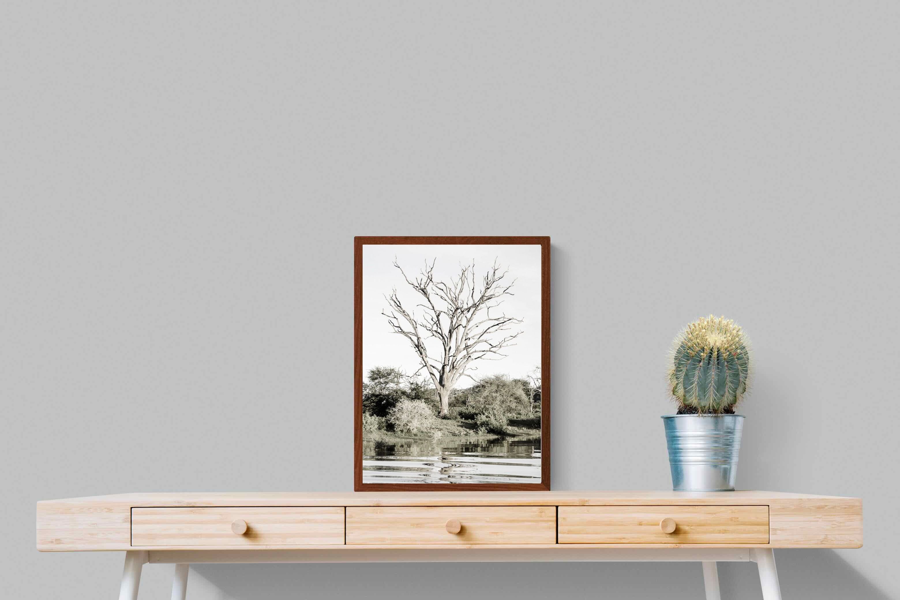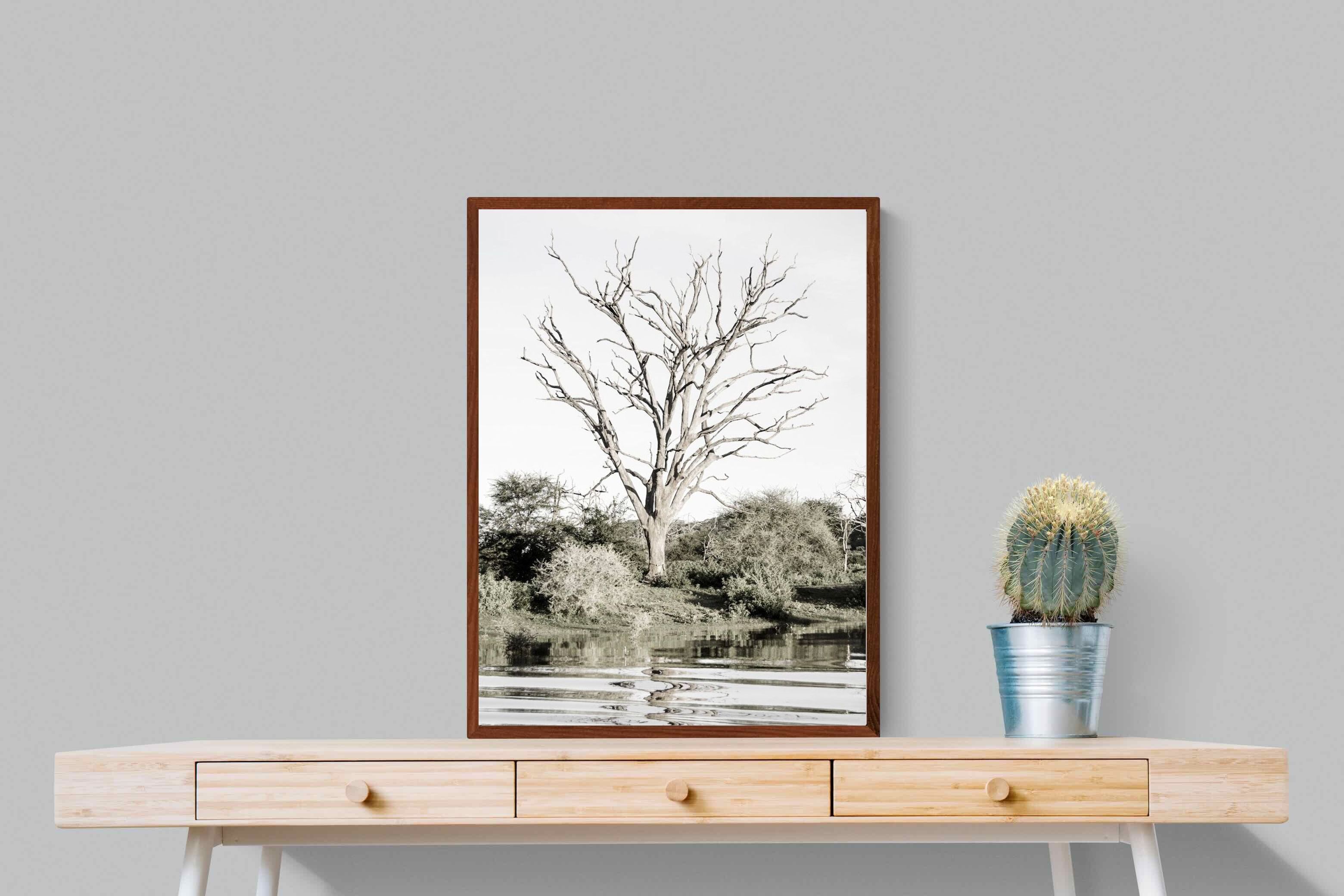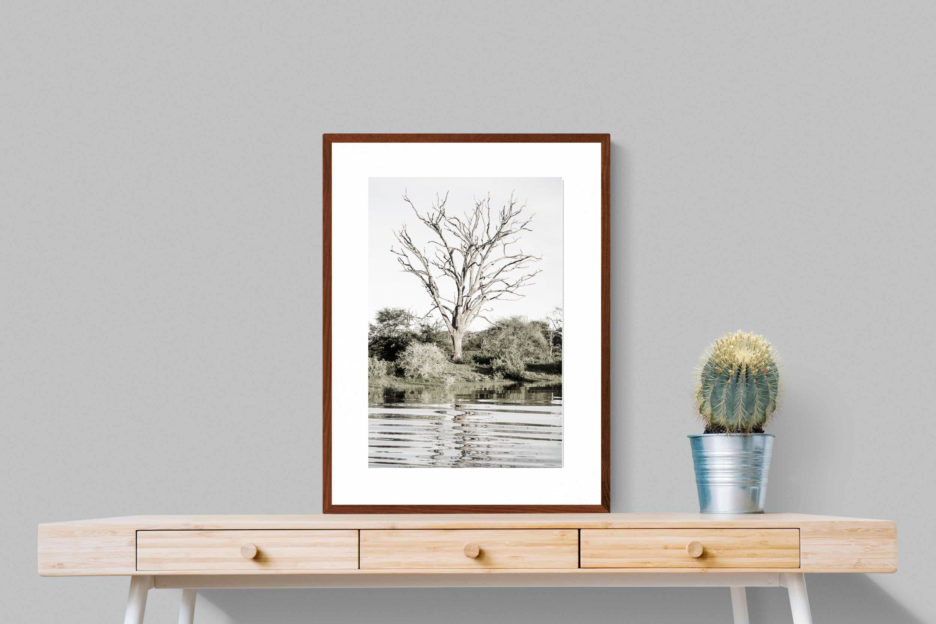 This captivating photograph, Reflective Ripples, beautifully showcases a stark, leafless tree mirrored in tranquil water. The smooth ripples contrast with the tree's intricate branches, creating a harmonious balance of movement and stillness. With its muted tones and minimalist composition, this artwork evokes a sense of peace, reflection, and natural beauty. Perfect for contemporary homes, it serves as a striking centrepiece, inviting calm and visual depth into any space.