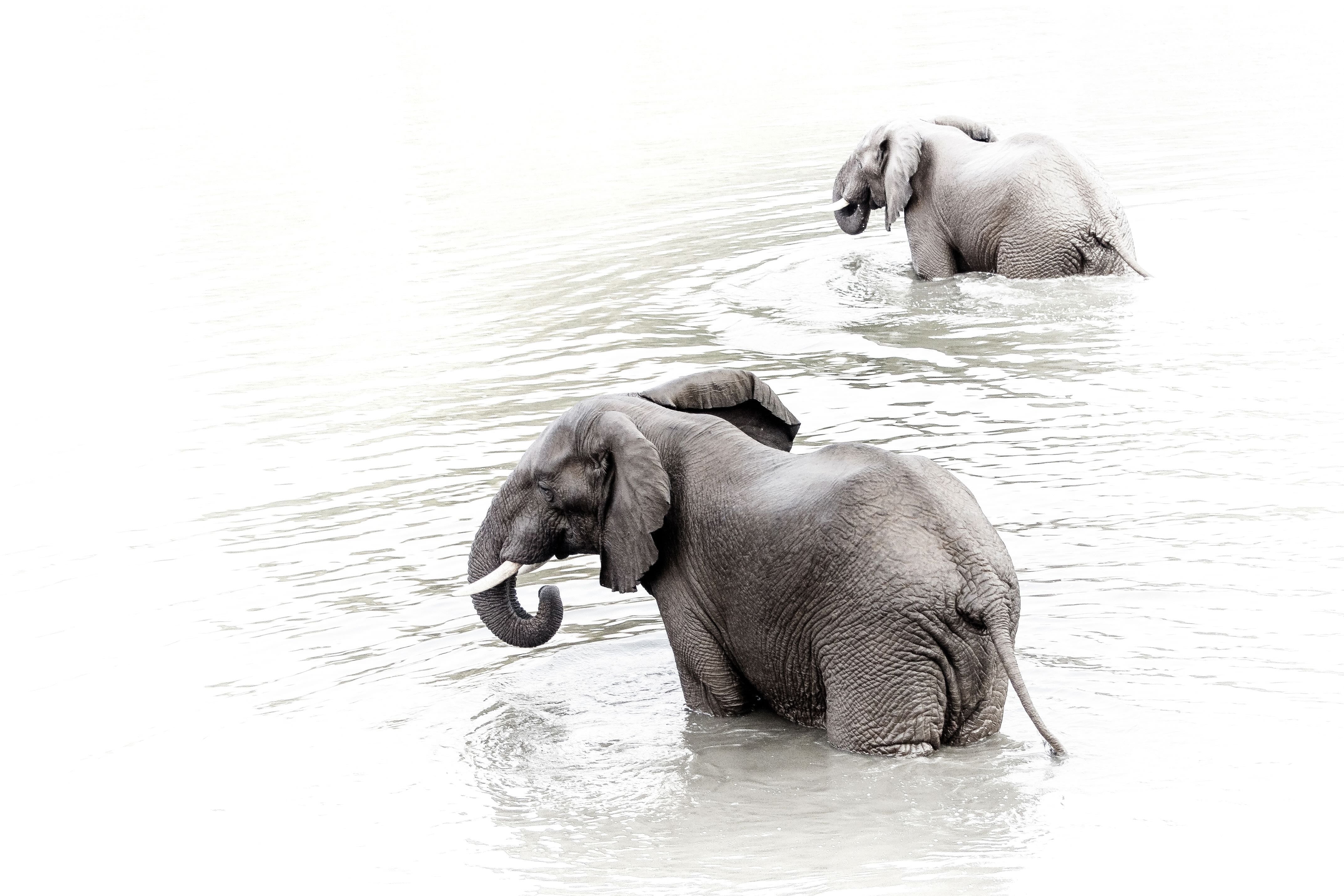 This serene photograph, Swimming Elephants, beautifully captures two elephants wading through calm waters, their graceful forms set against a minimalist, white-dominated backdrop. The simplicity of the composition accentuates the elephants’ gentle movement and natural beauty, evoking tranquillity and wonder. Perfect for contemporary spaces, this artwork brings a sense of harmony and the untamed spirit of nature into any room. Its subtle tones and elegant design make it a timeless centrepiece for modern interiors.
